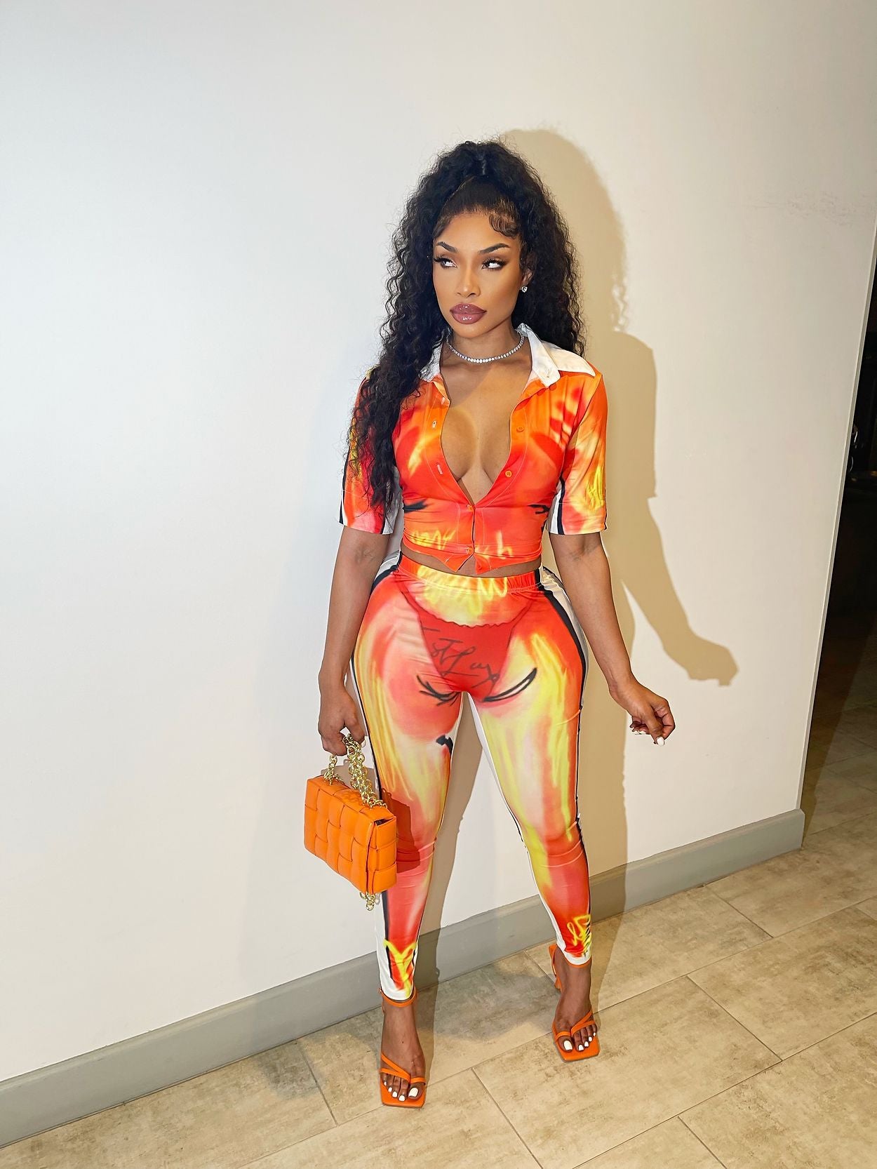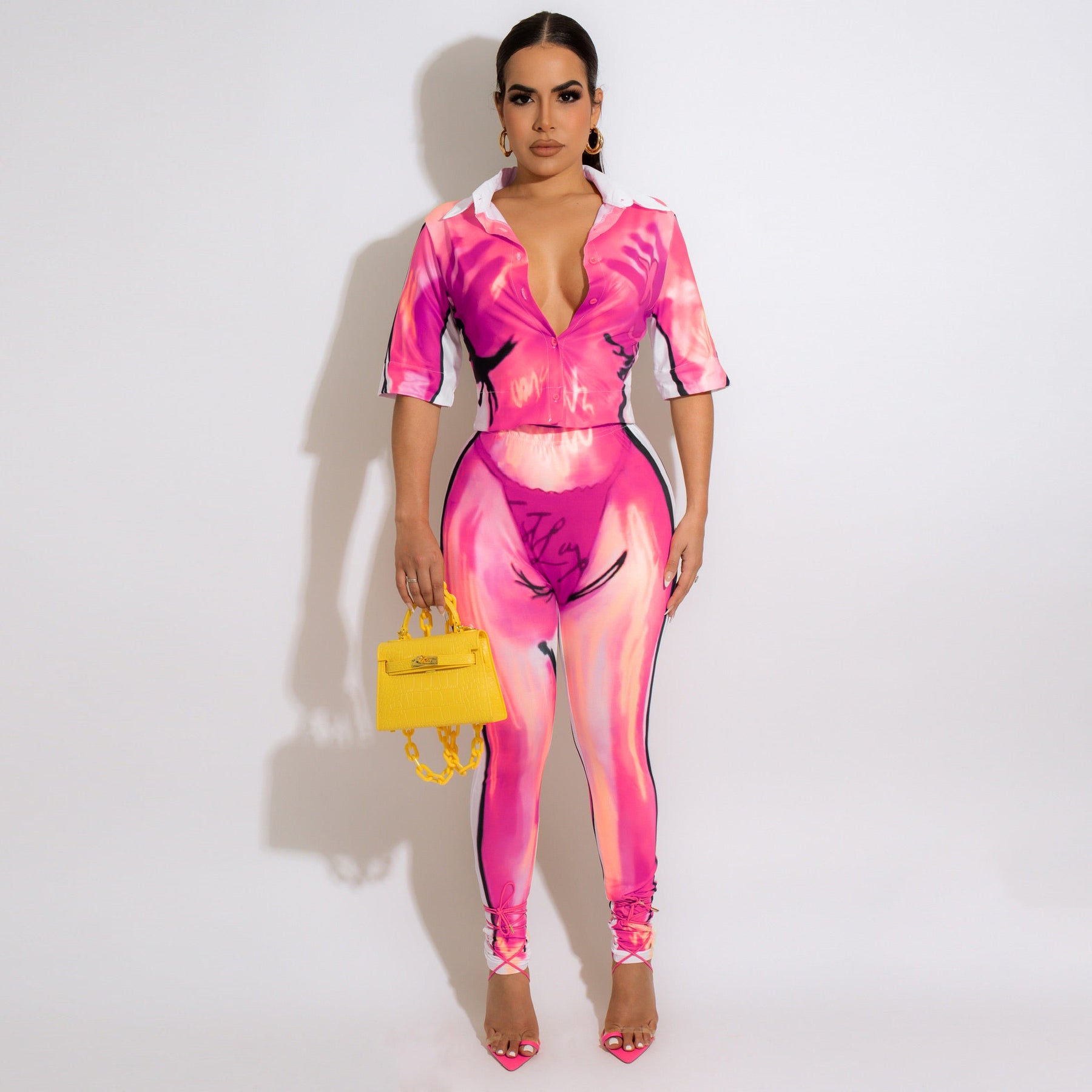 Middle-Sleeve Floral-Print Shirt Outfit (CL10354)