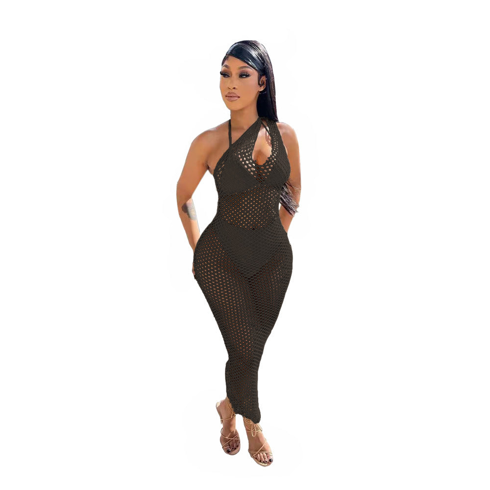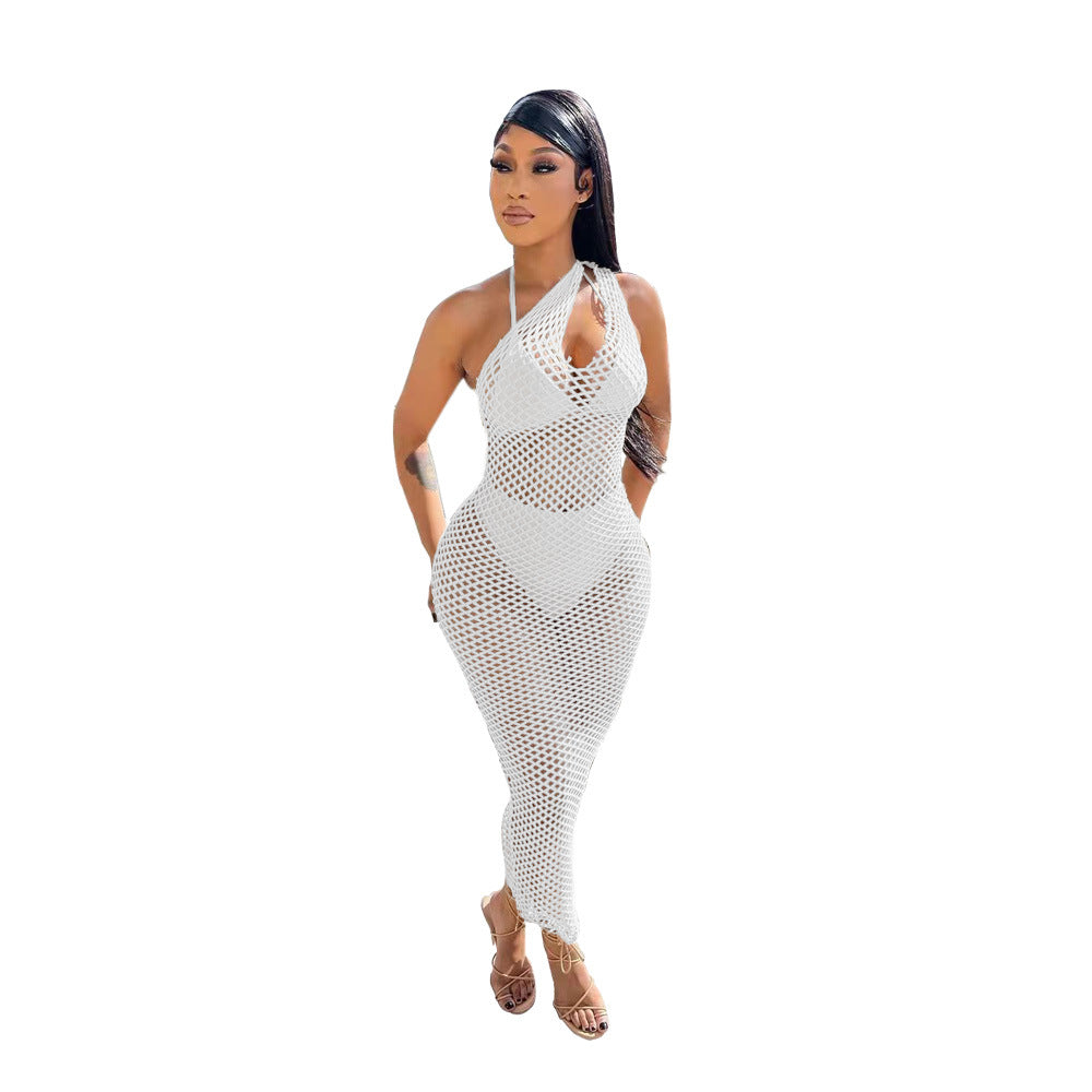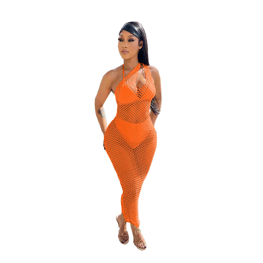 New Sexy Solid Color See-through Mesh Beach Dress (CL10246)