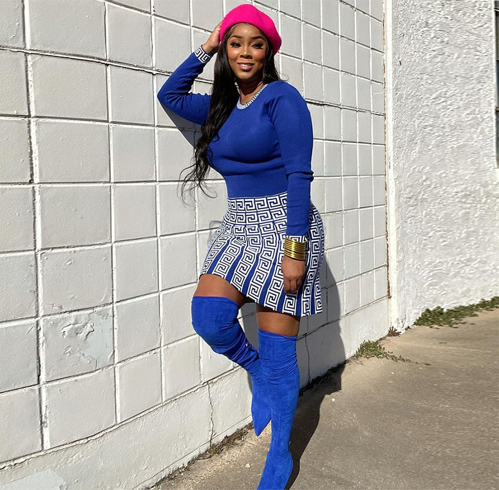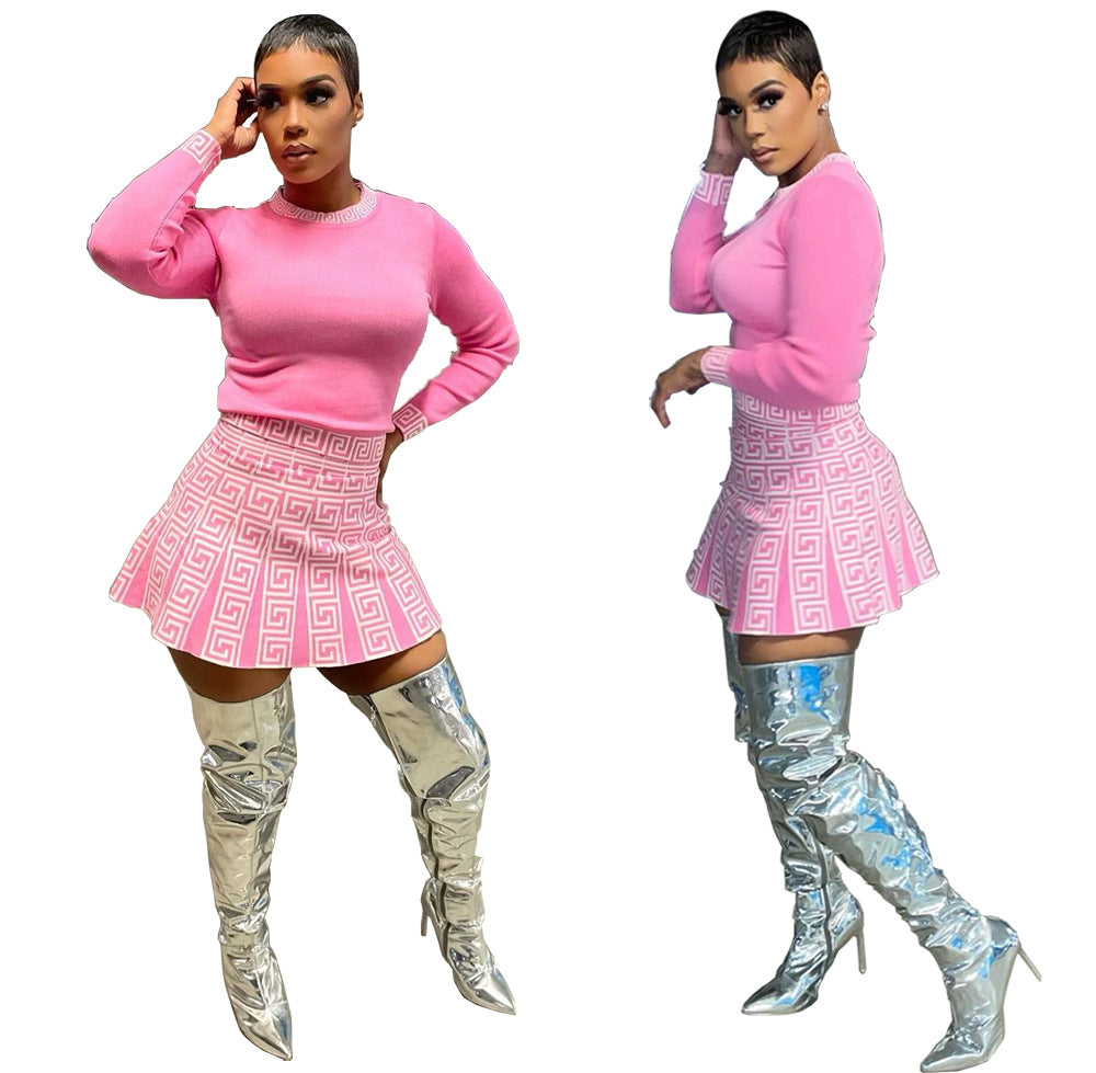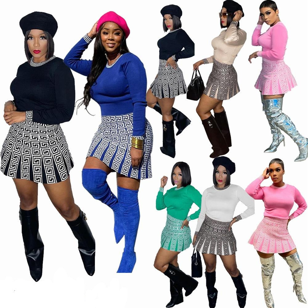 New Solid Color Top Skirt Printing Suit 2pc (CL9836)