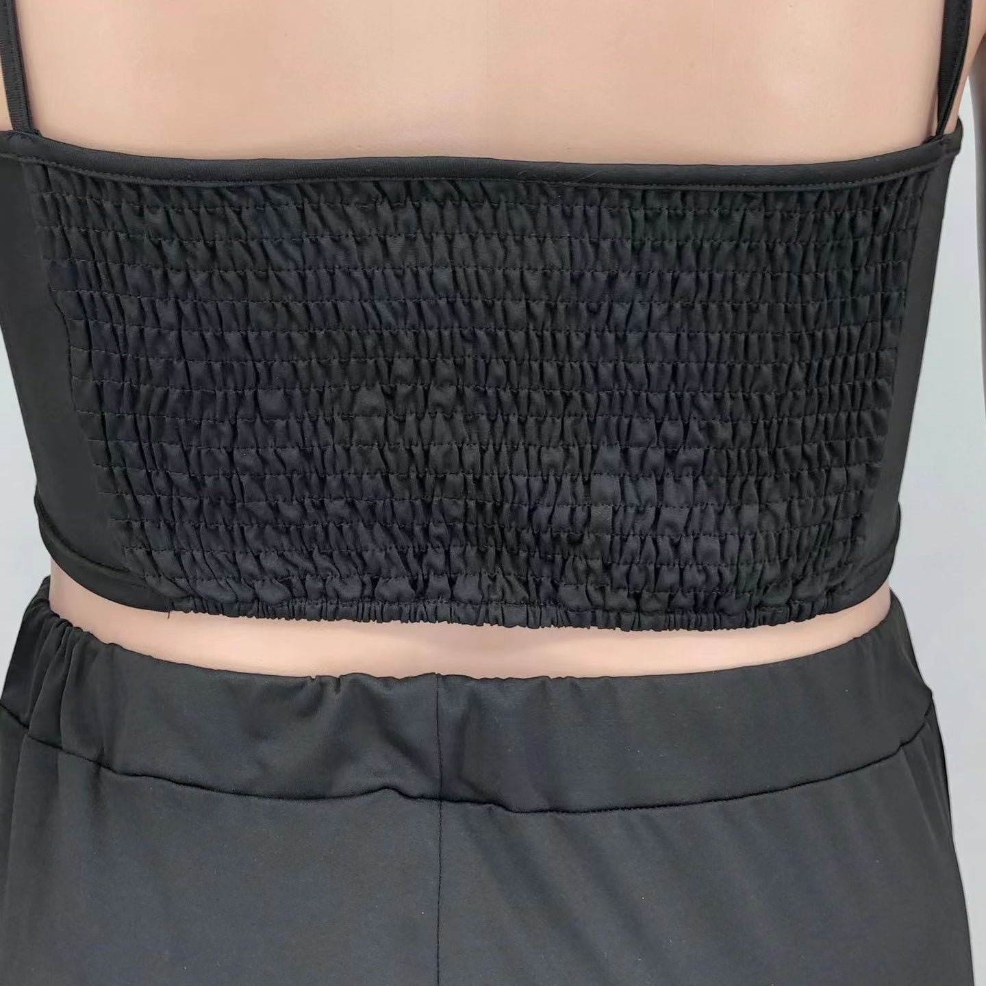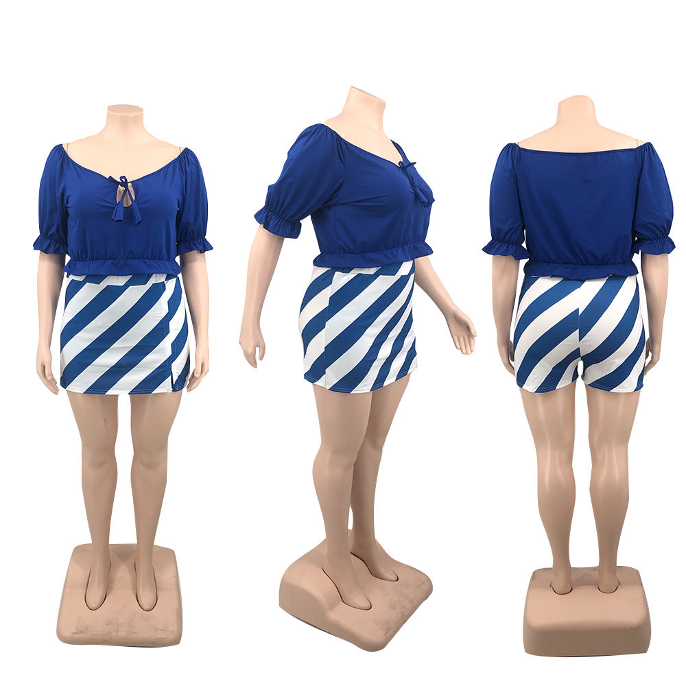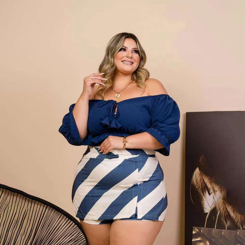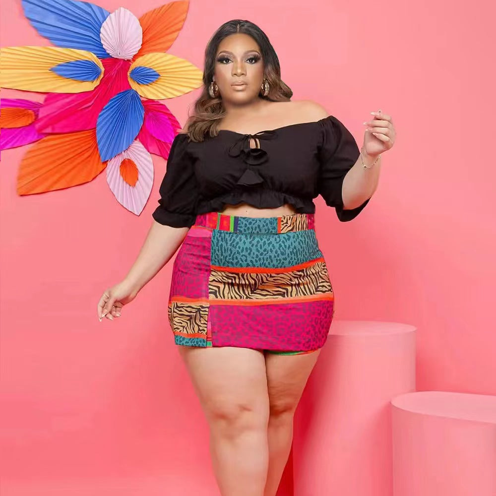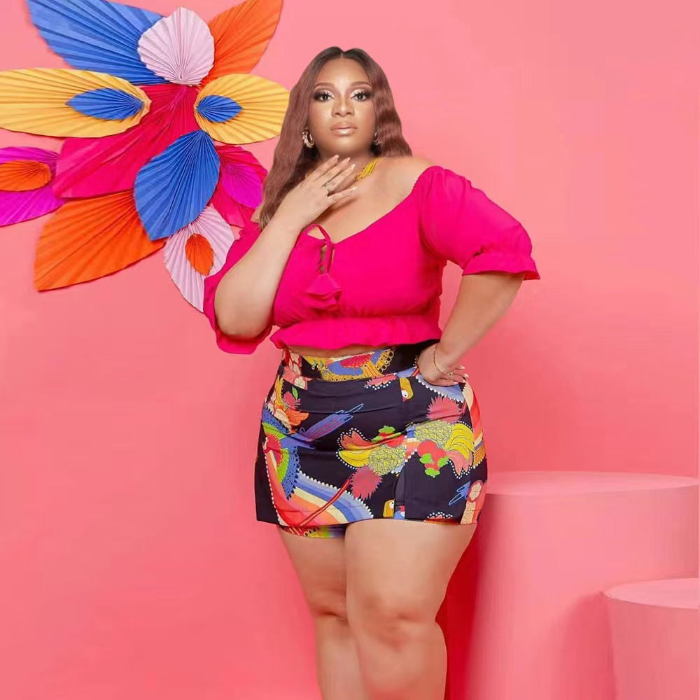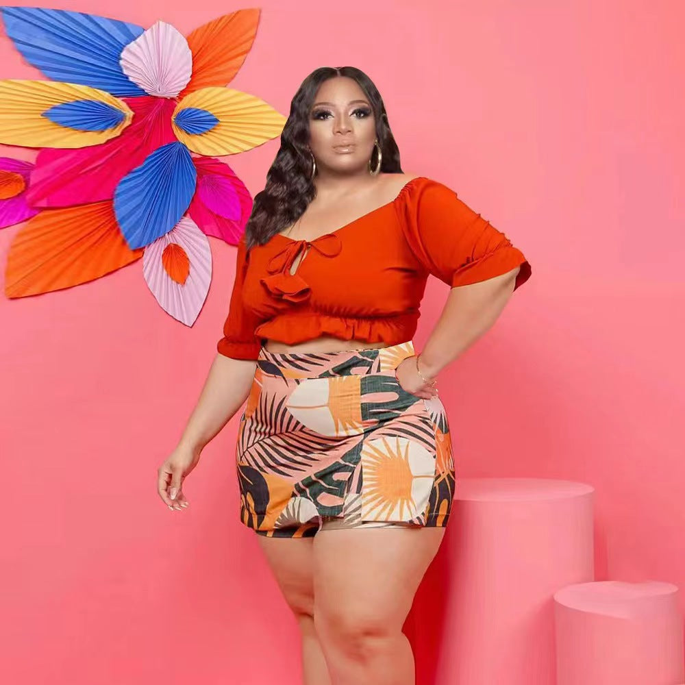 Off-Shoulder Wooden Ear Printed Solid Color Culottes Suit(CL11592)