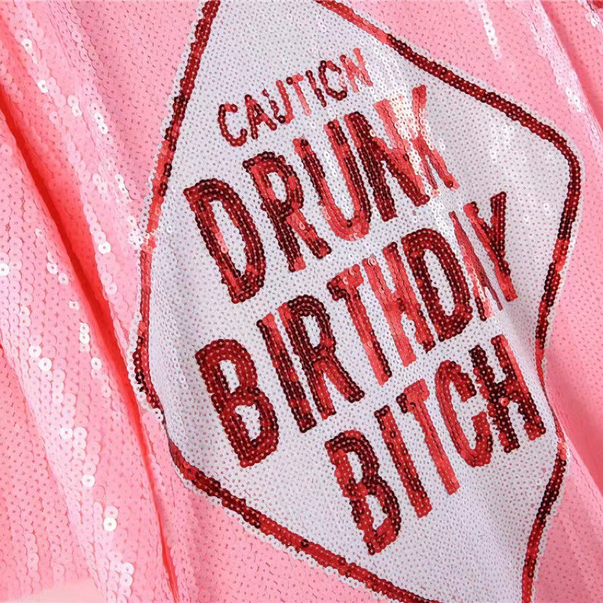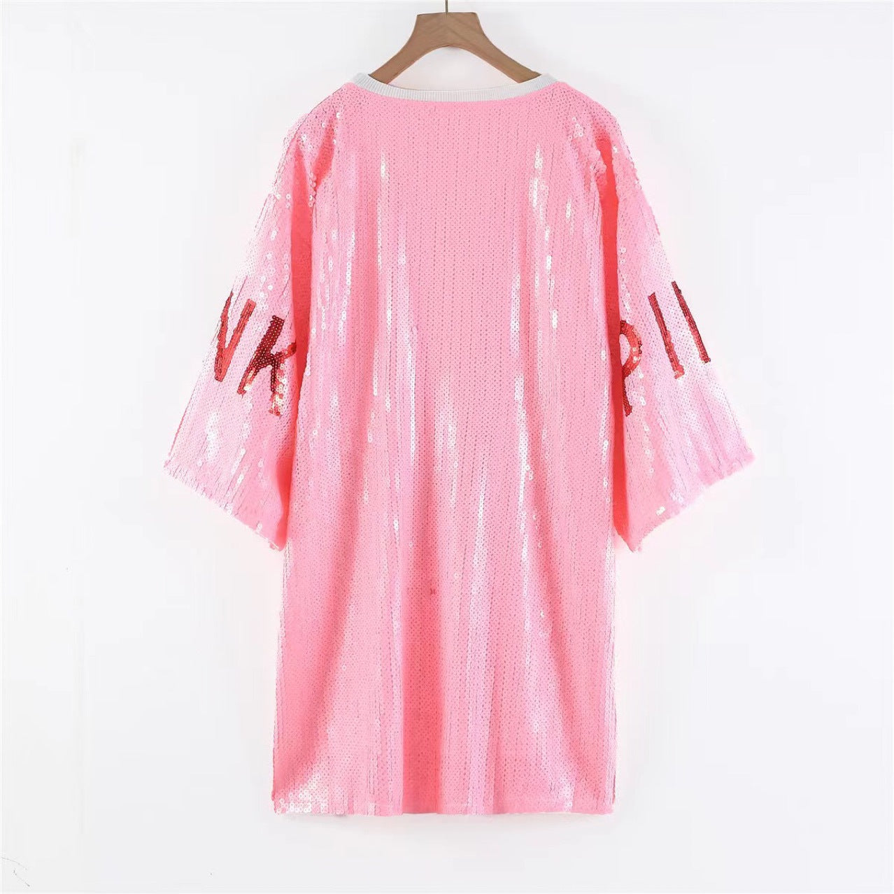 Pink Letters Sequined T-shirt Loose Large Size Short Sleeve (Cl10175)