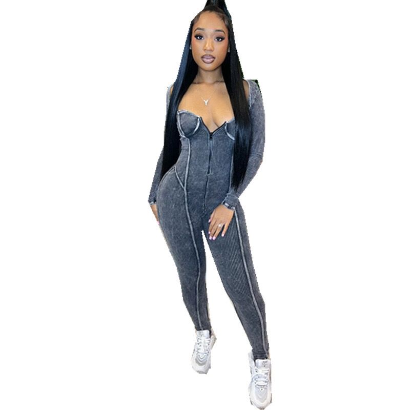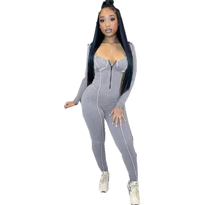 Pit elastic tube top one-piece jumpsuit(CL12083)