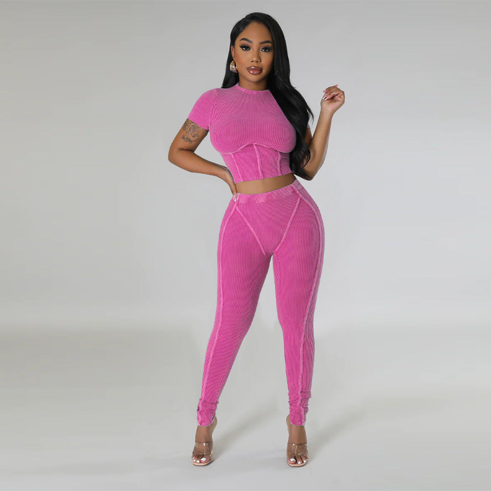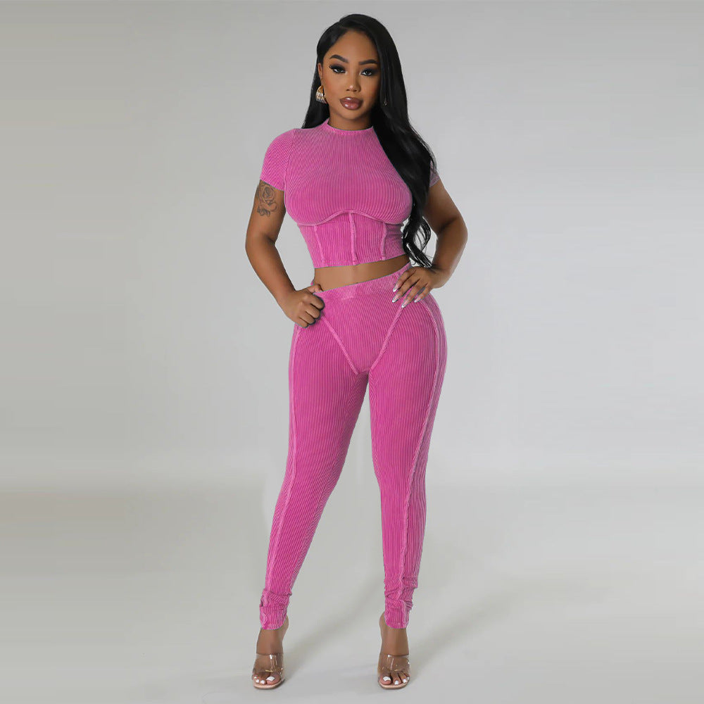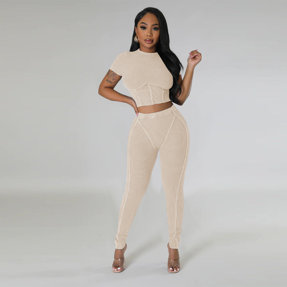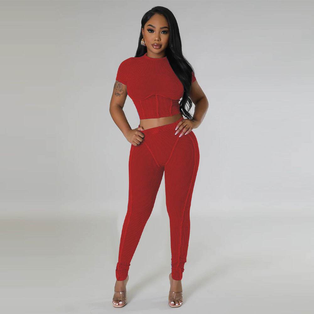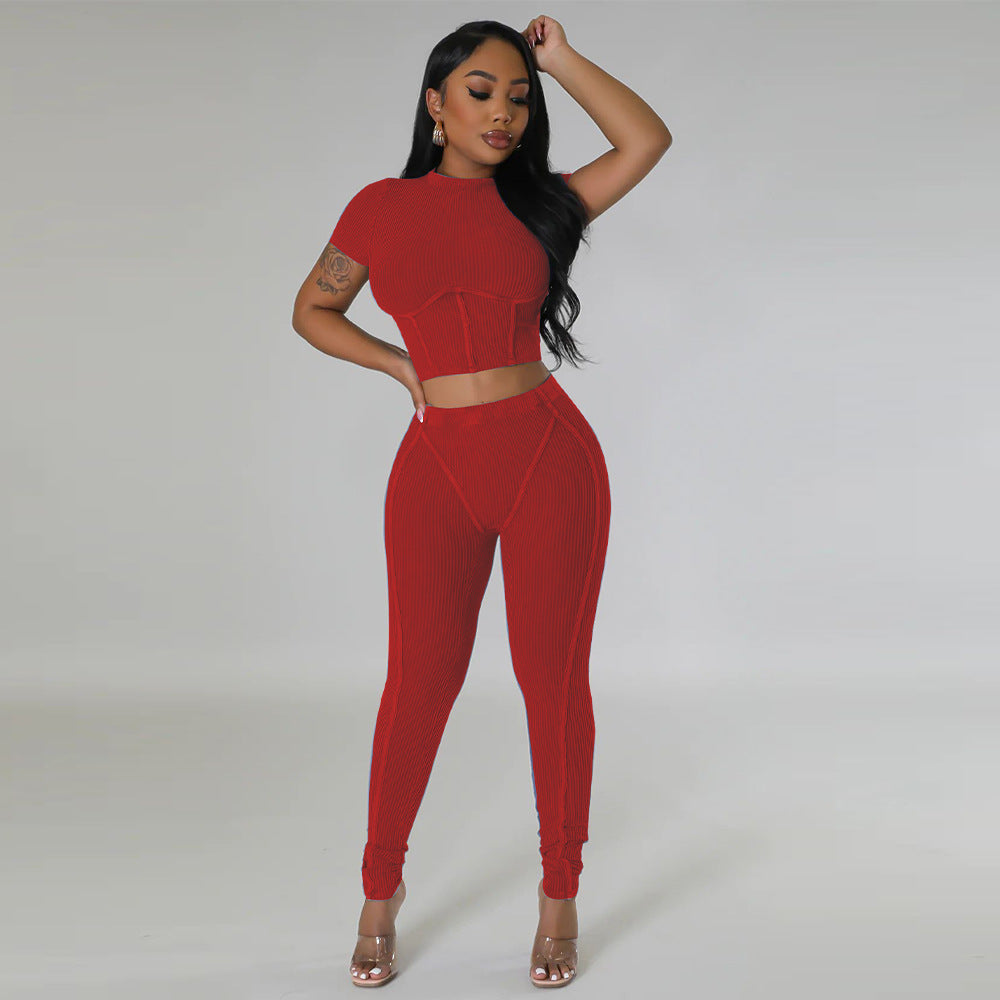 Pit stripe sports round neck tight and navel exposed set(CL11917)
