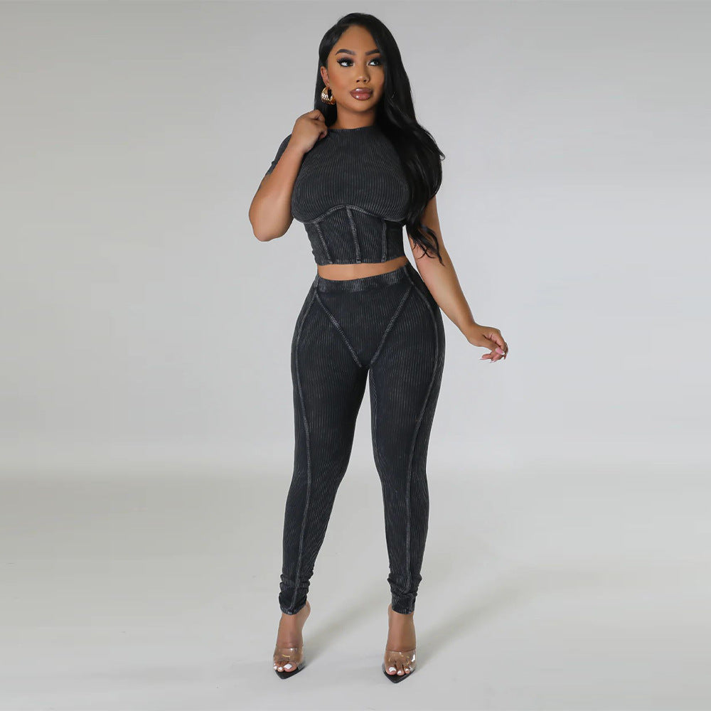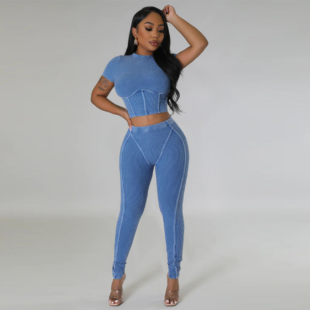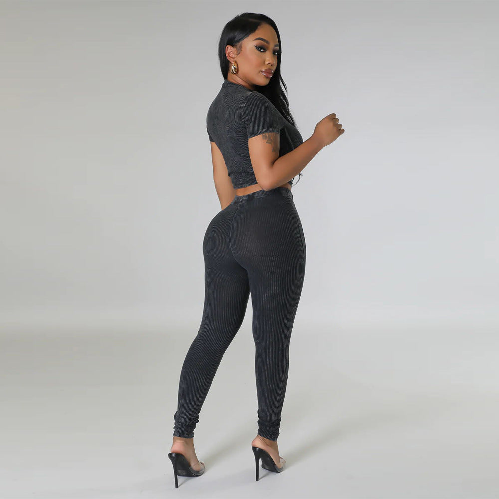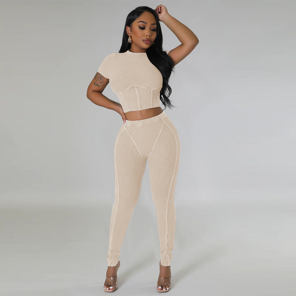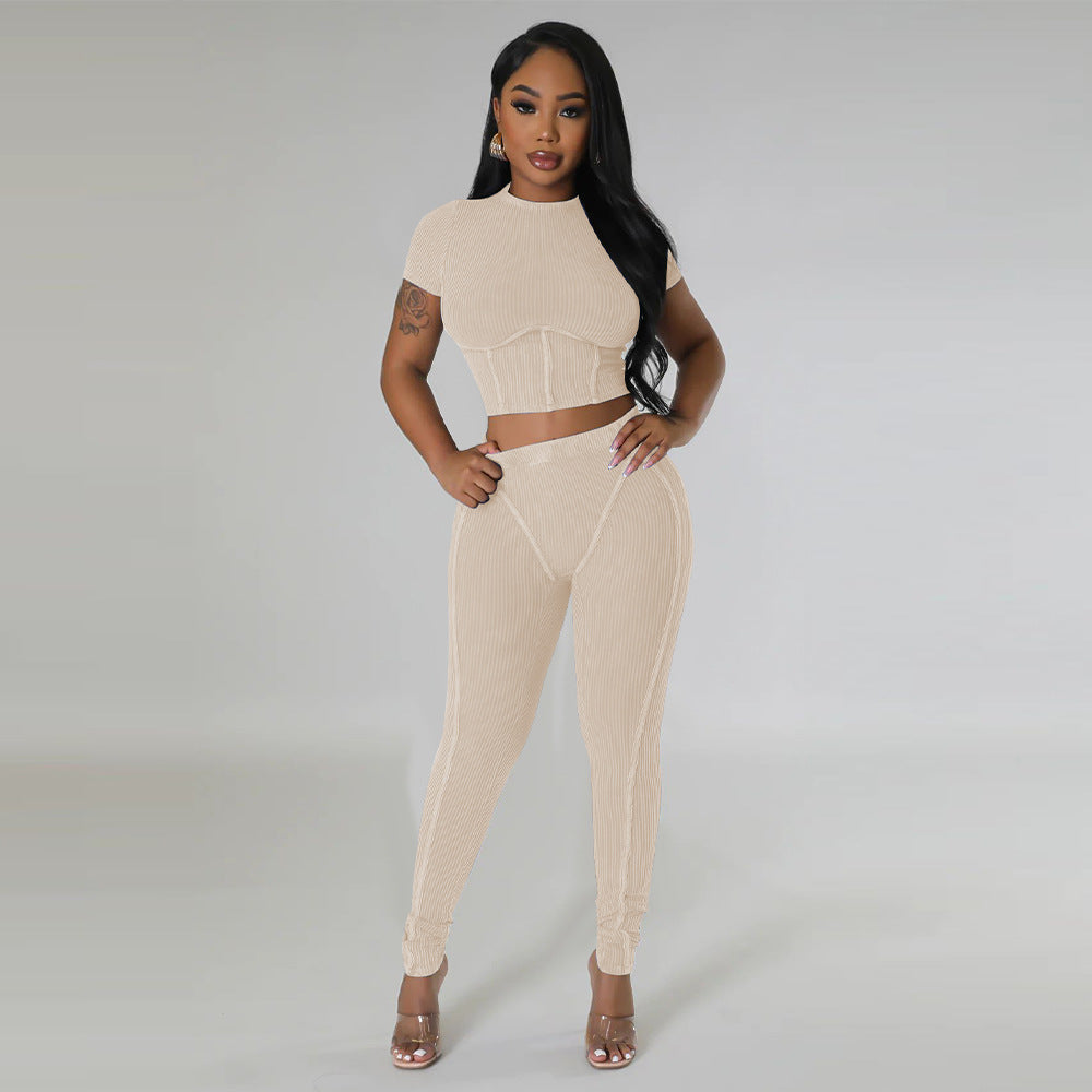 Pit stripe sports round neck tight and navel exposed set(CL11917)