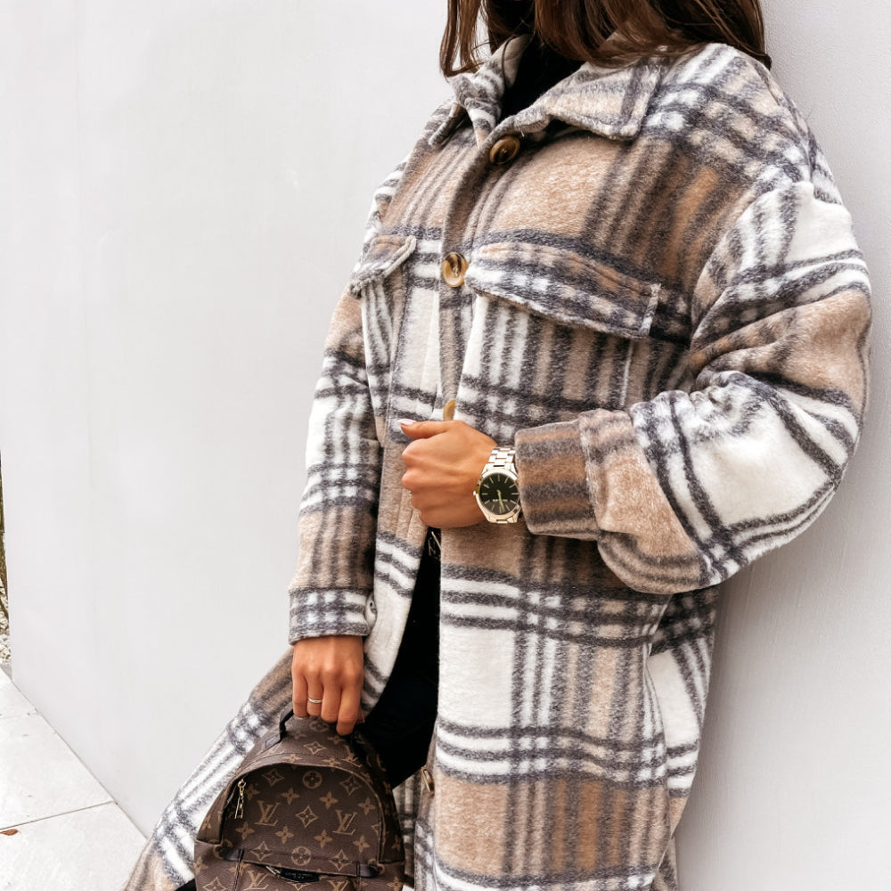 Plaid Printed Mid-Length Shirt Coat(CL10954)