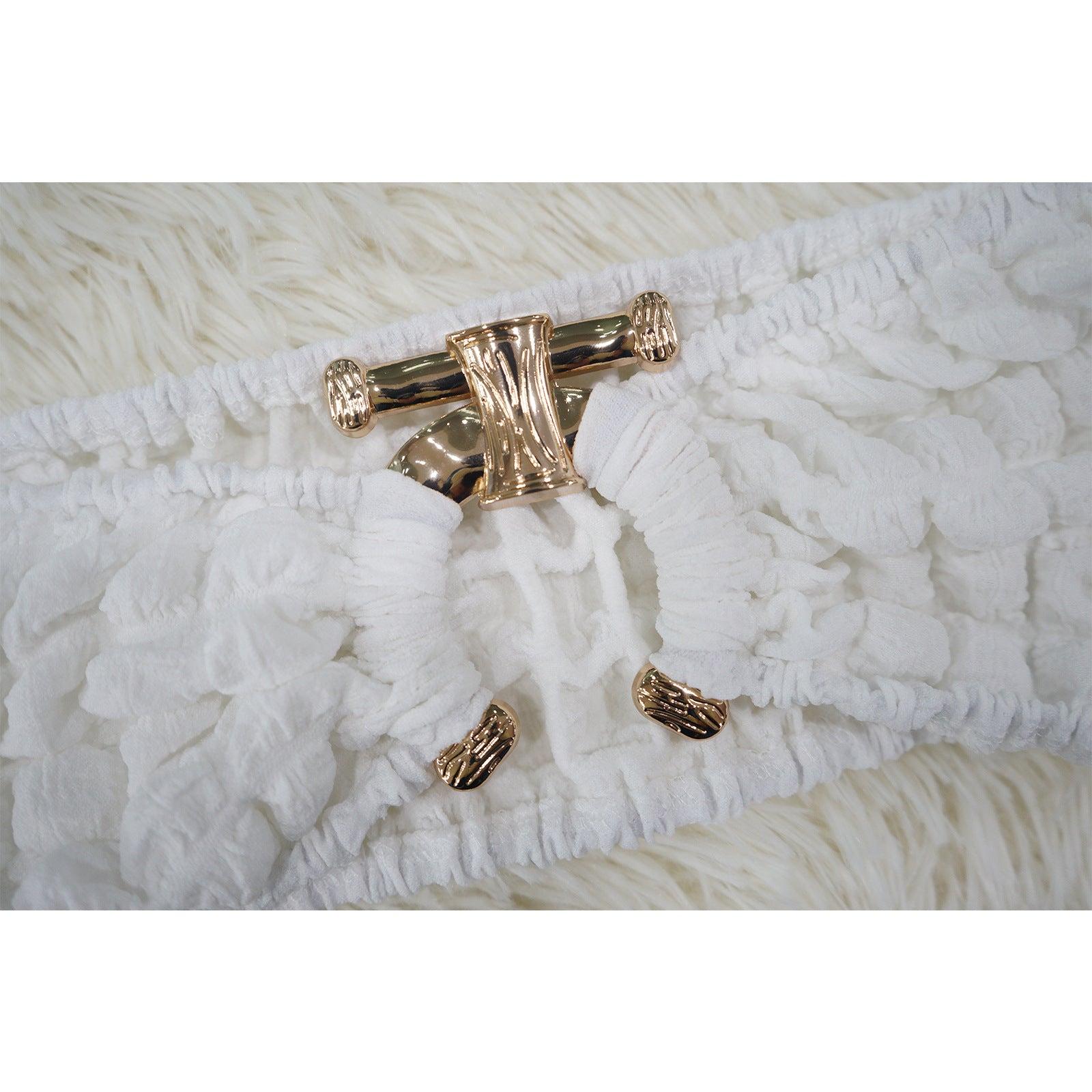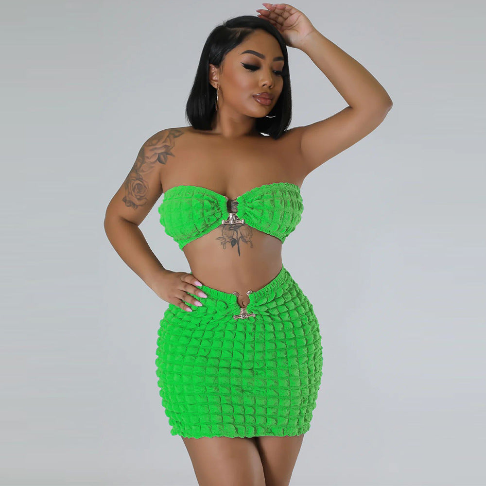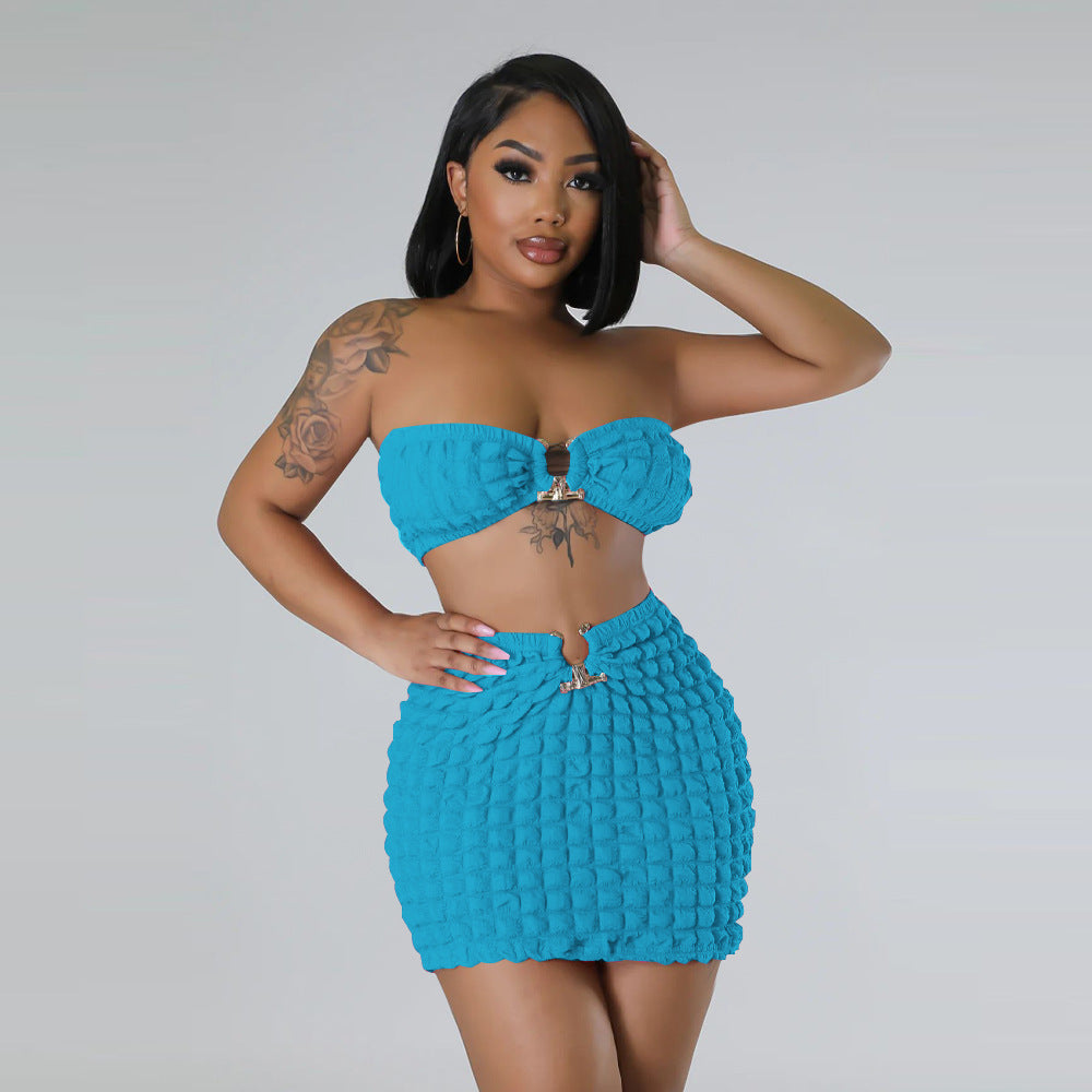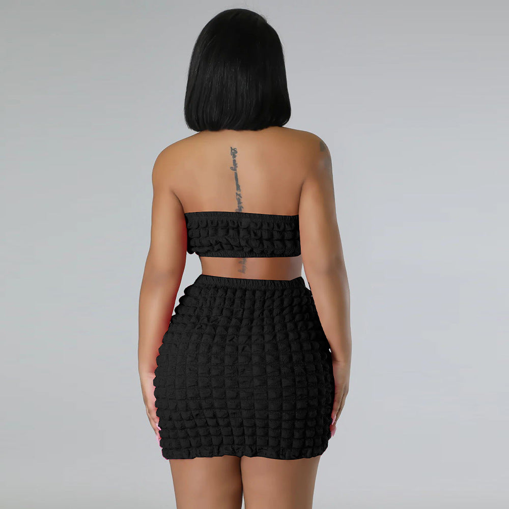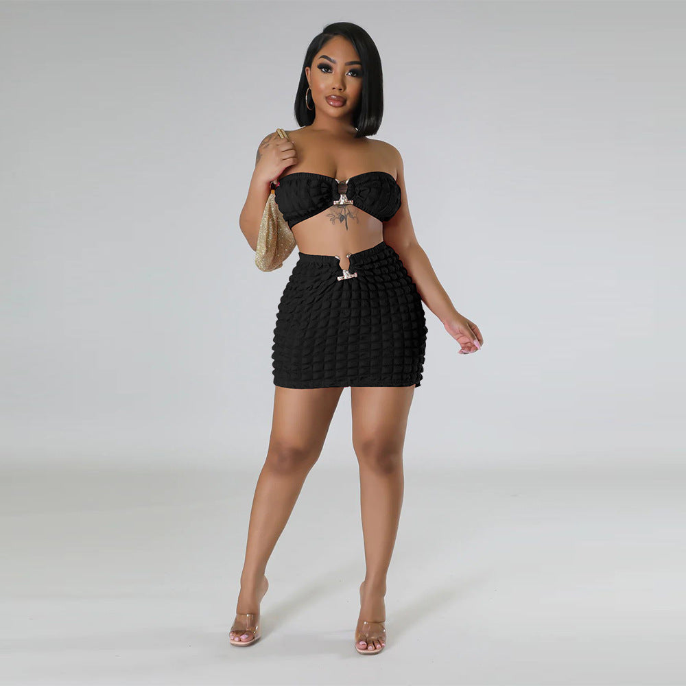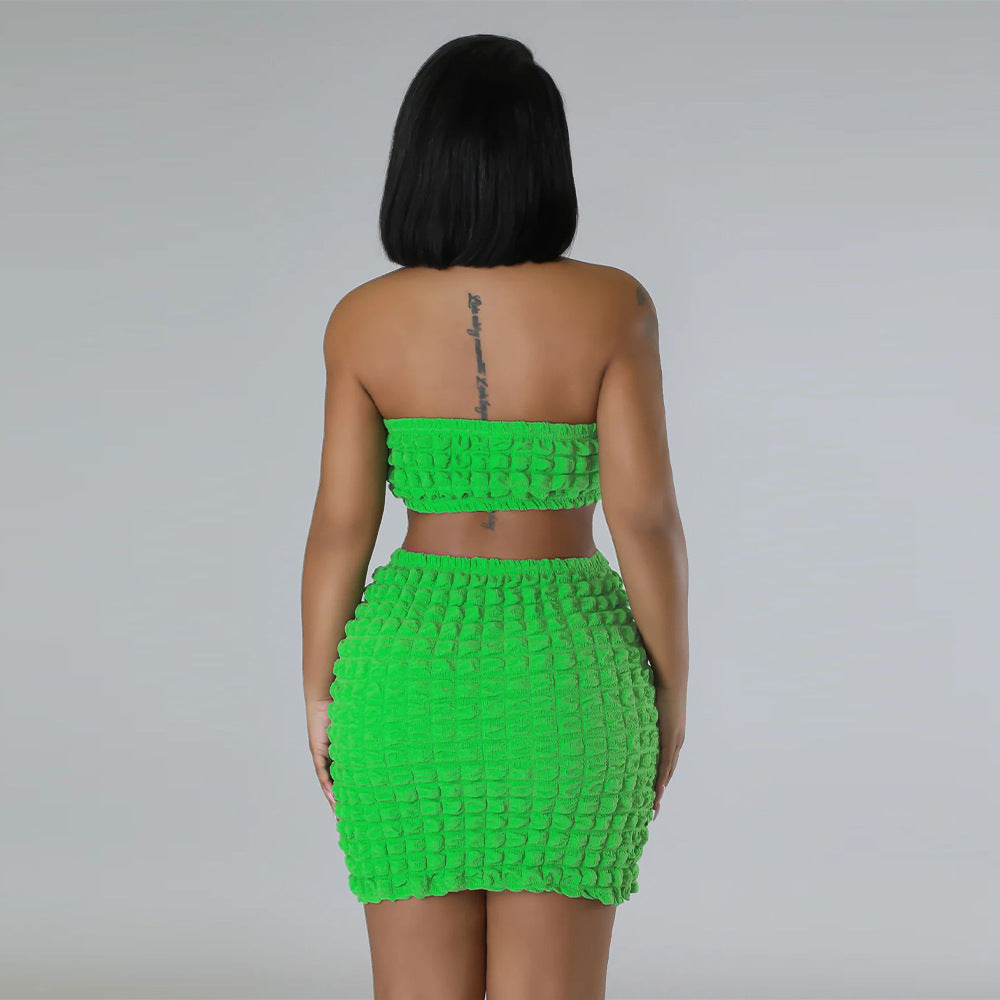 Popcorn Navel Wrapped Chest Bubble Skirt Suit(CL11604)
