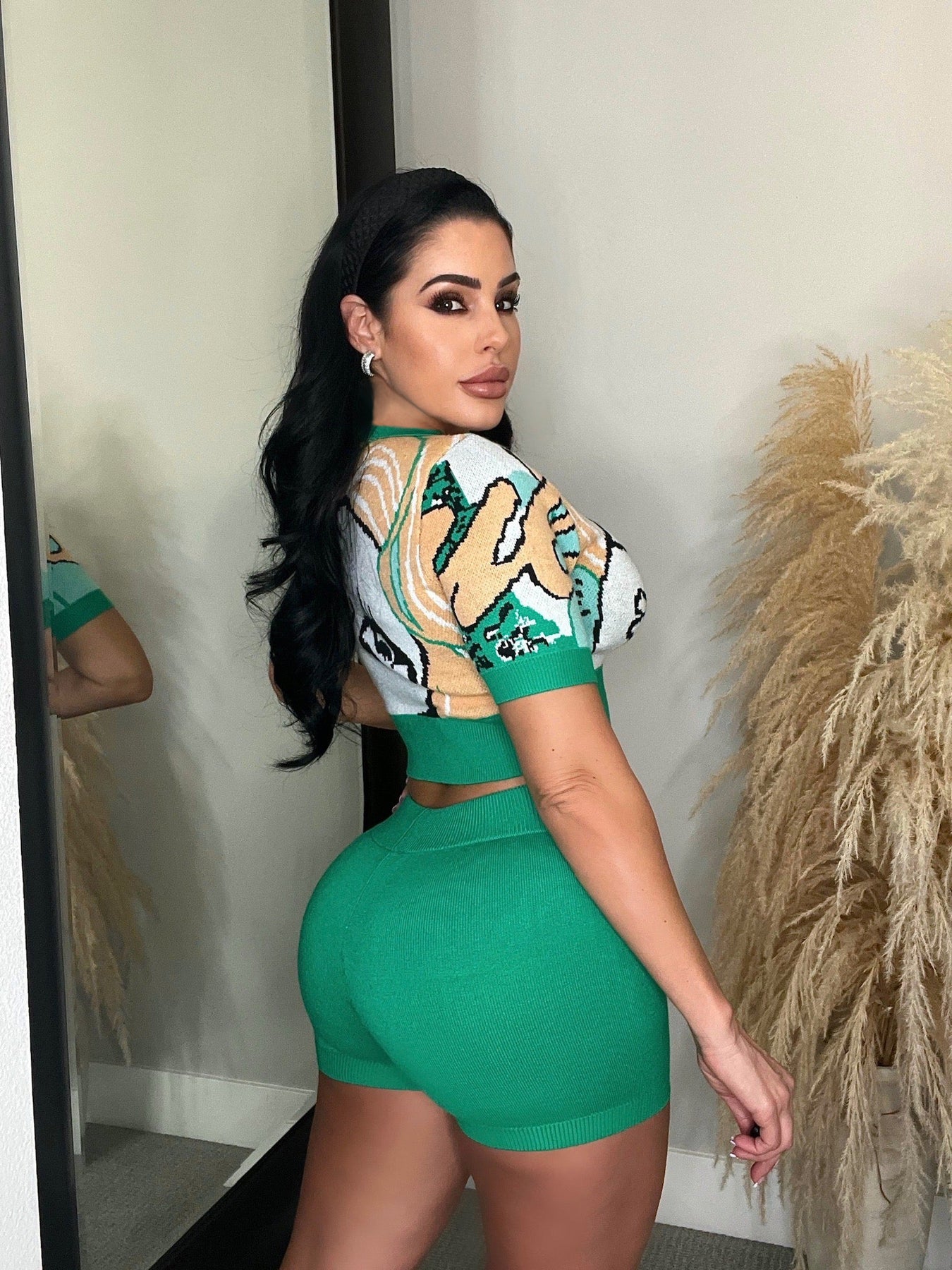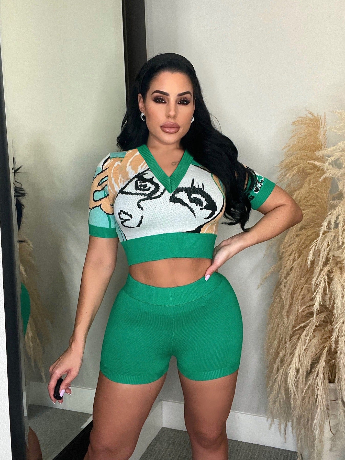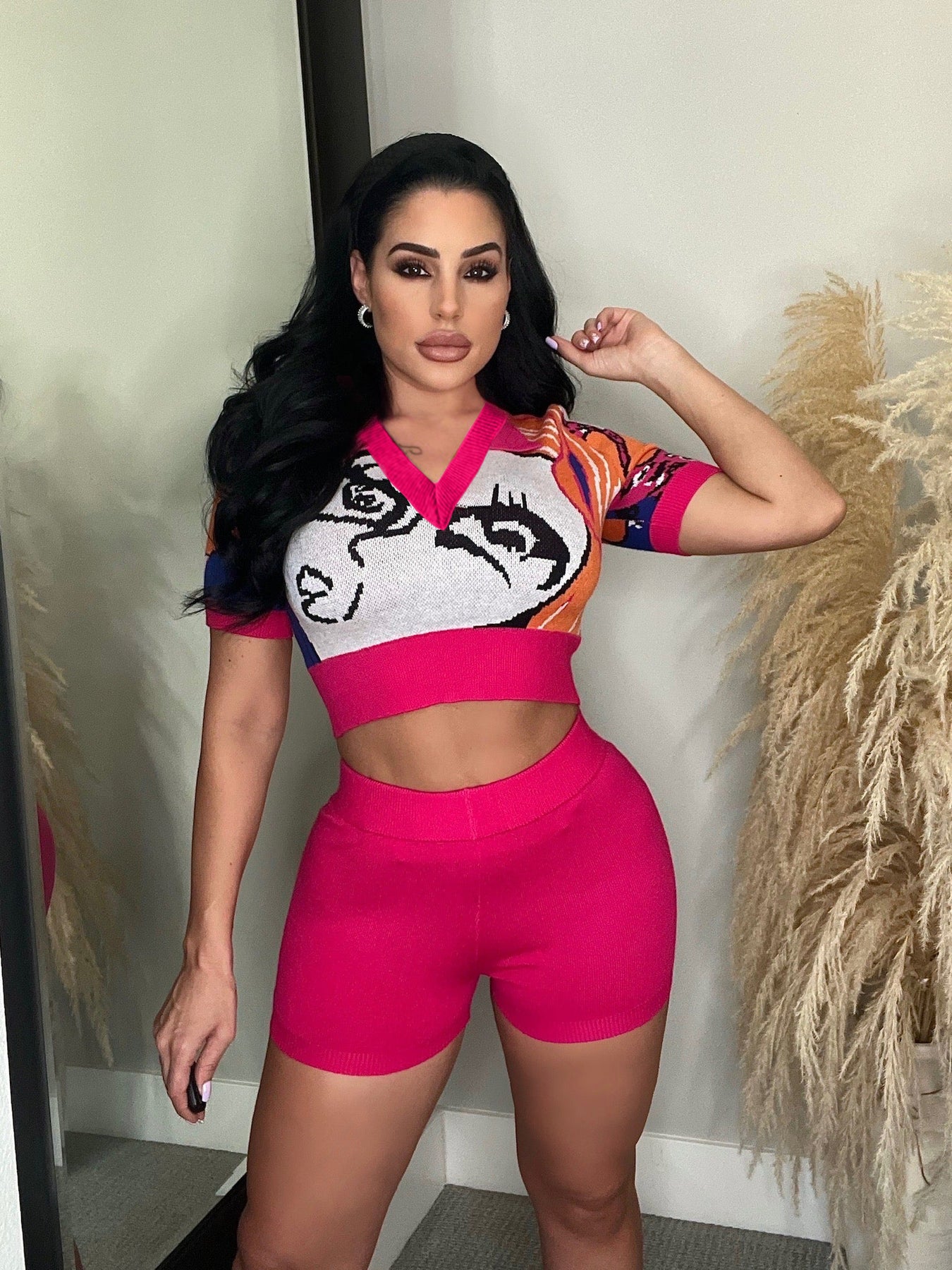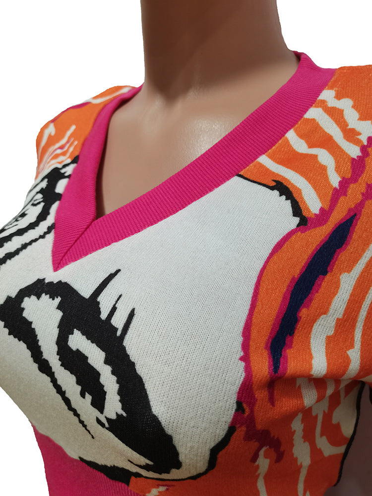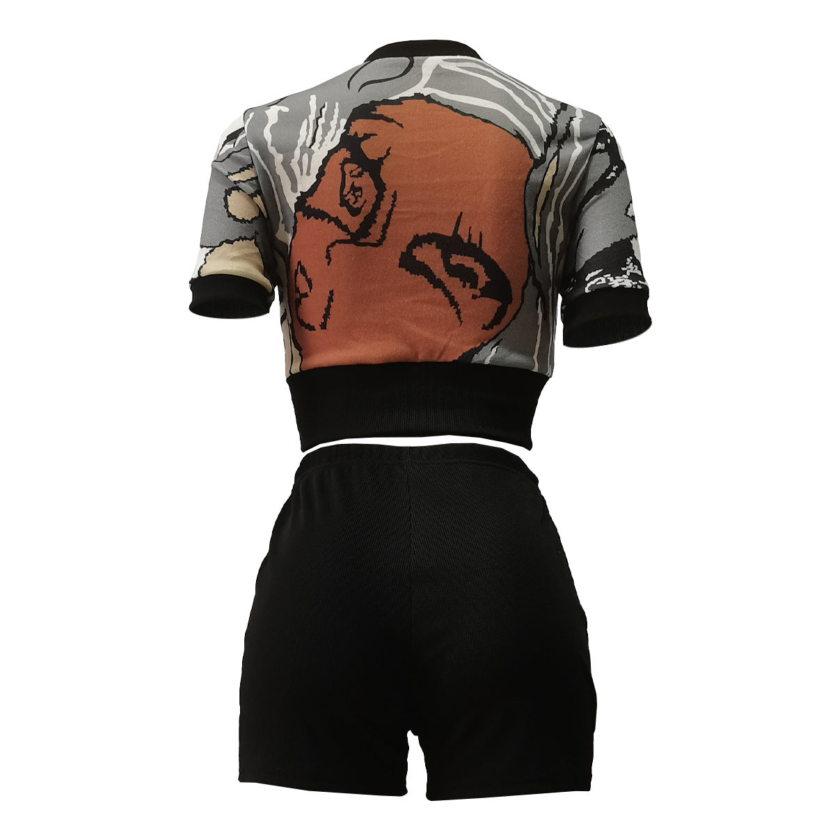 Printed Heart Neck Slim Fit Sports & Casual Suit (CL11868)