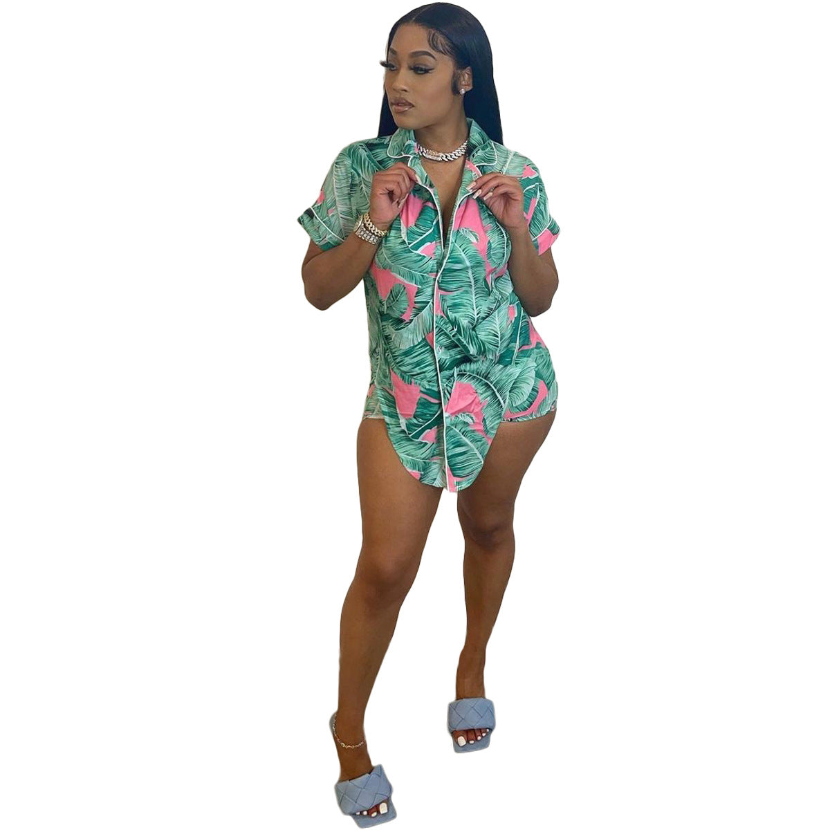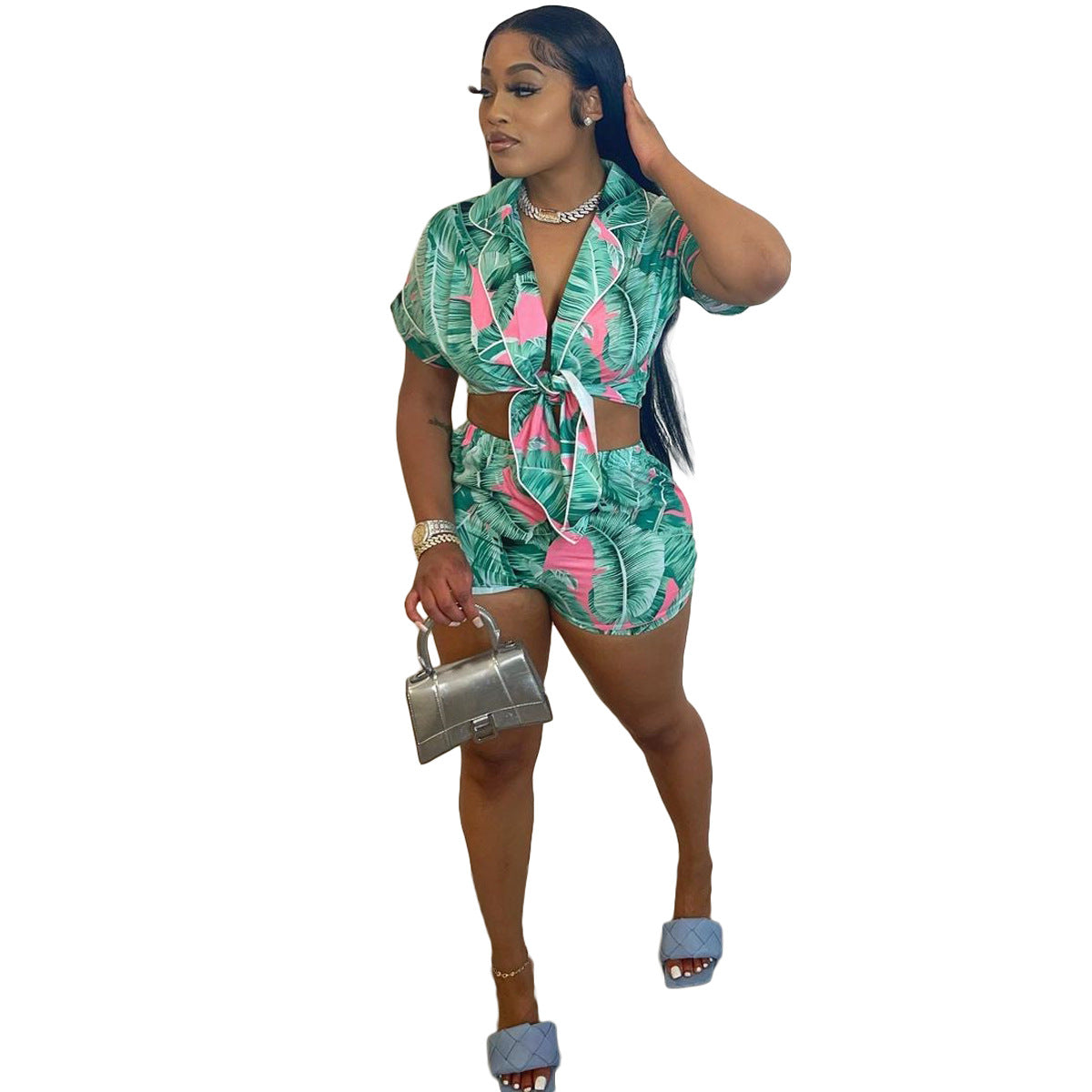 Printed Irregular Bandage Short Sleeve Two-piece Suit (CL11372)