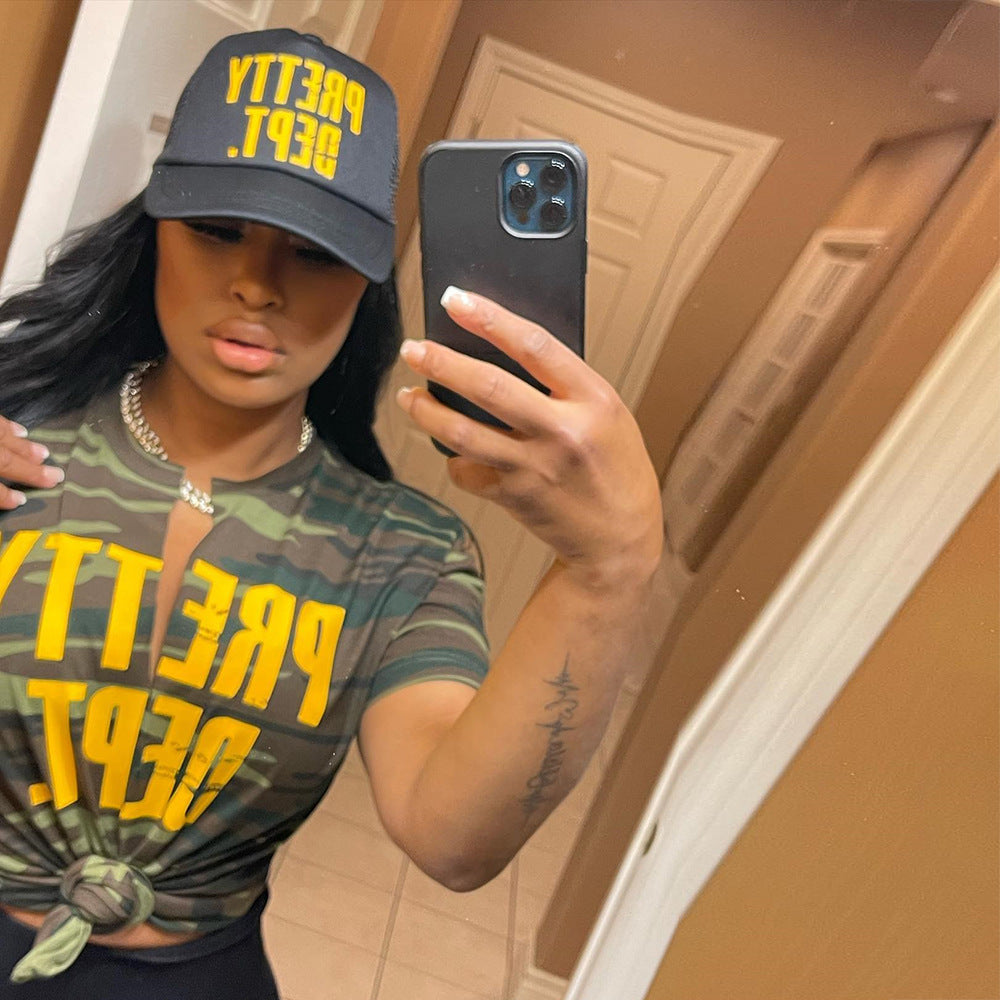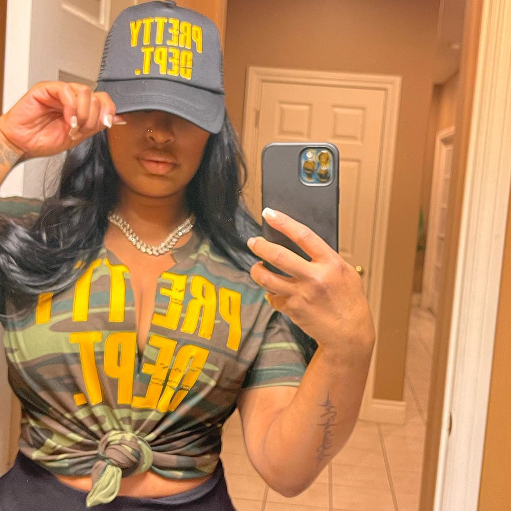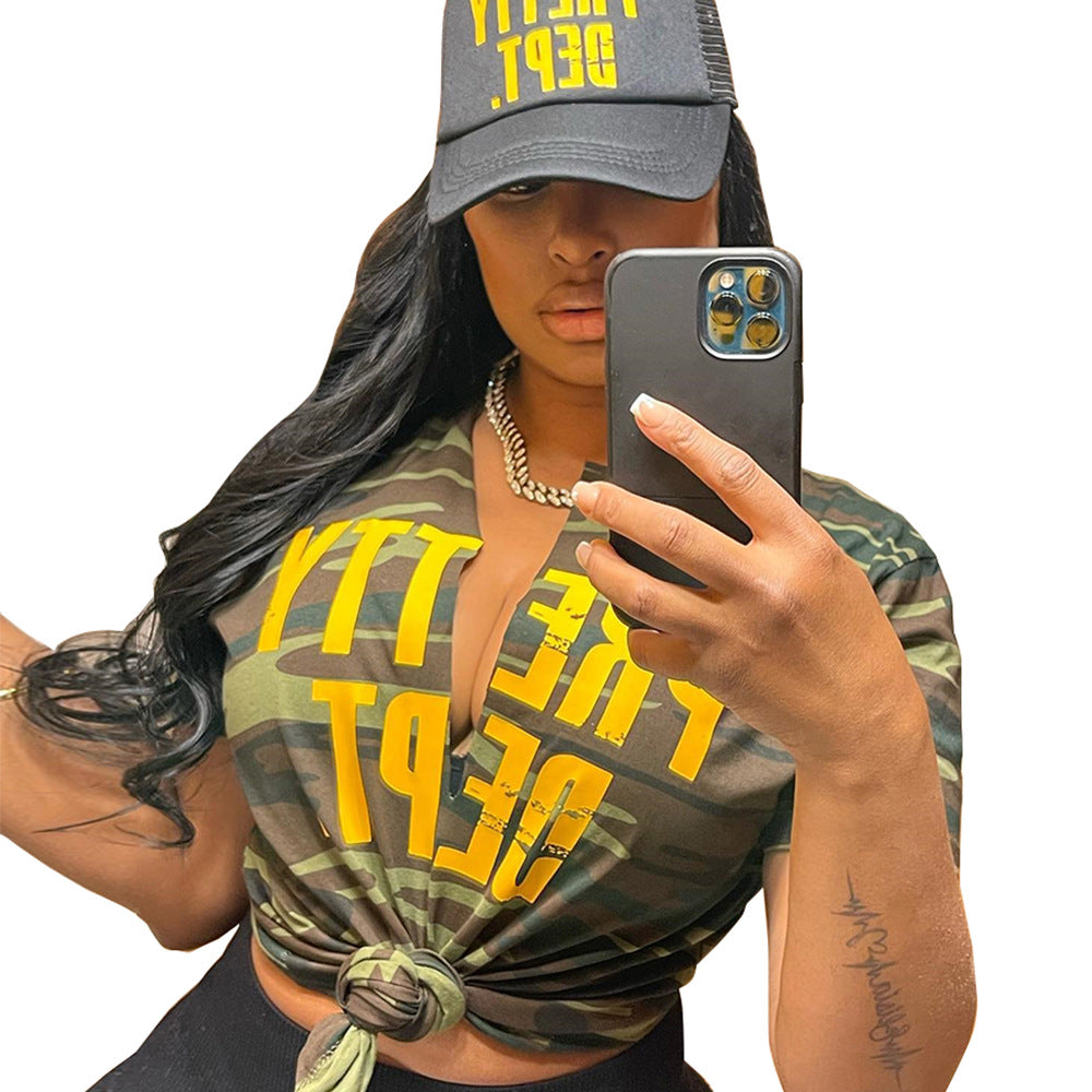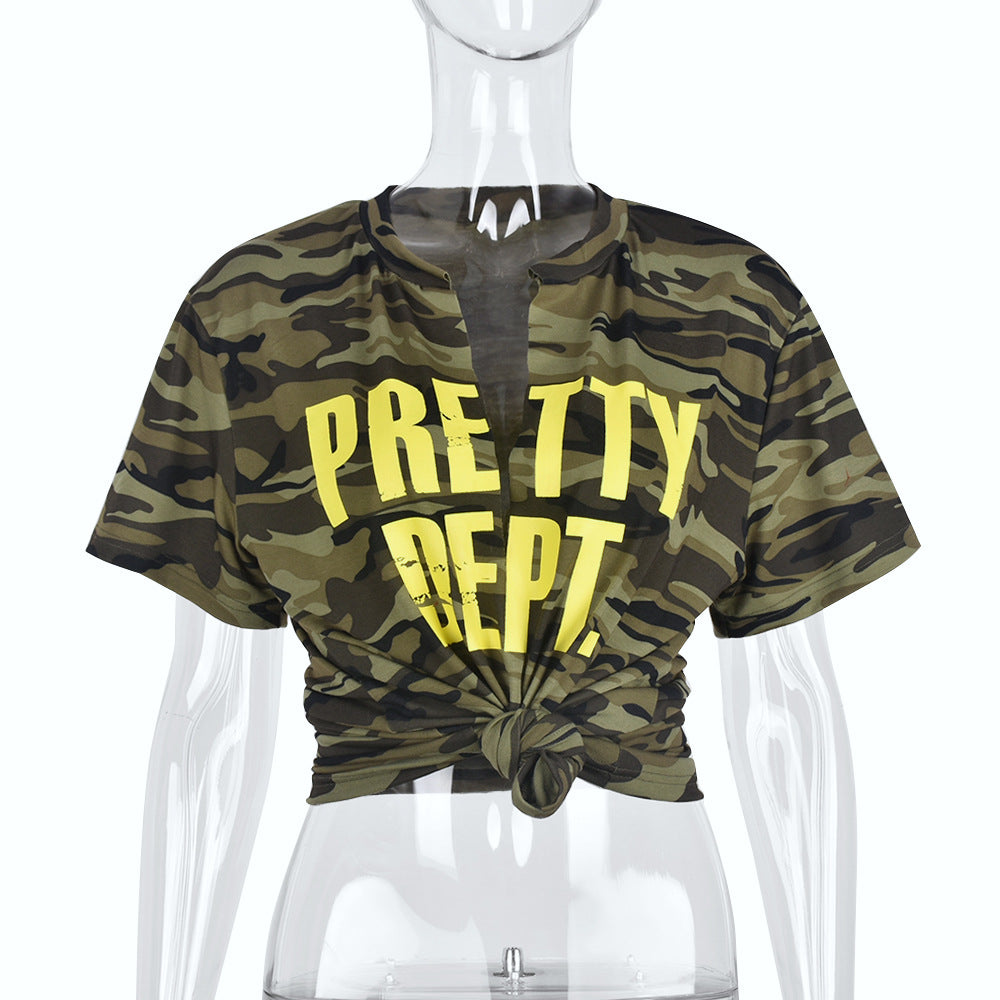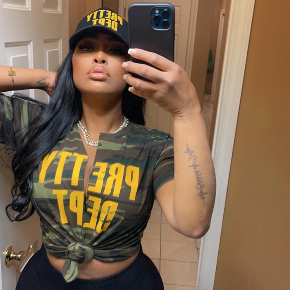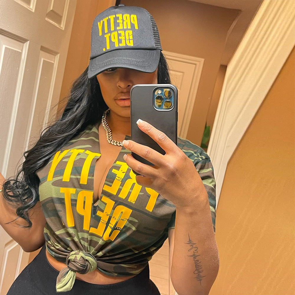 Printed Letter Hollow Loose T-shirt (CL11250)