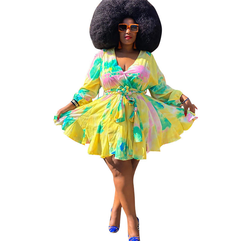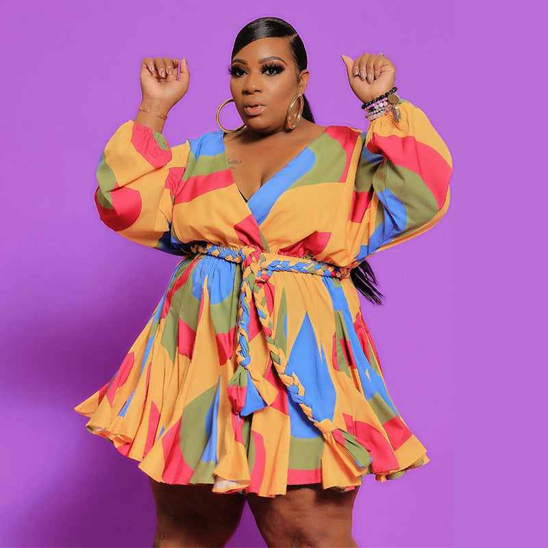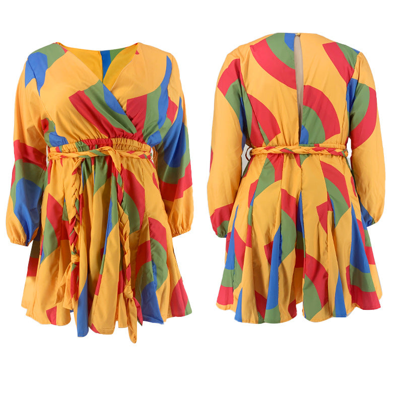 Printed V-neck Sexy Woven Large Swing Dress (CL10469)