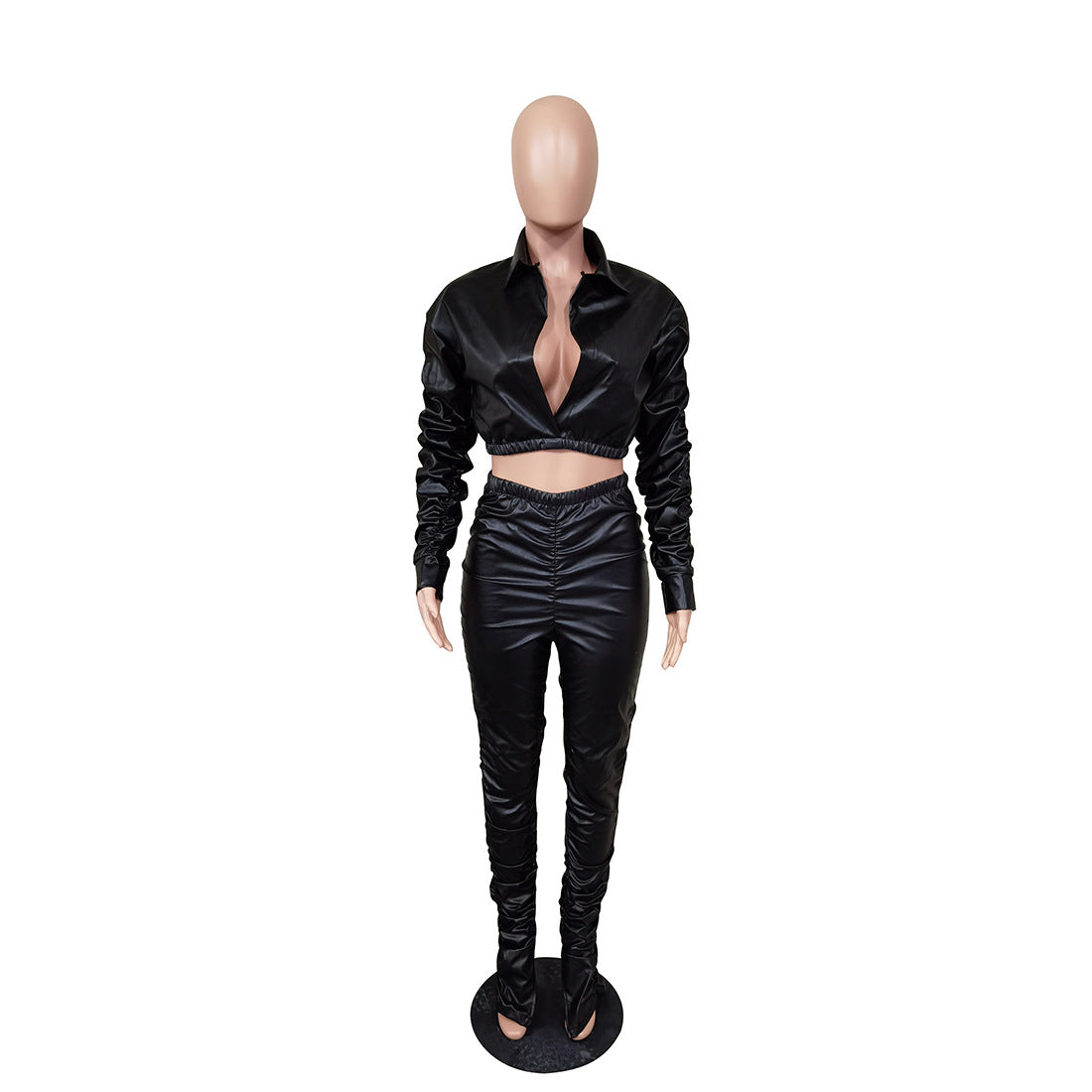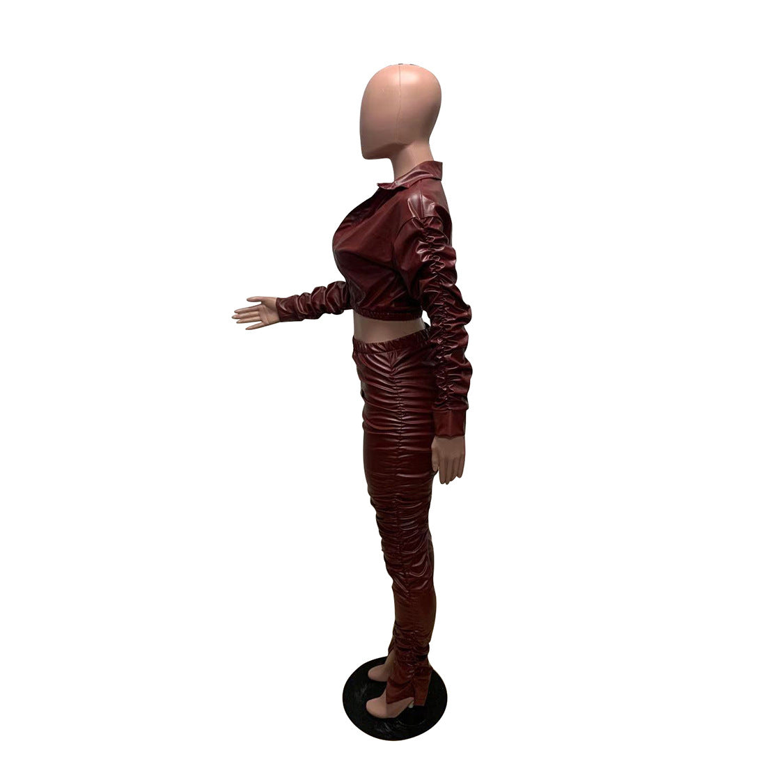 PU Leather Crinkled Elastic Two-piece Set (CL11049)