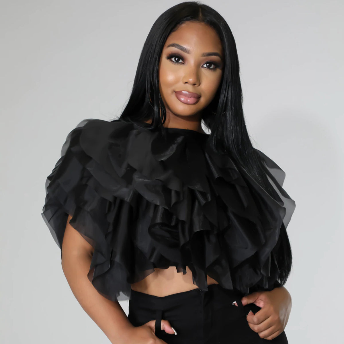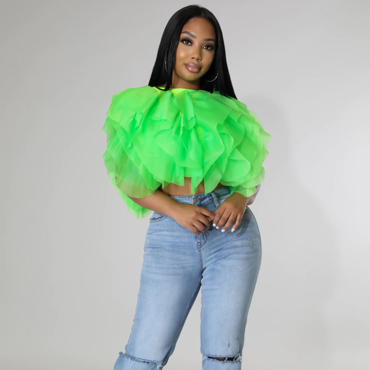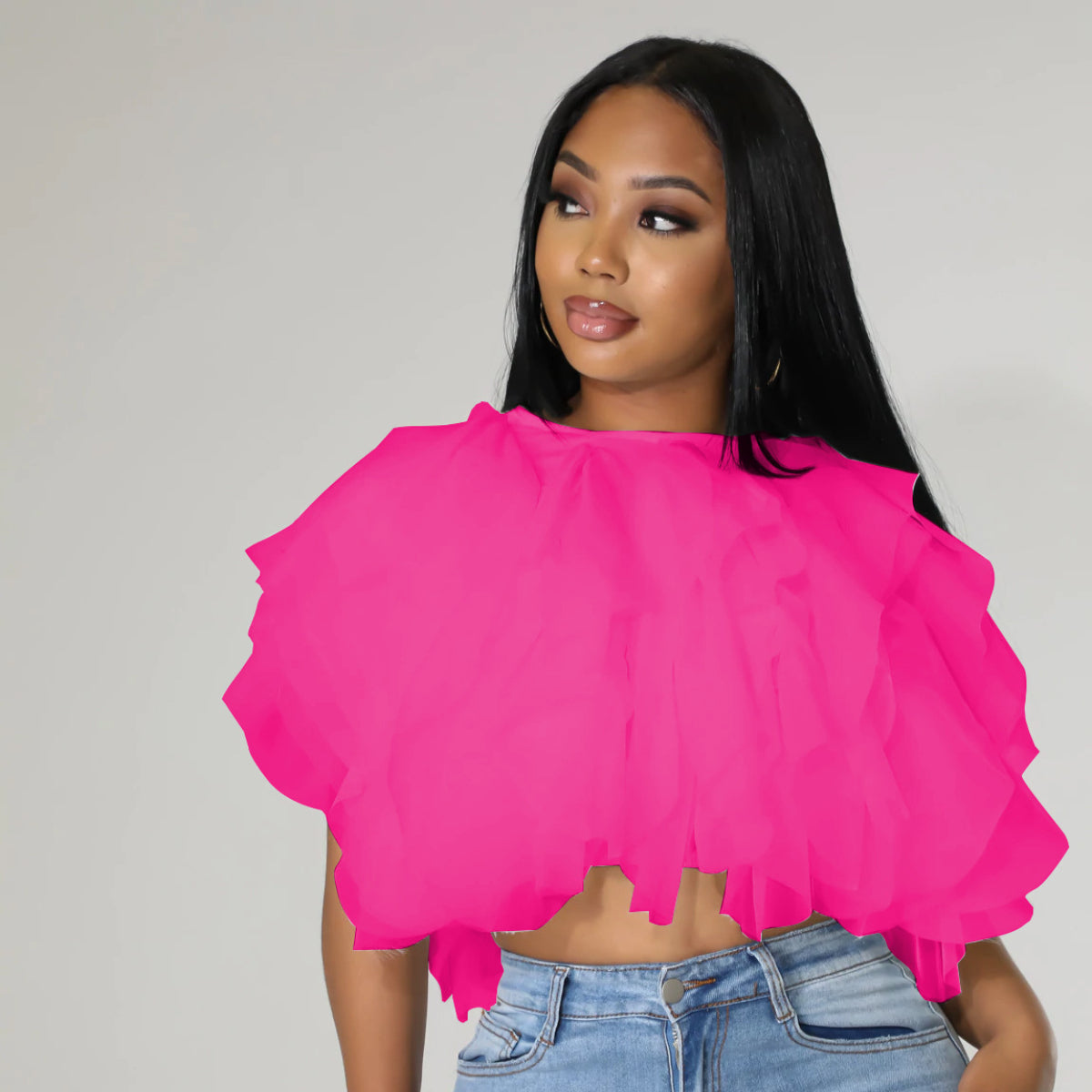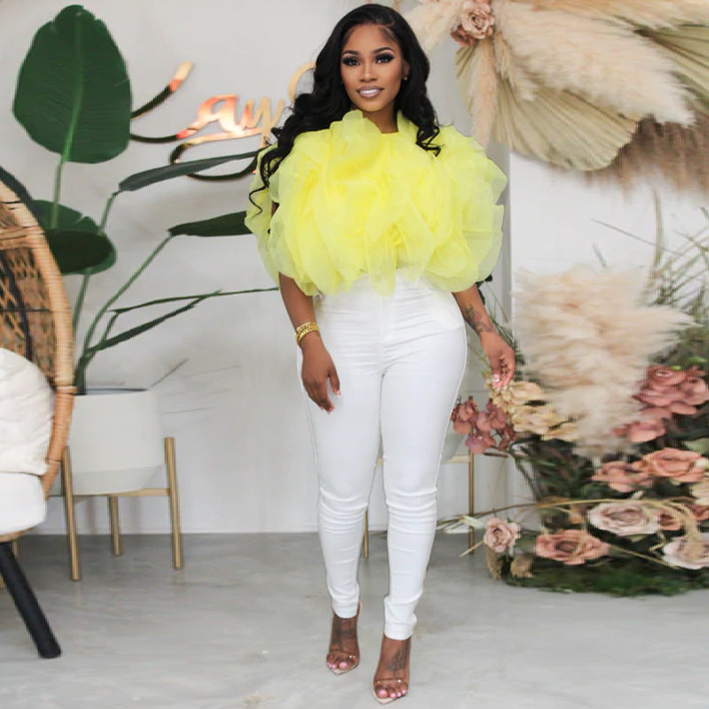 Puffy Petal Chiffon Sleeveless Fashion Short Top(CL10464)