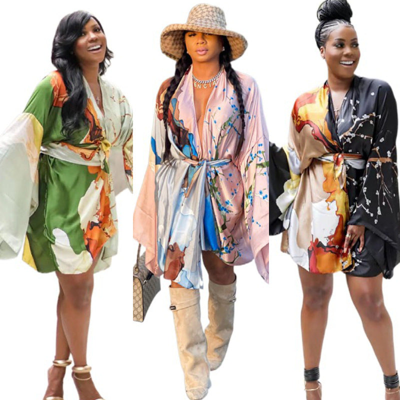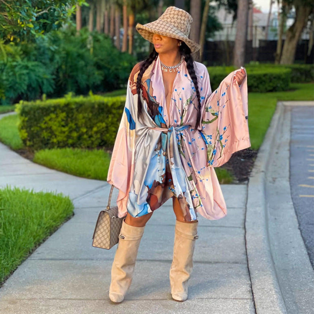 Retro Ethnic Style Blouse Bikini Swimsuit Outwear (CL11907)
