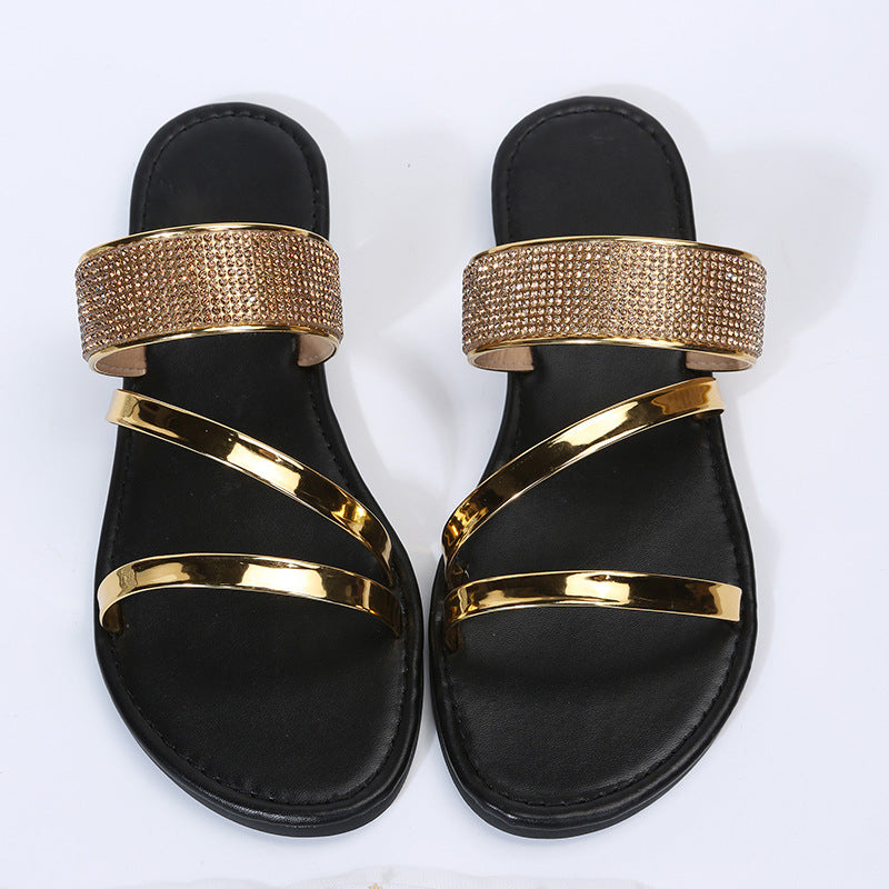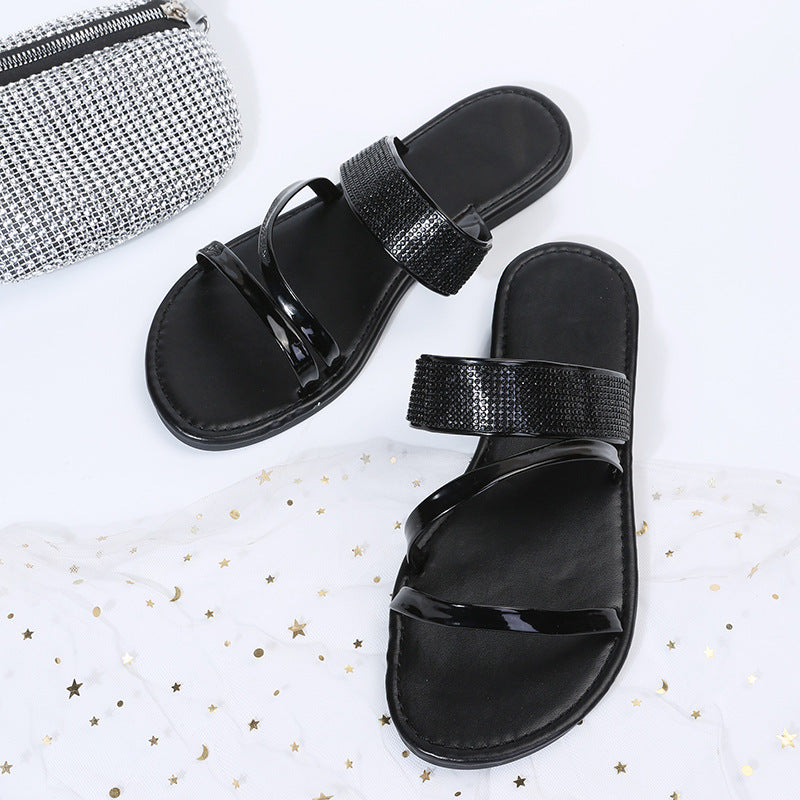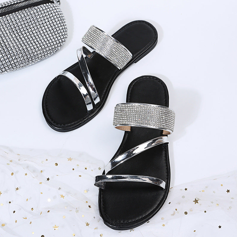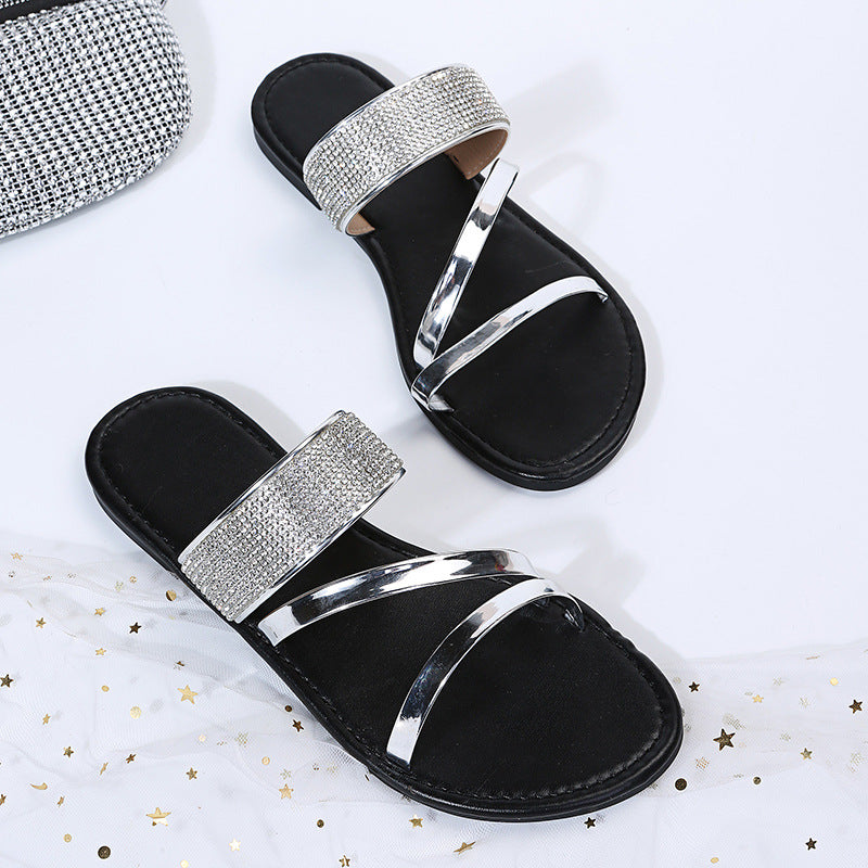 Rhinestone Flat Slippers Women's Beach Leisure Sandals(SL8408)