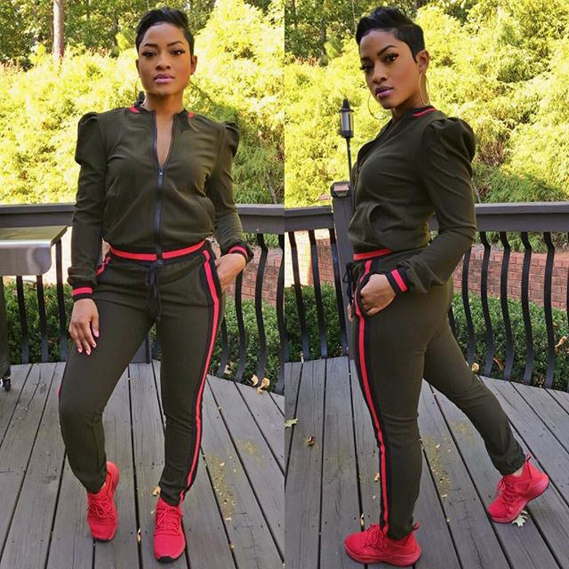 Ribbon multicolored lantern sleeve sports and leisure set(CL12068)