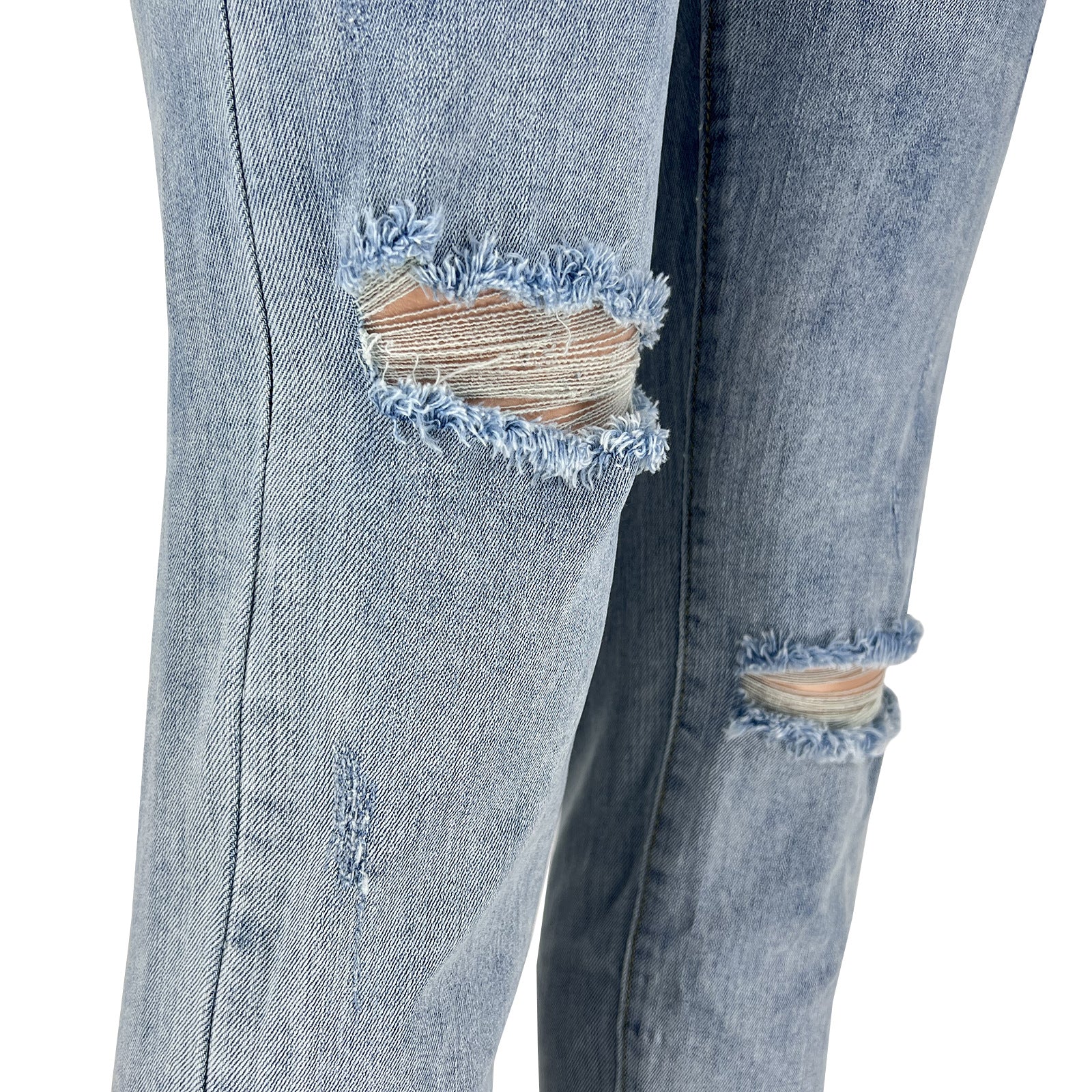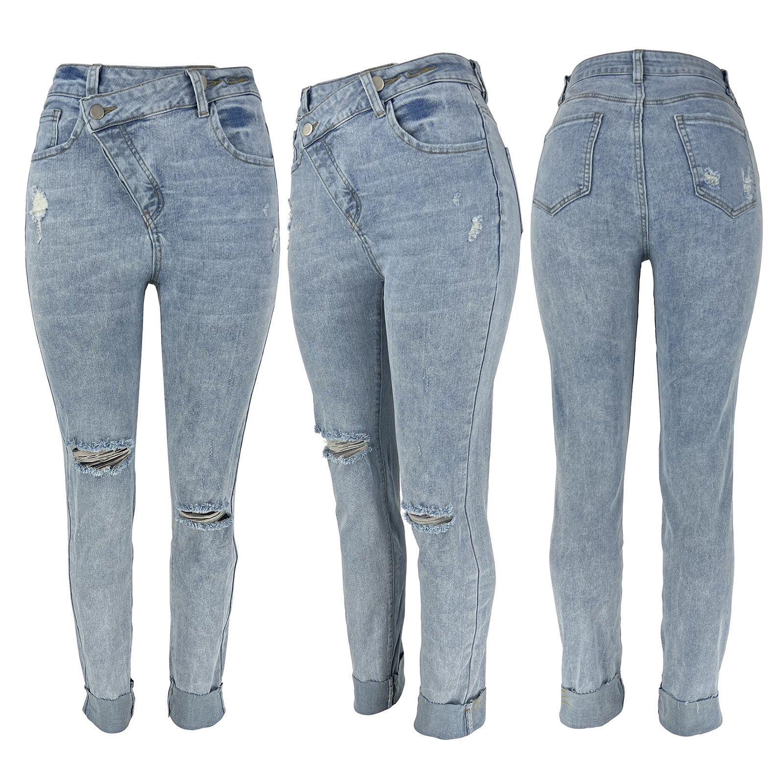 Ripped Diagonal Buckle Stretch Jeans(CL11588)