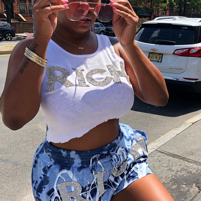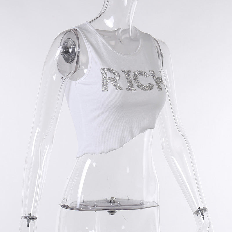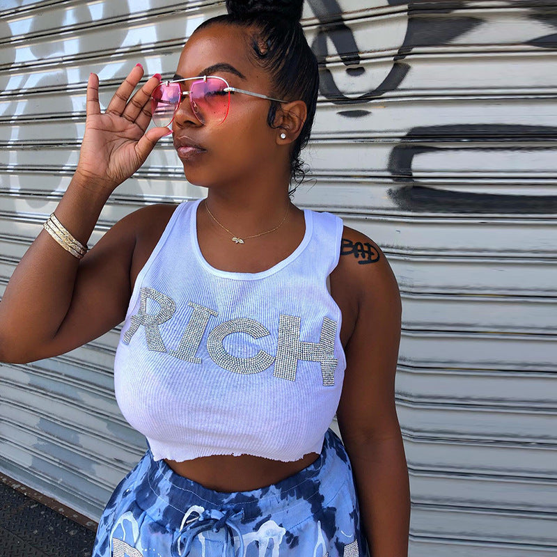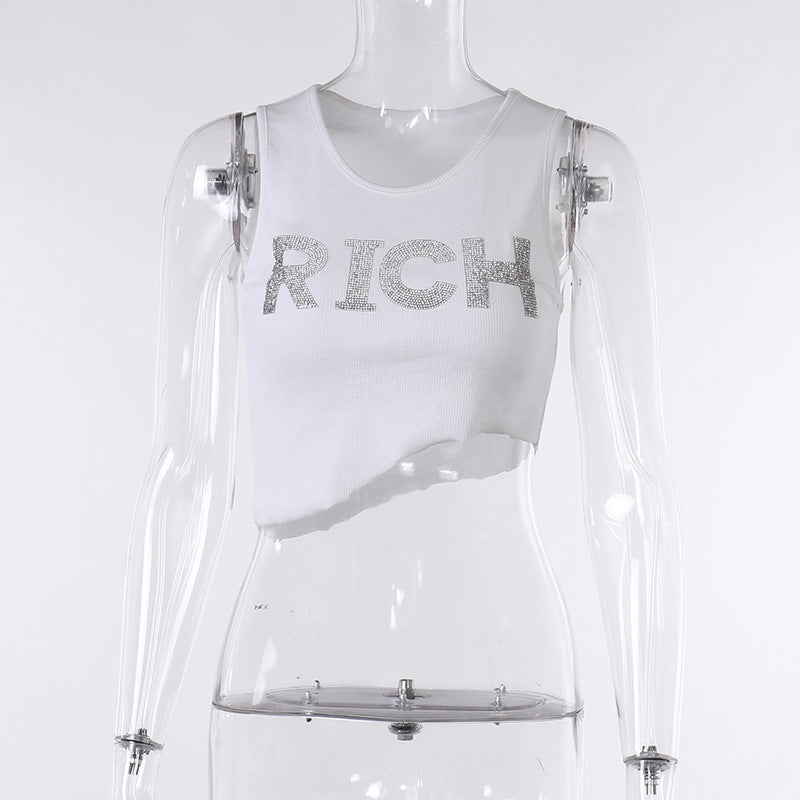 round Neck Letter Hot Drilling Short Camisole (CL11542)