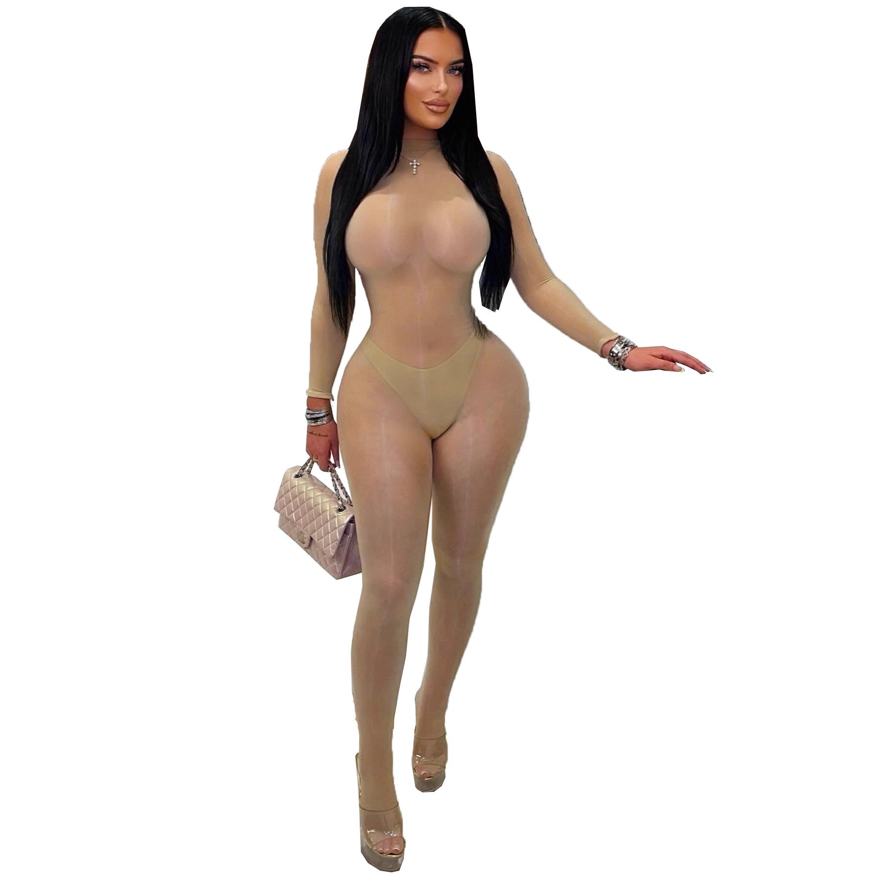 See-through, tight-fitting, silky, glossy, seamless, high-elastic bodysuit(CL12391)