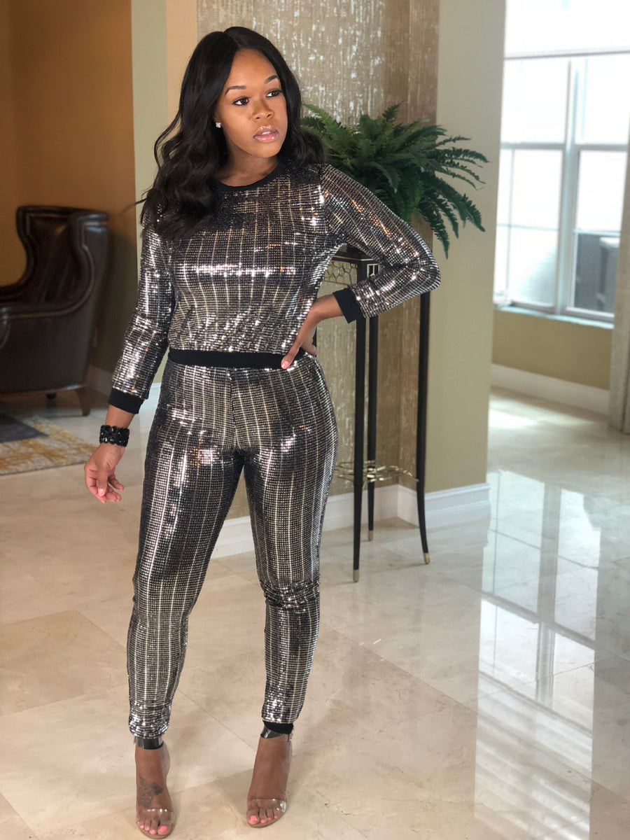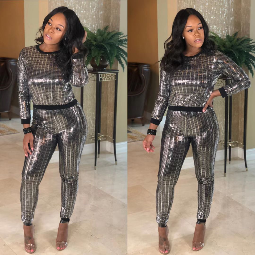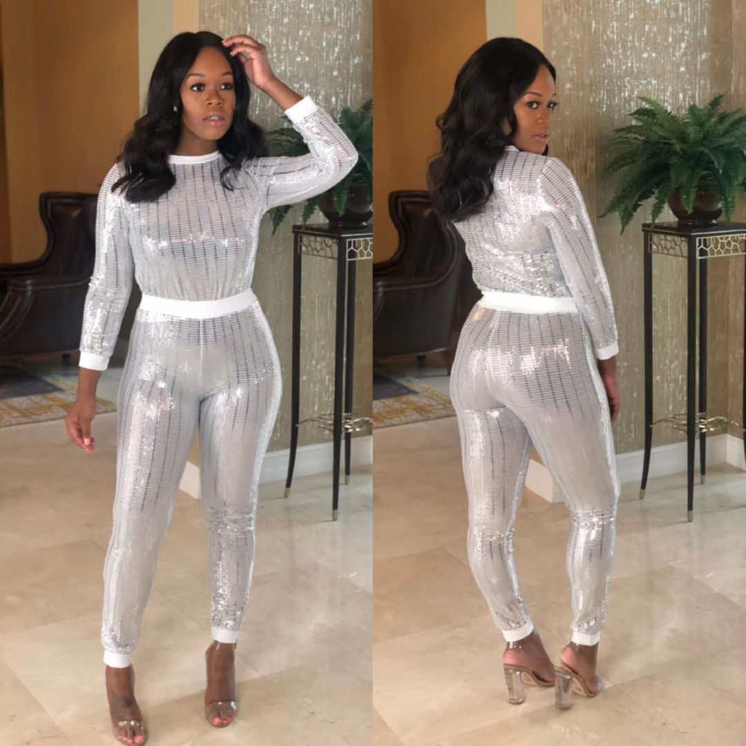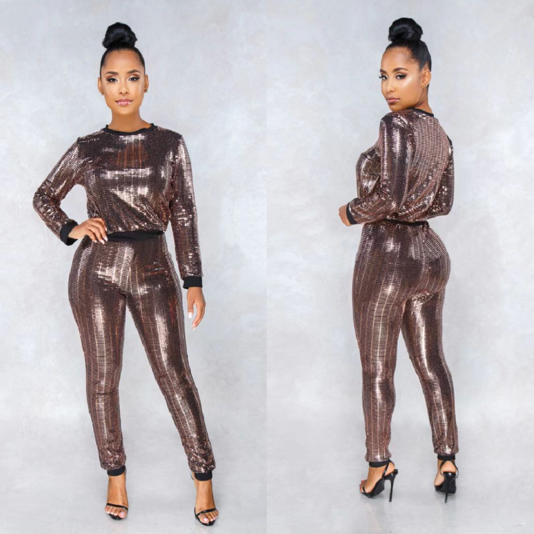 Sequined Long Sleeve Multicolor Suit(CL11076)