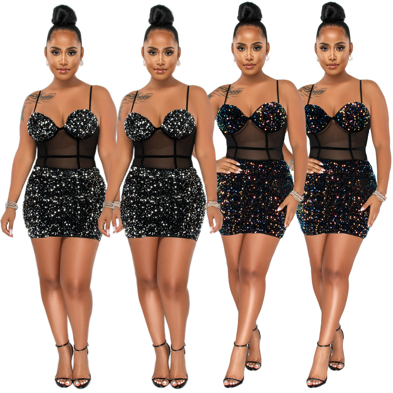 Sequined See-through Sexy Suspenders Dress (CL9839)