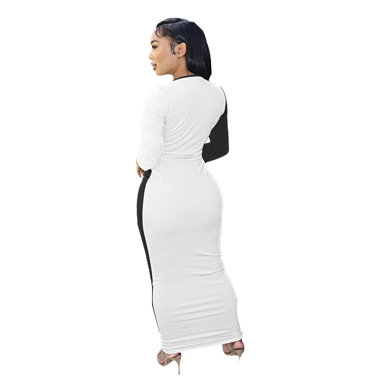 Sexy Color Block Thread Hollow-out Waist Long Dress (CL10902)