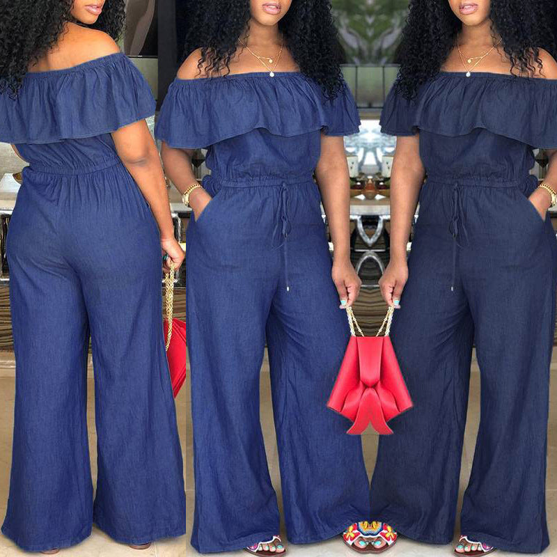 Sexy off-the-Shoulder plus Size Overall Jeans (CL10221))