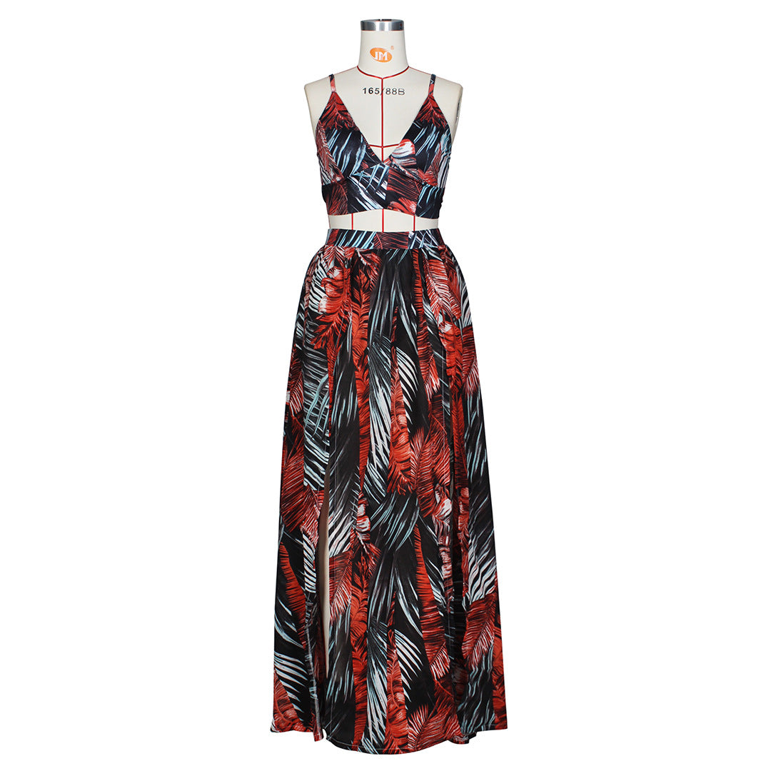 Sexy Sling Vest Floral Print Swing Dress Beach Skirt 2pc (CL10064)