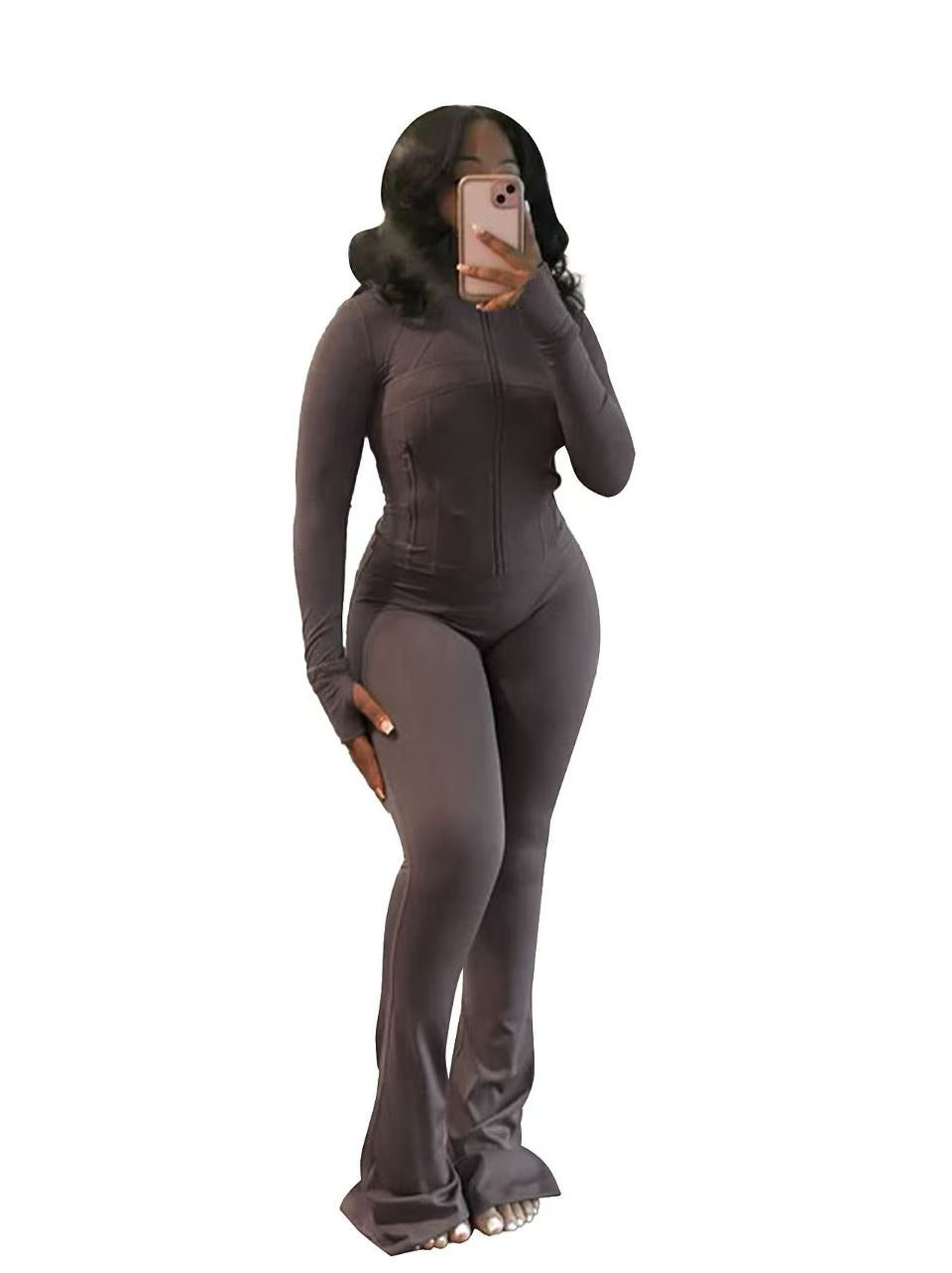 Sexy tight long-sleeved micro-horn two-piece set (CL12353)