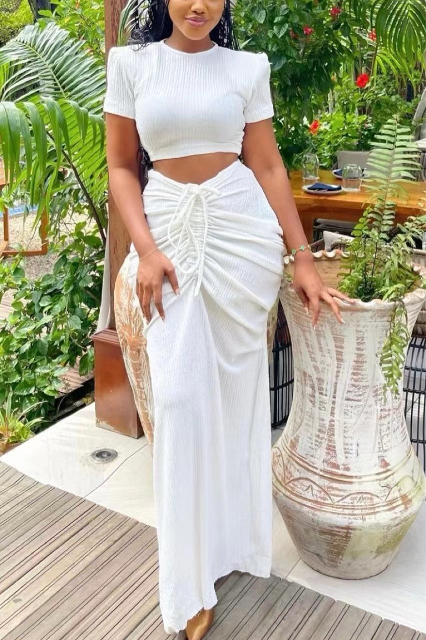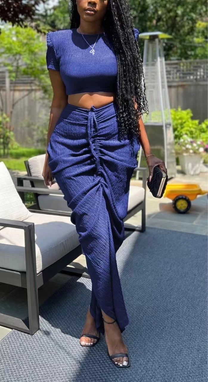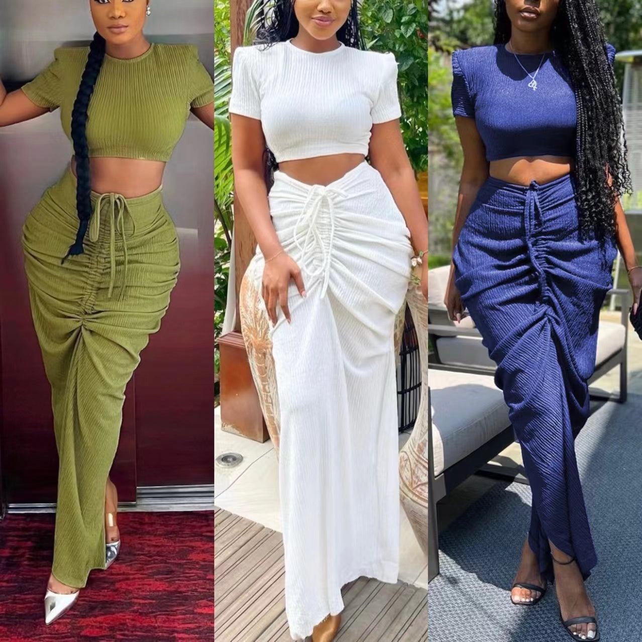 Short sleeve drawstring hip slim skirt 2pc set(CL12166)