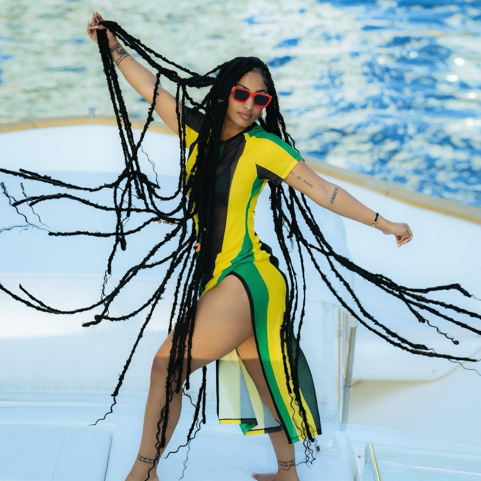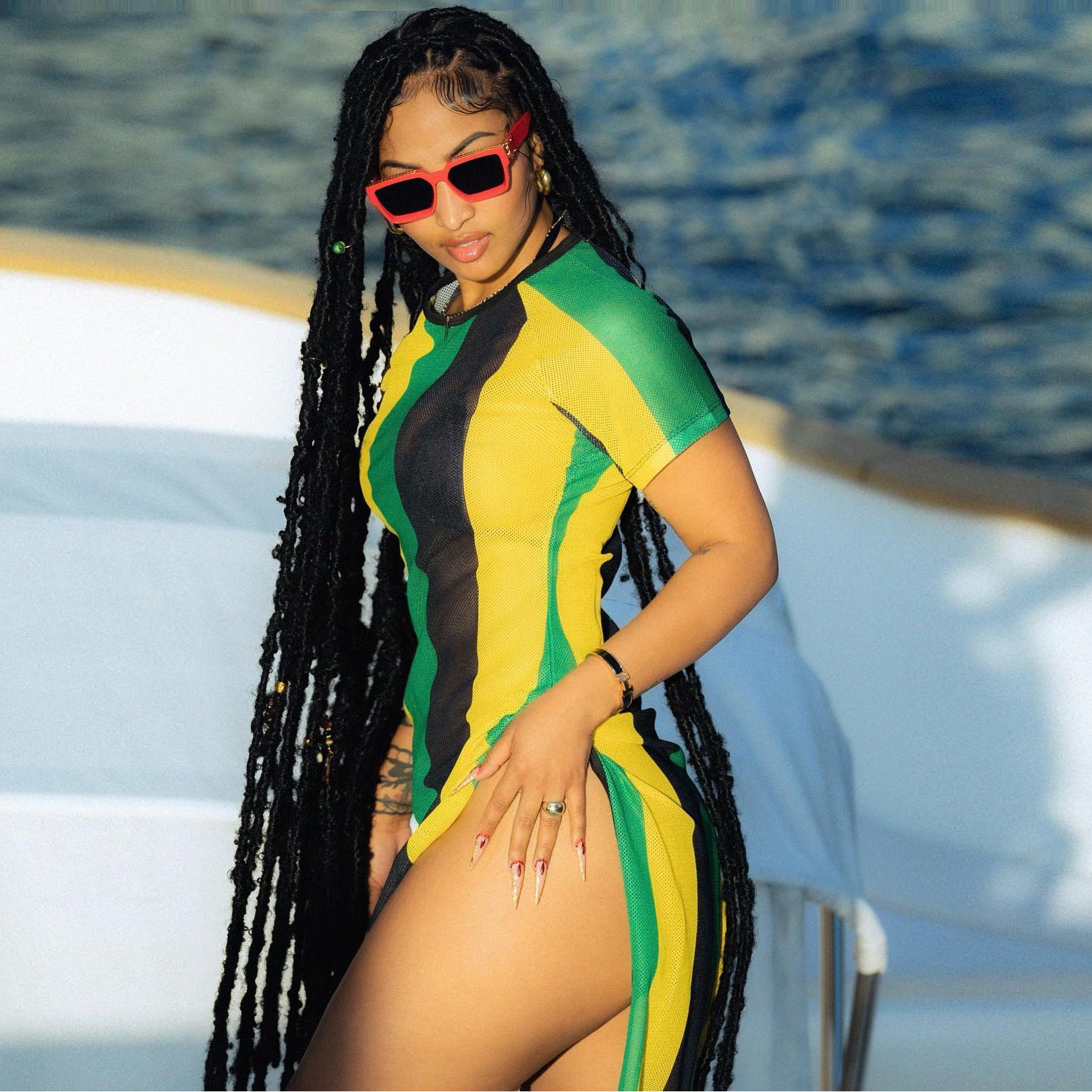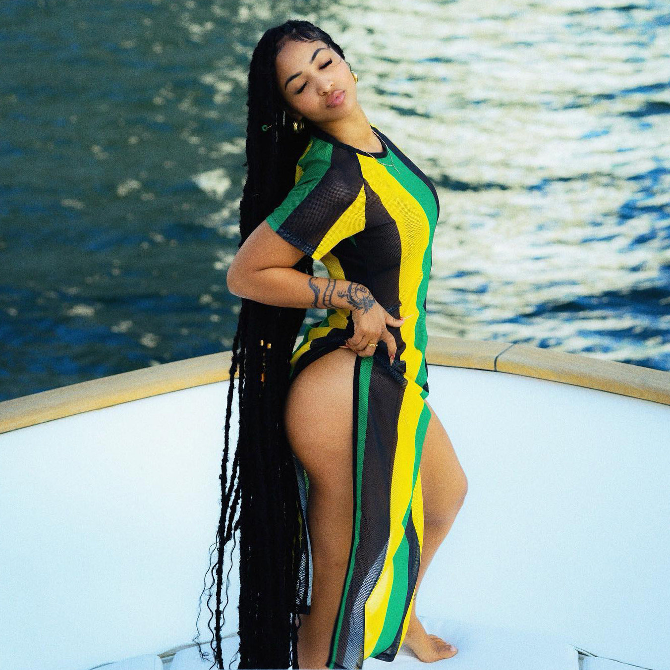 Short Sleeve Stripe Contrast Split Dress (CL11814)