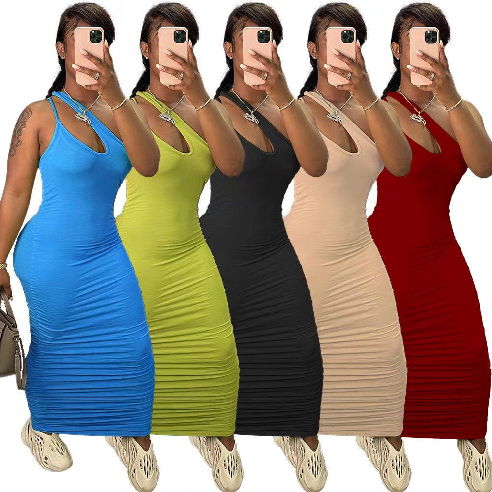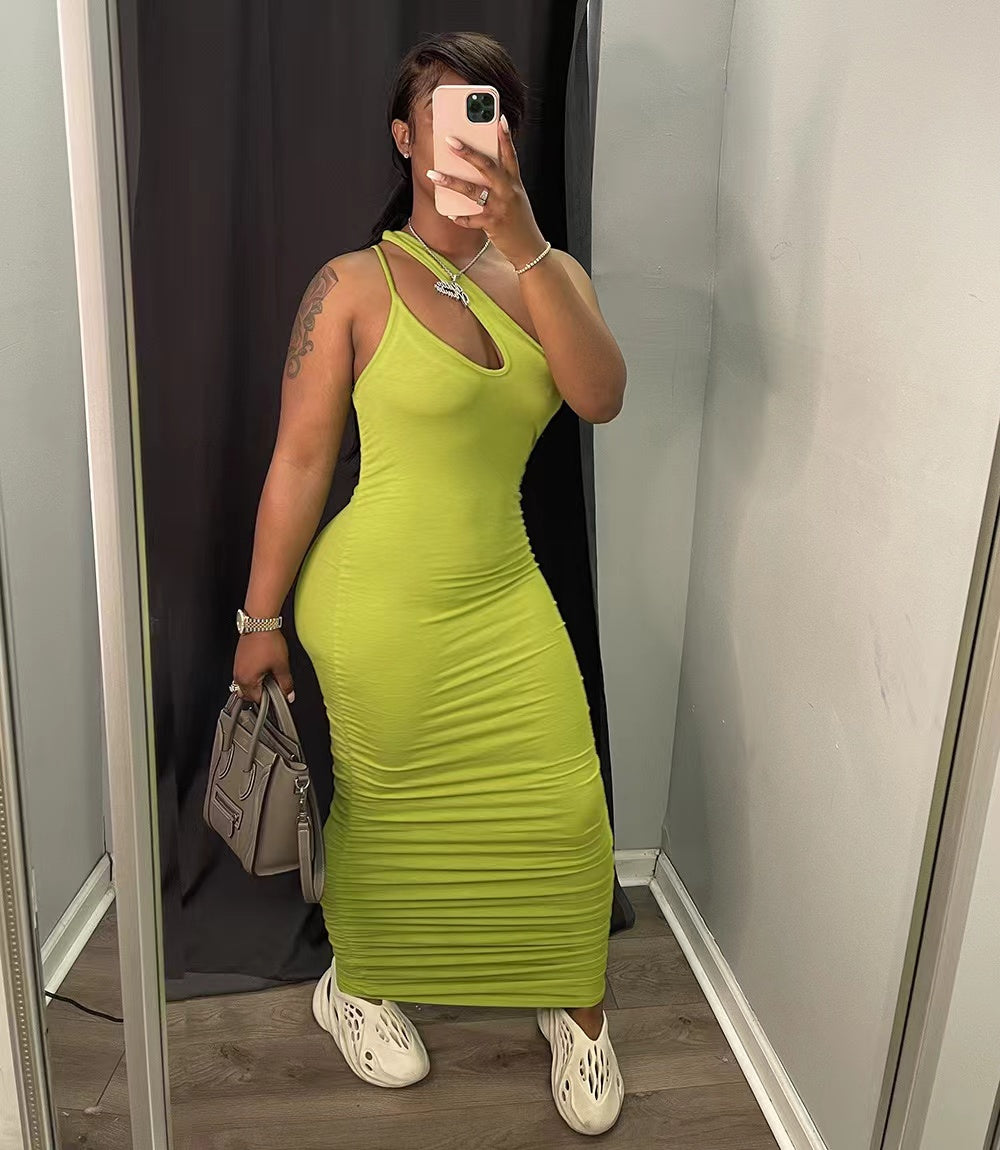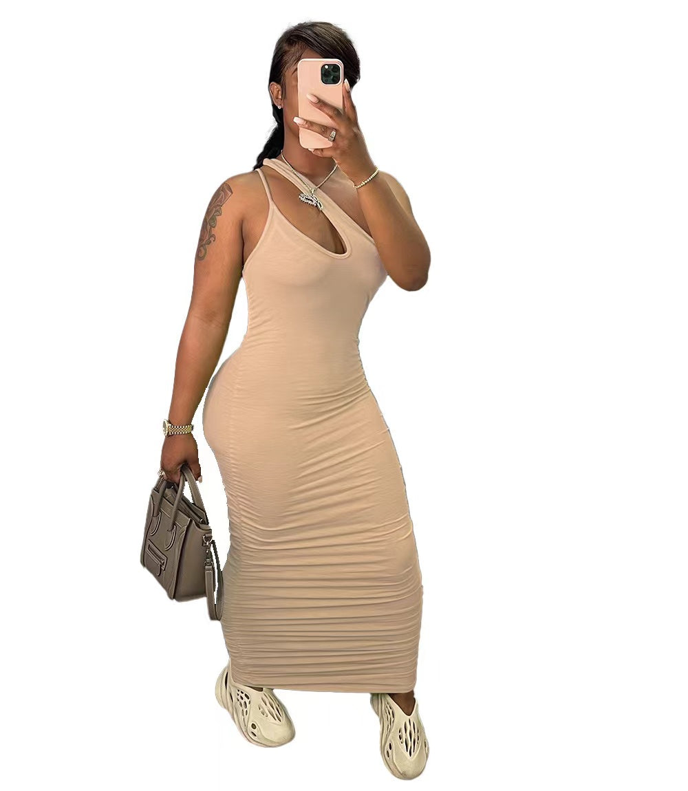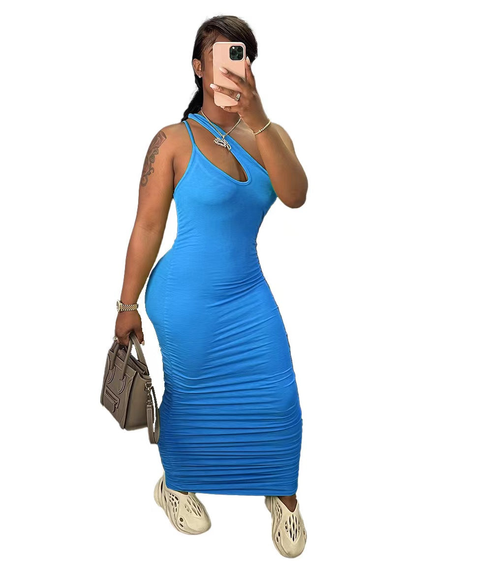 Side pleated with thin and wide shoulder straps dress(CL12220)