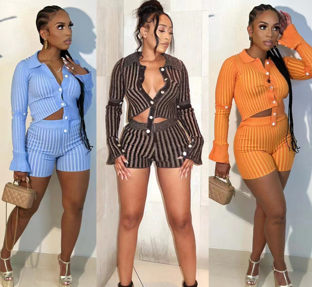 Single-Breasted Design Striped Wool Knitting Suit Two-Piece Set(CL11686)