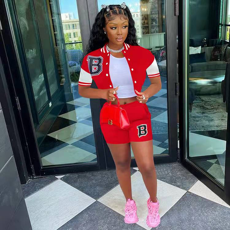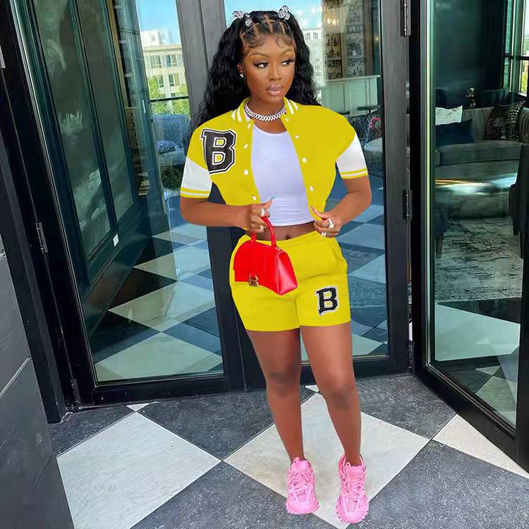 Single-Breasted Stitching Short-Sleeved Baseball Uniform 2PC(CL10025)