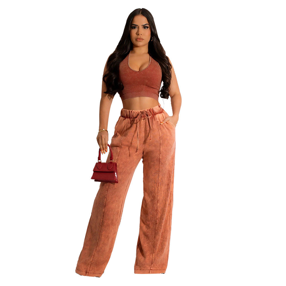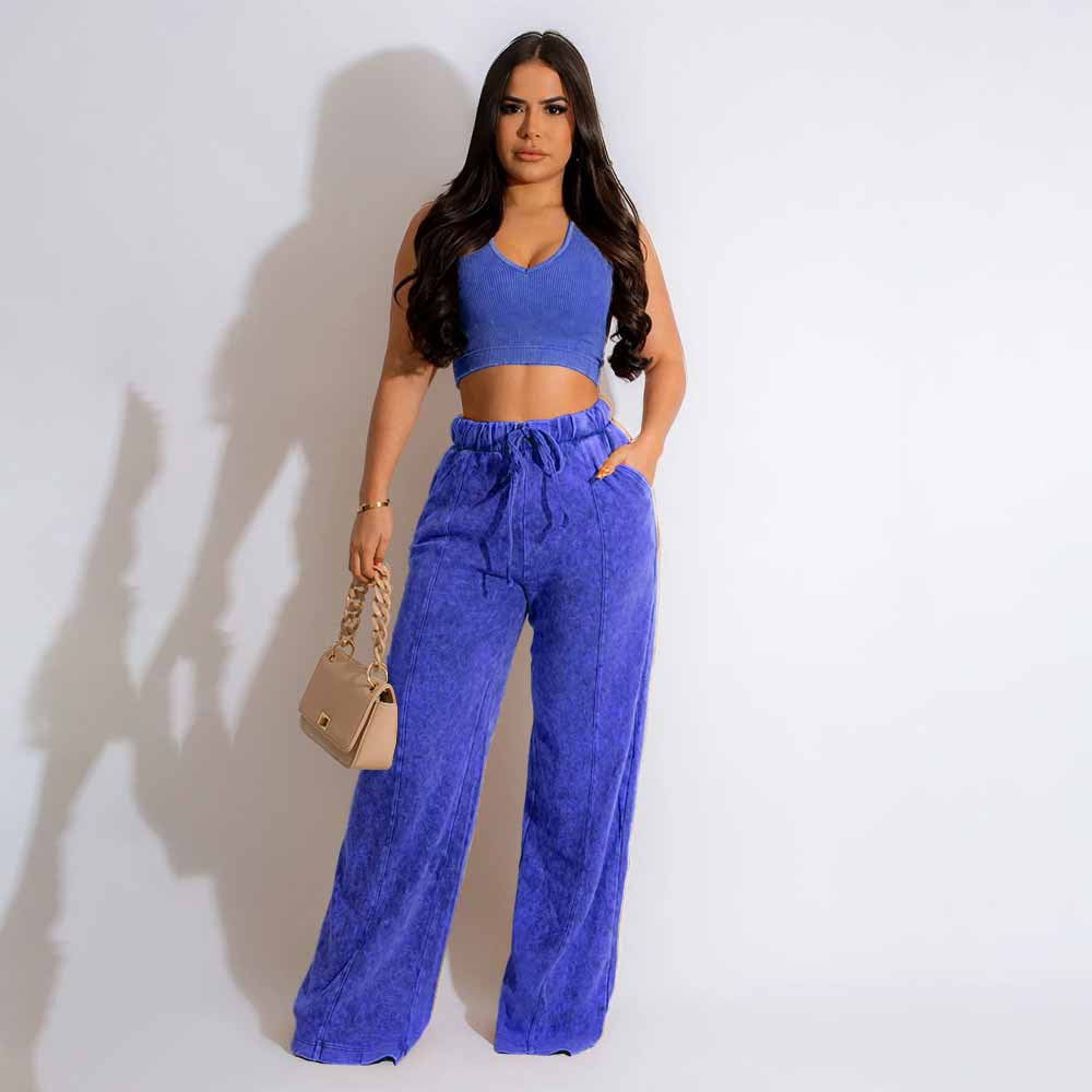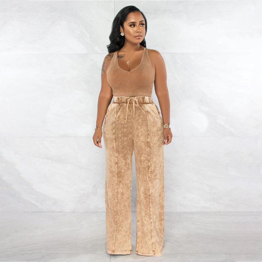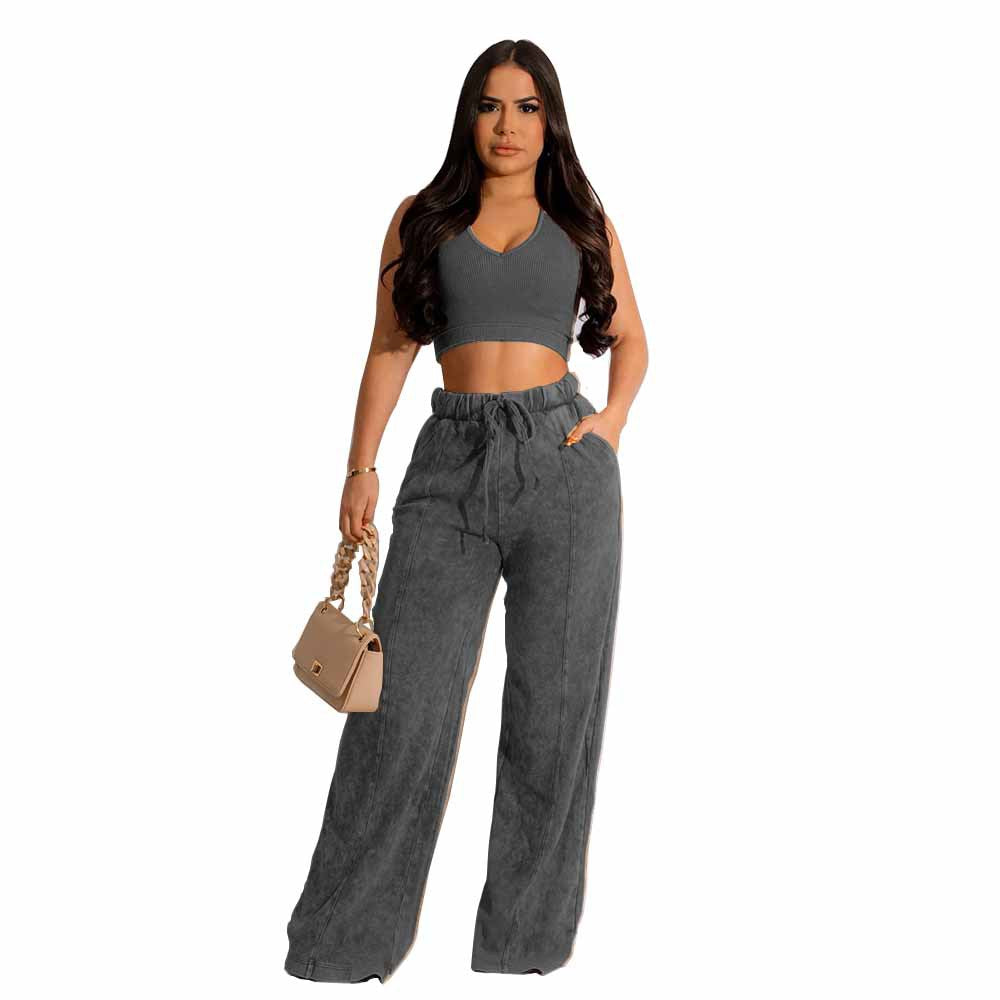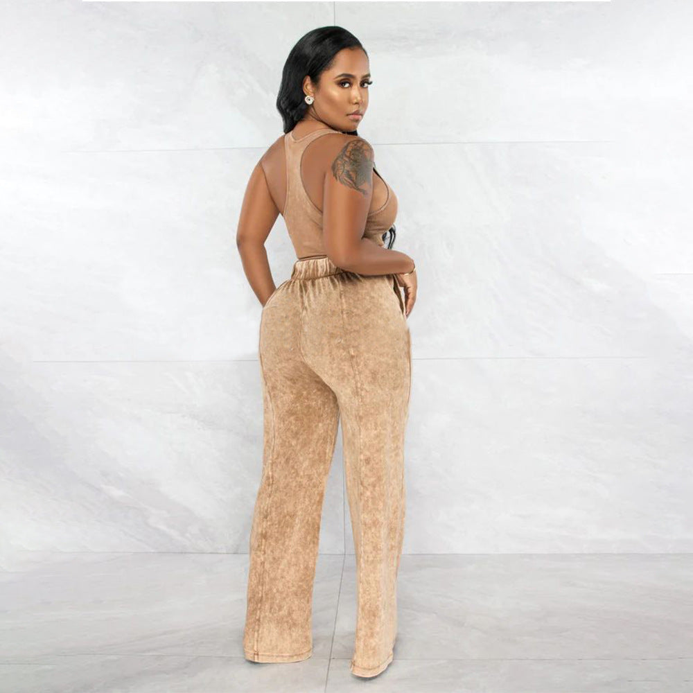 Sleeveless Open Waist Jacket Elastic Waist Wide-leg Pants Suit (CL11548)