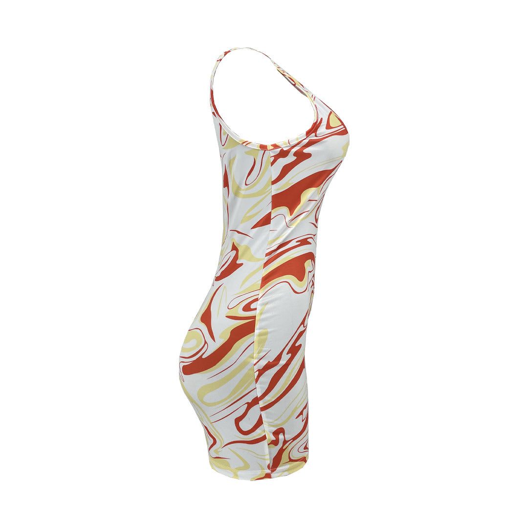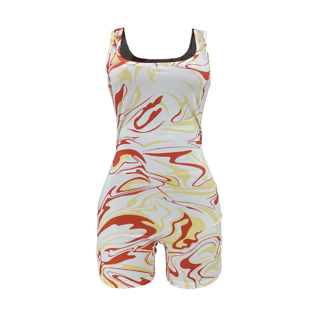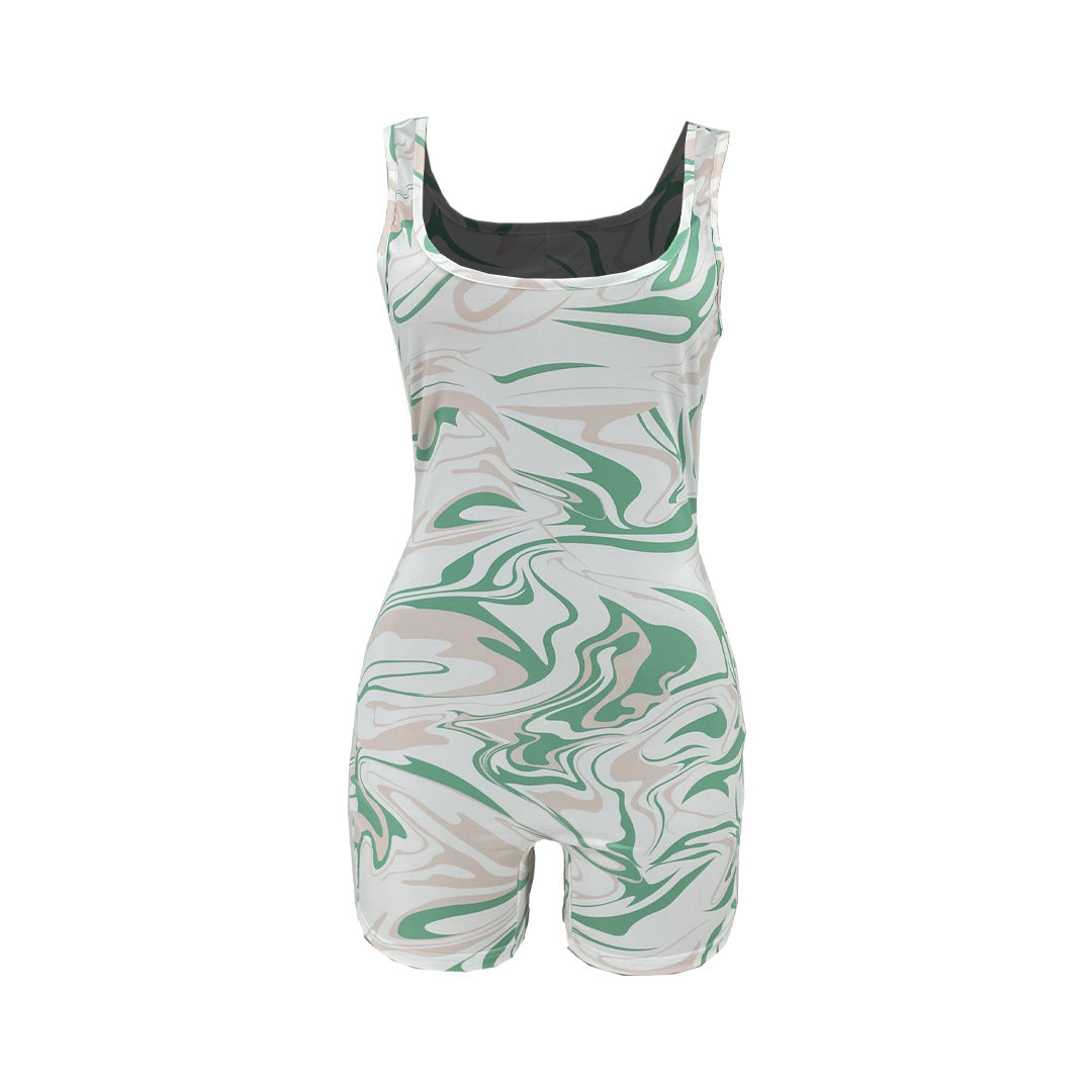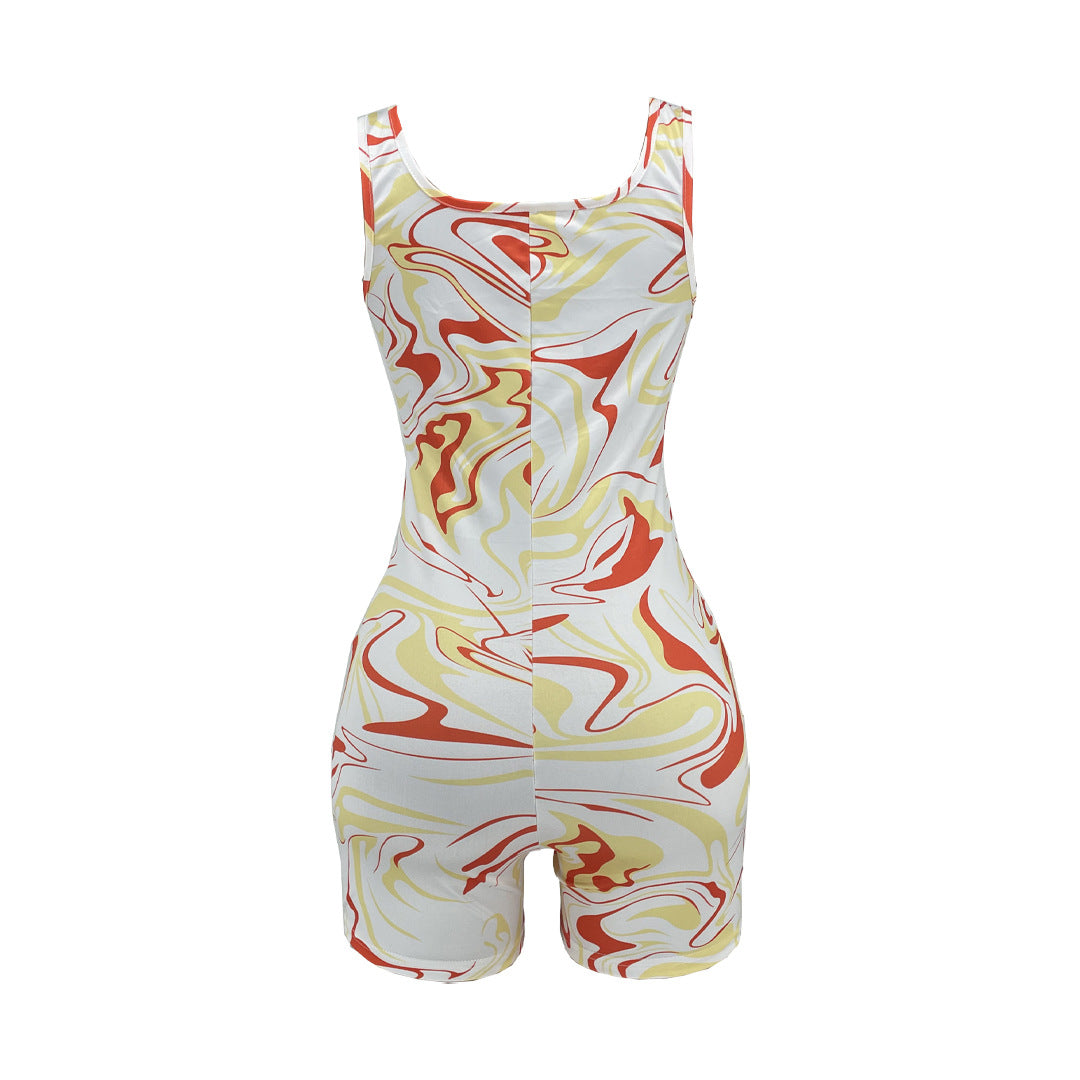 Sleeveless Vortex Print Slim-Fitting Biker Jumpsuit(CL11533)