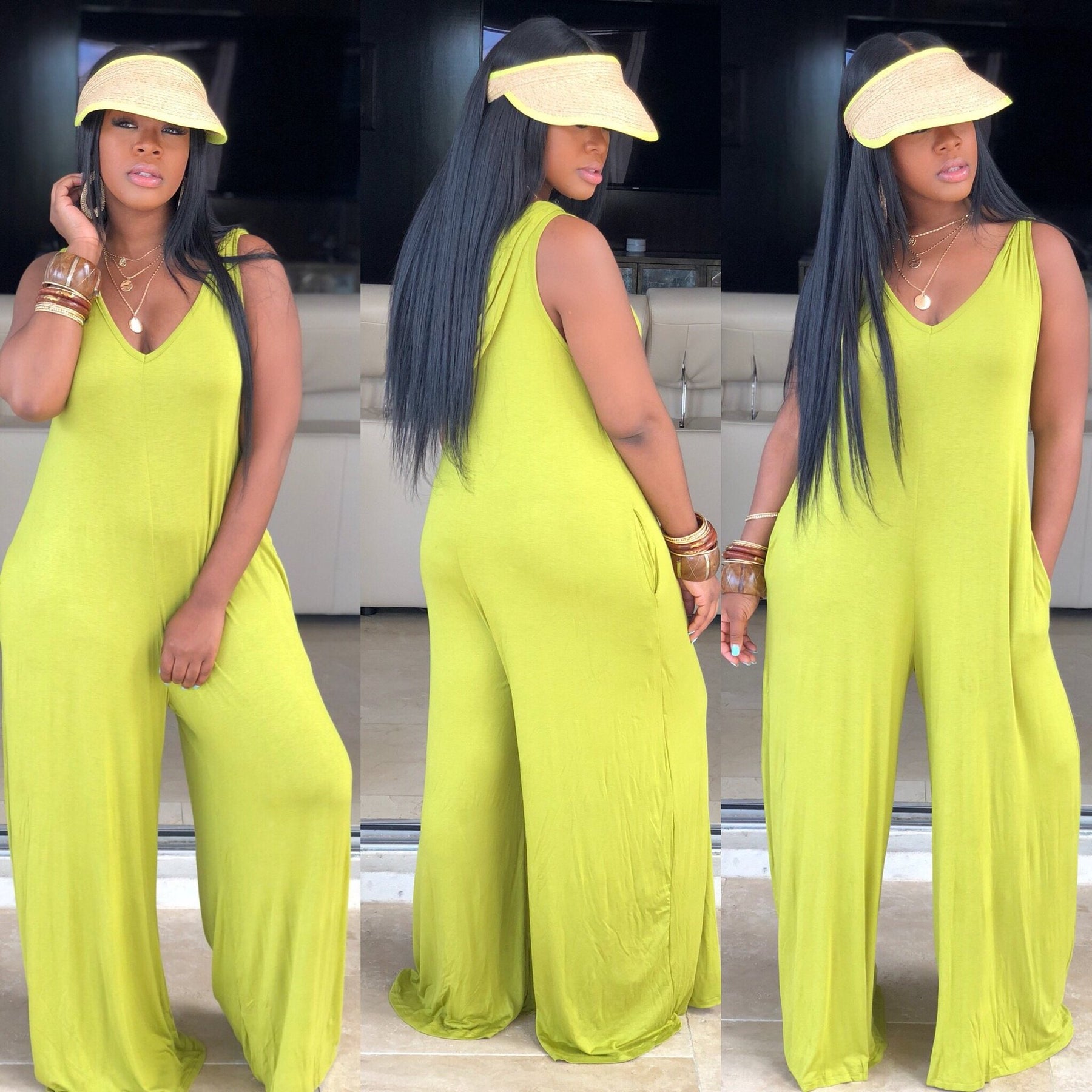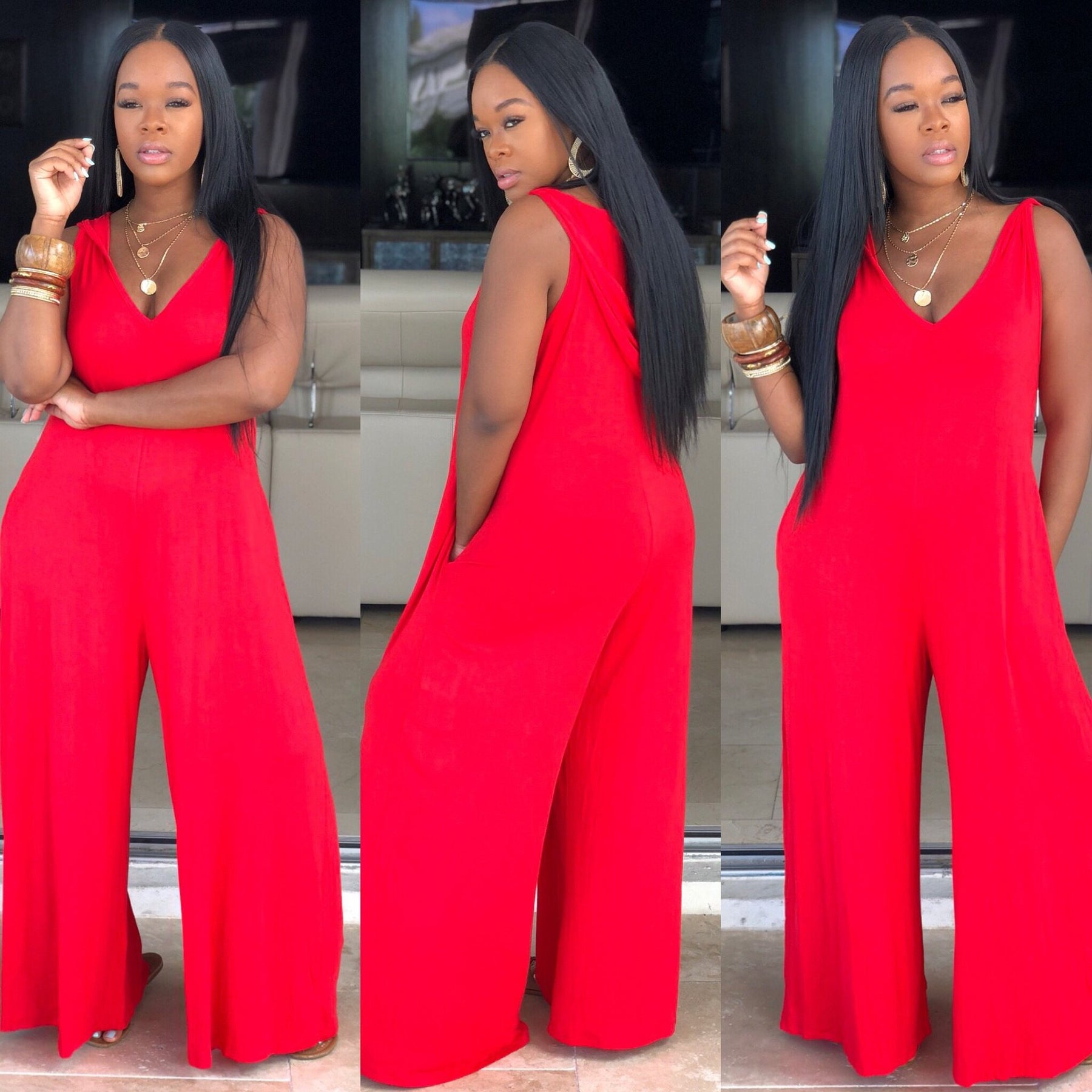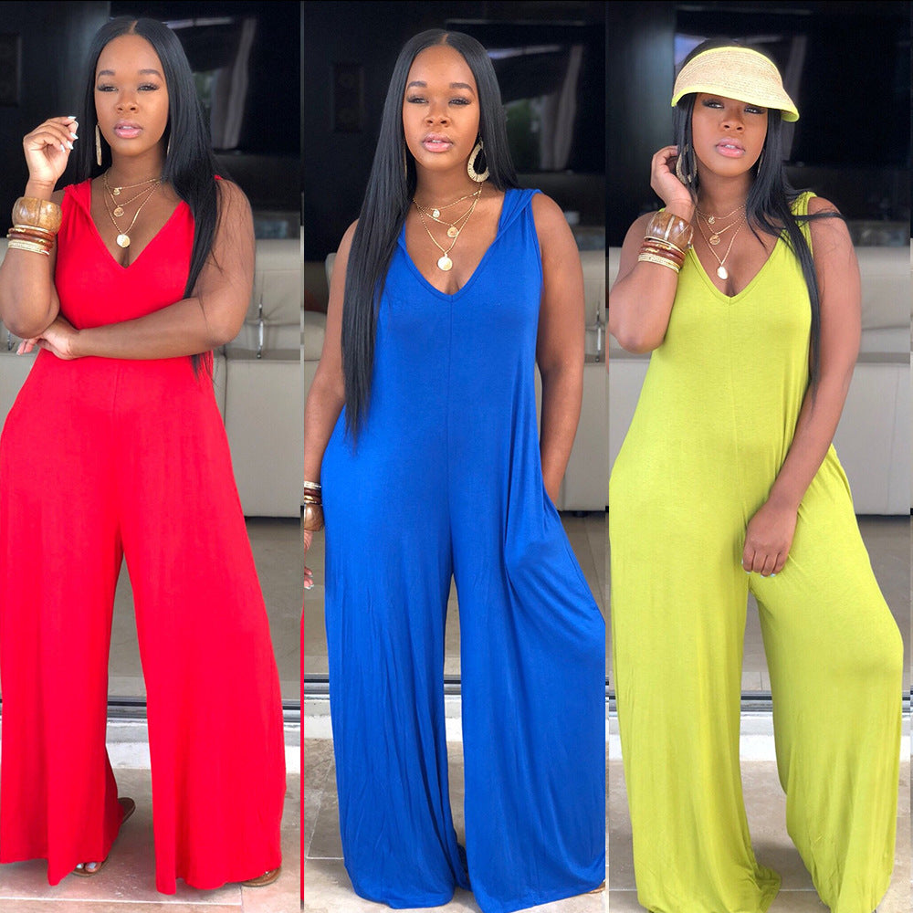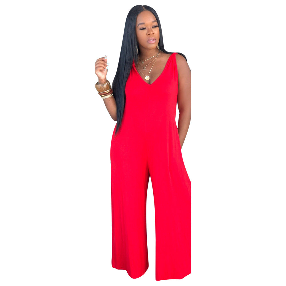 Solid Color and V-neck Suspender Jumpsuit (Cl10596)