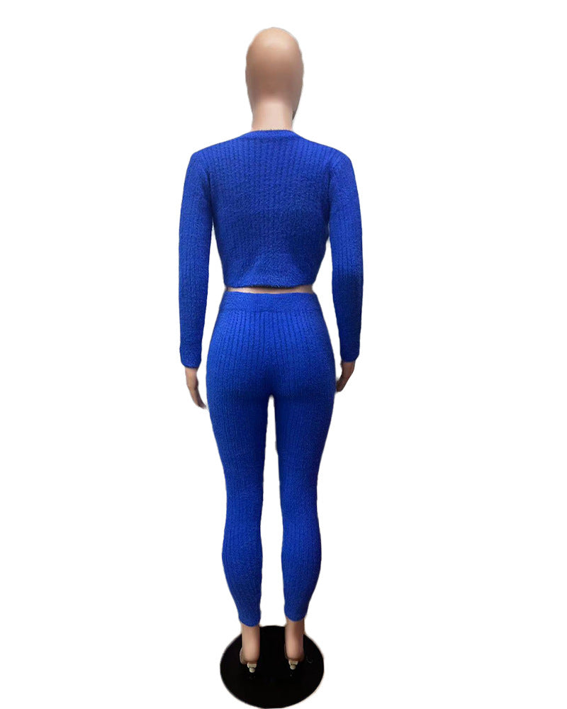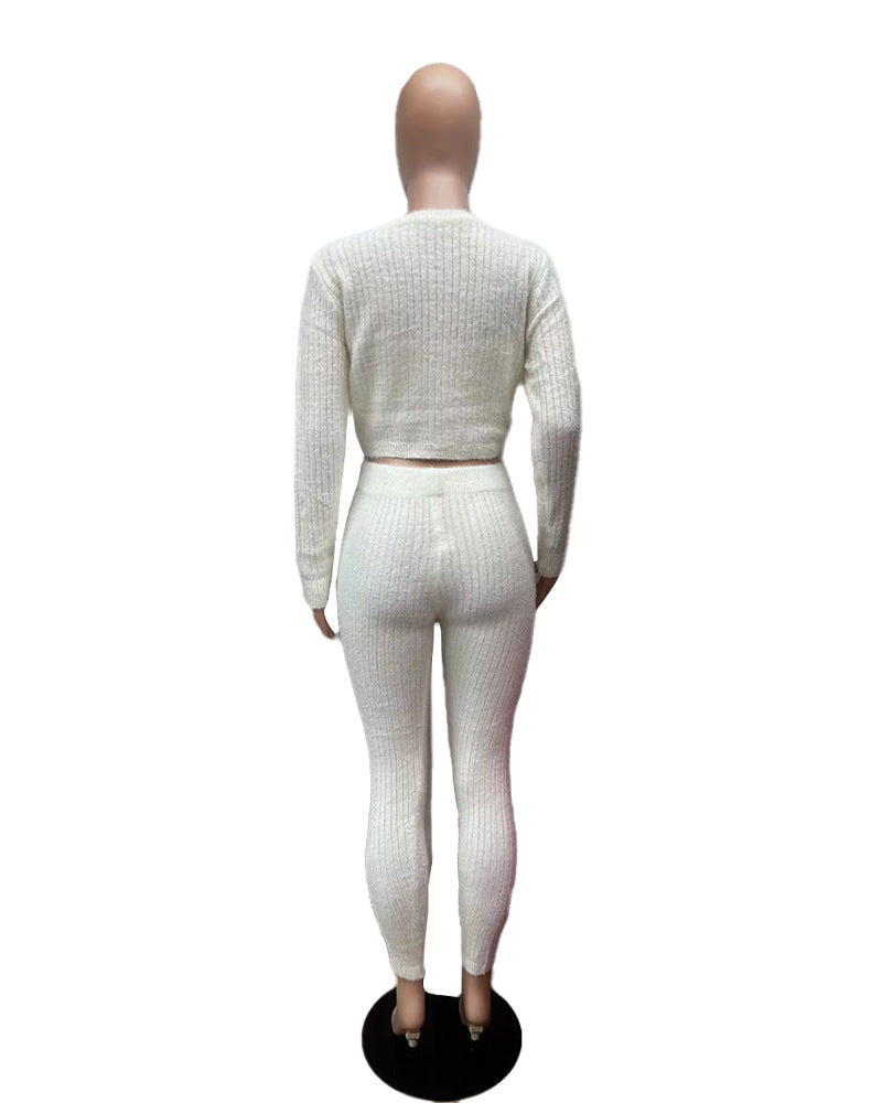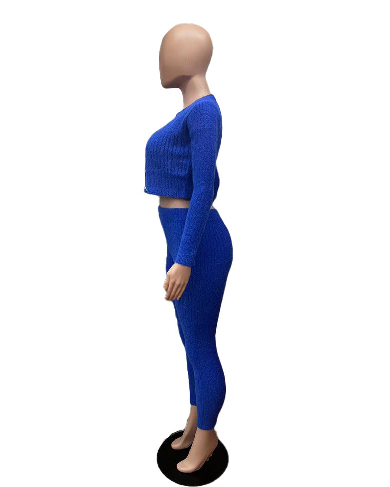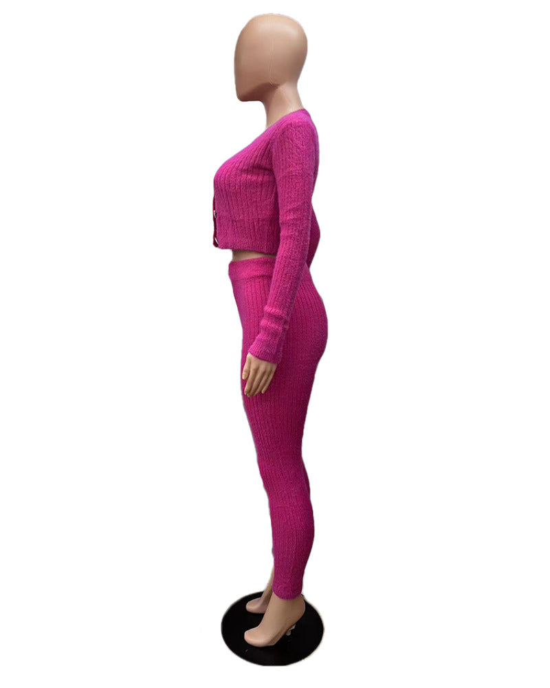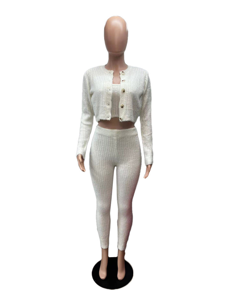 Solid Color Knitted Sweater Sexy Slim-Fit Cardigan 3PC Set (CL11887)