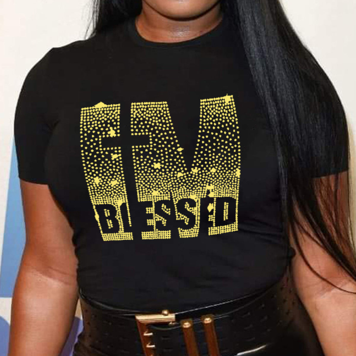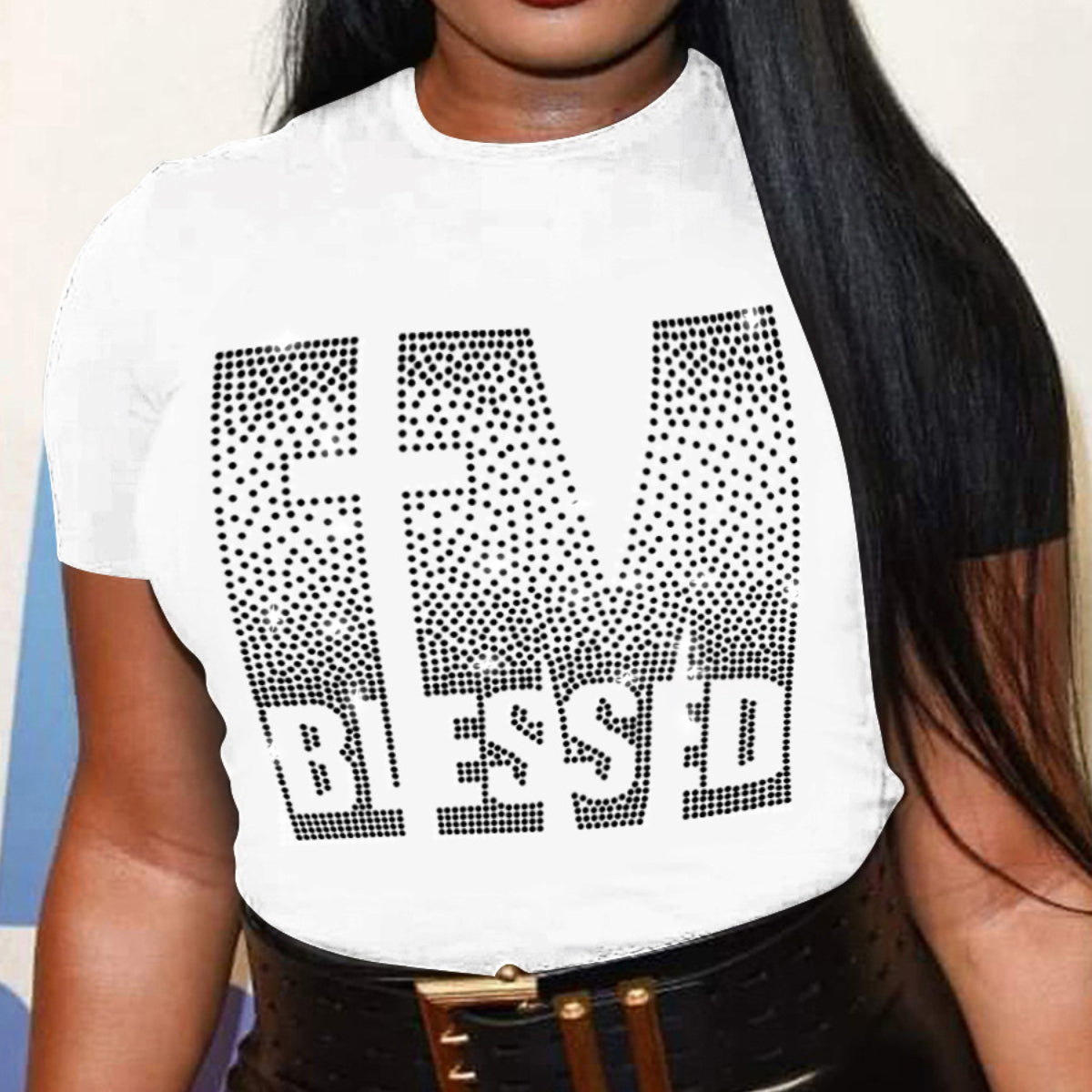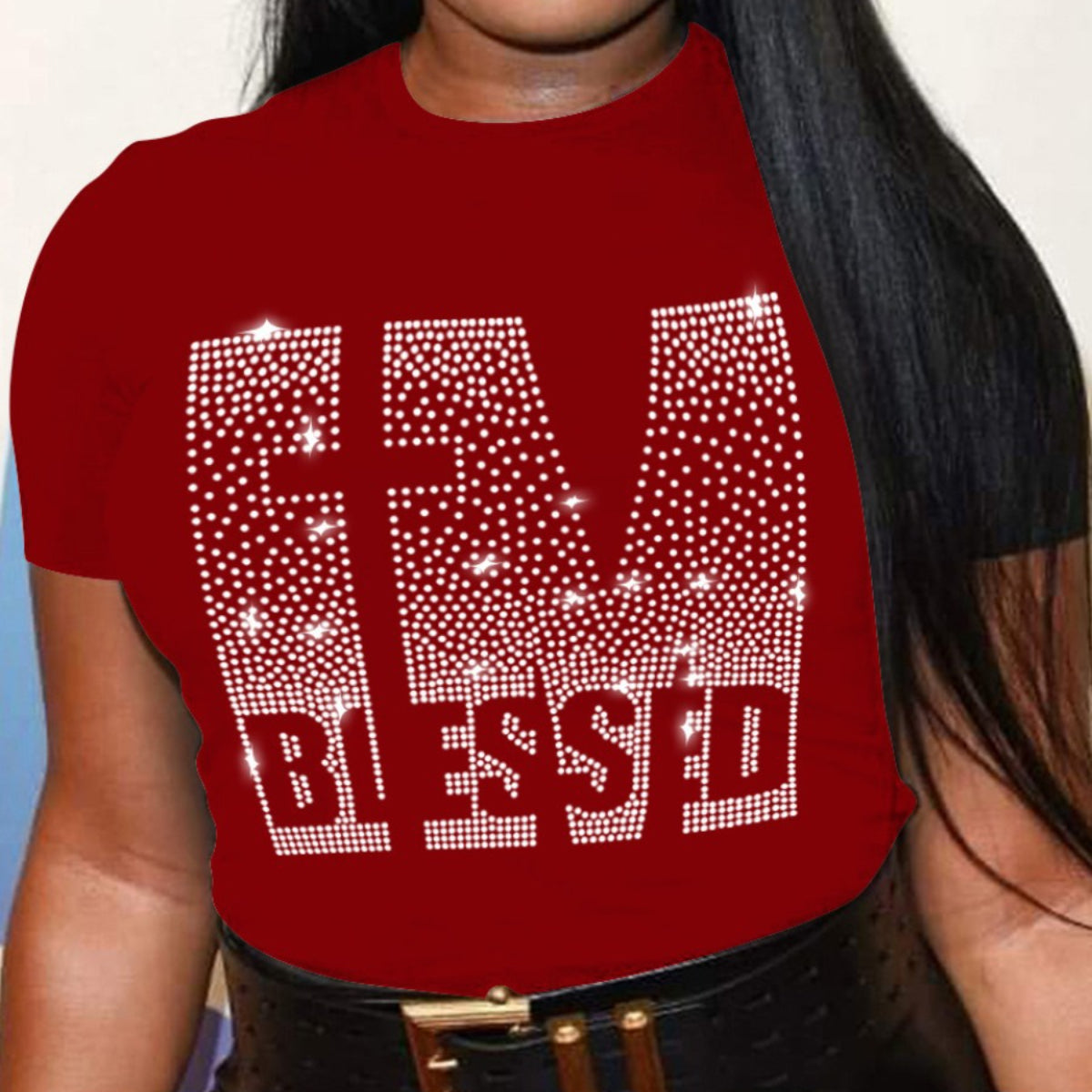 Solid Color Letter Rhinestone round Neck Top (CL10432)