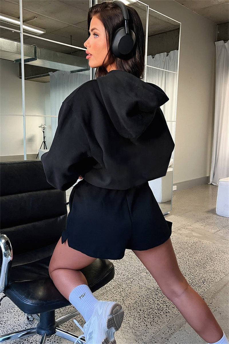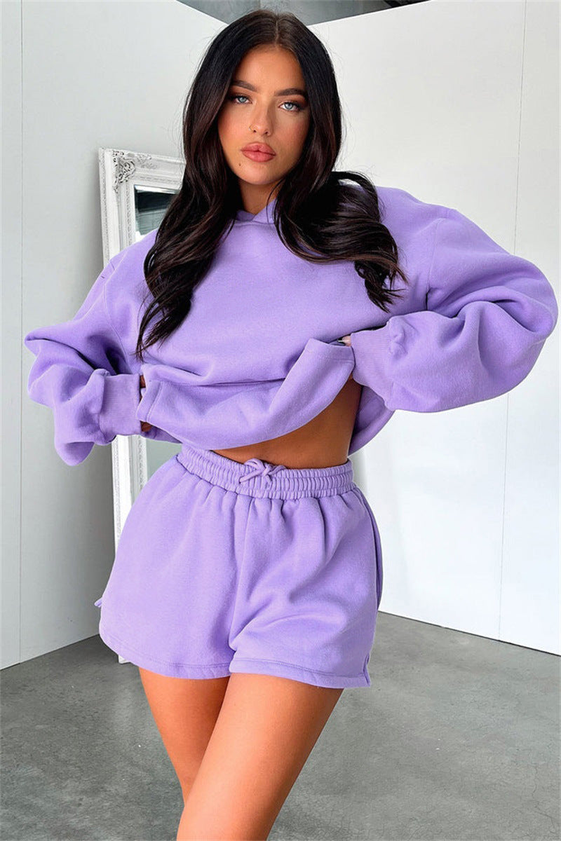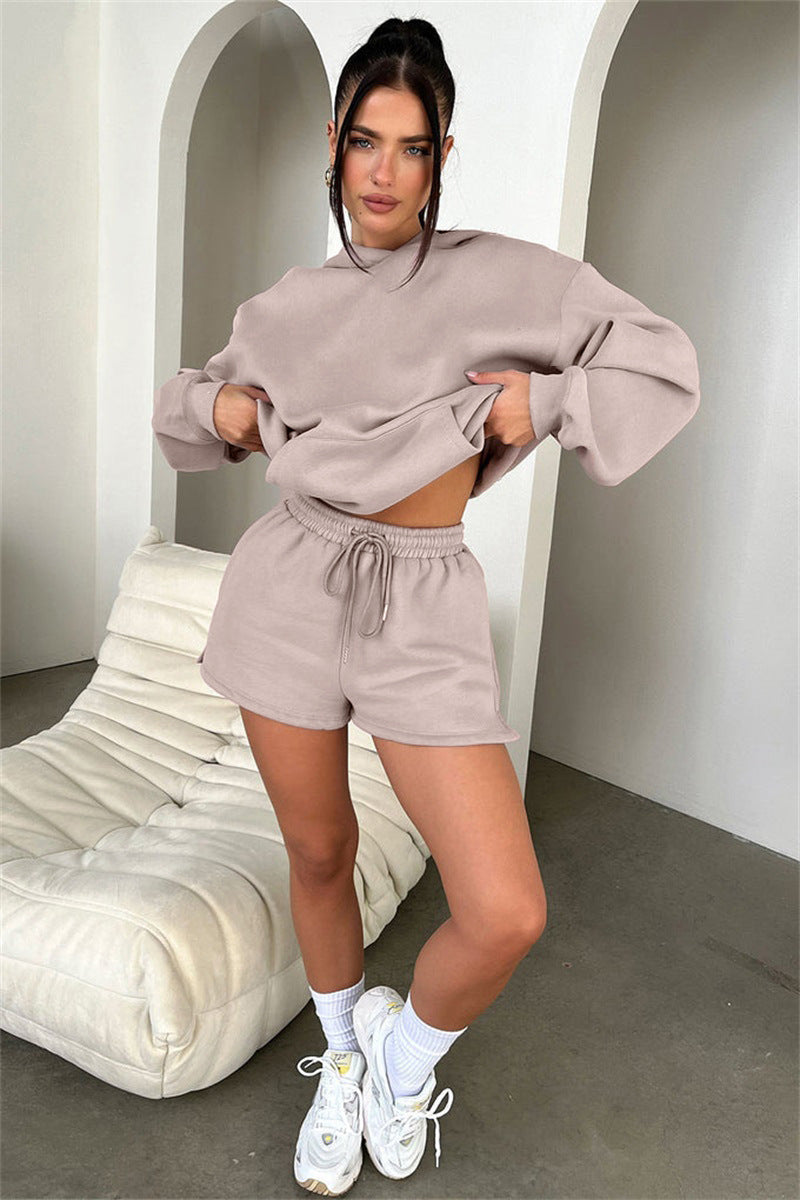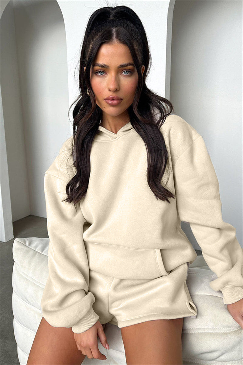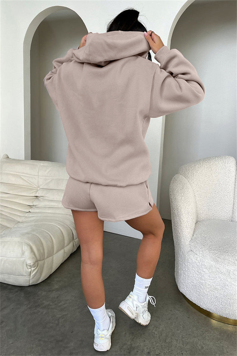 Solid Color Long Sleeved Shorts Hoodie Two-piece Set (CL11929)