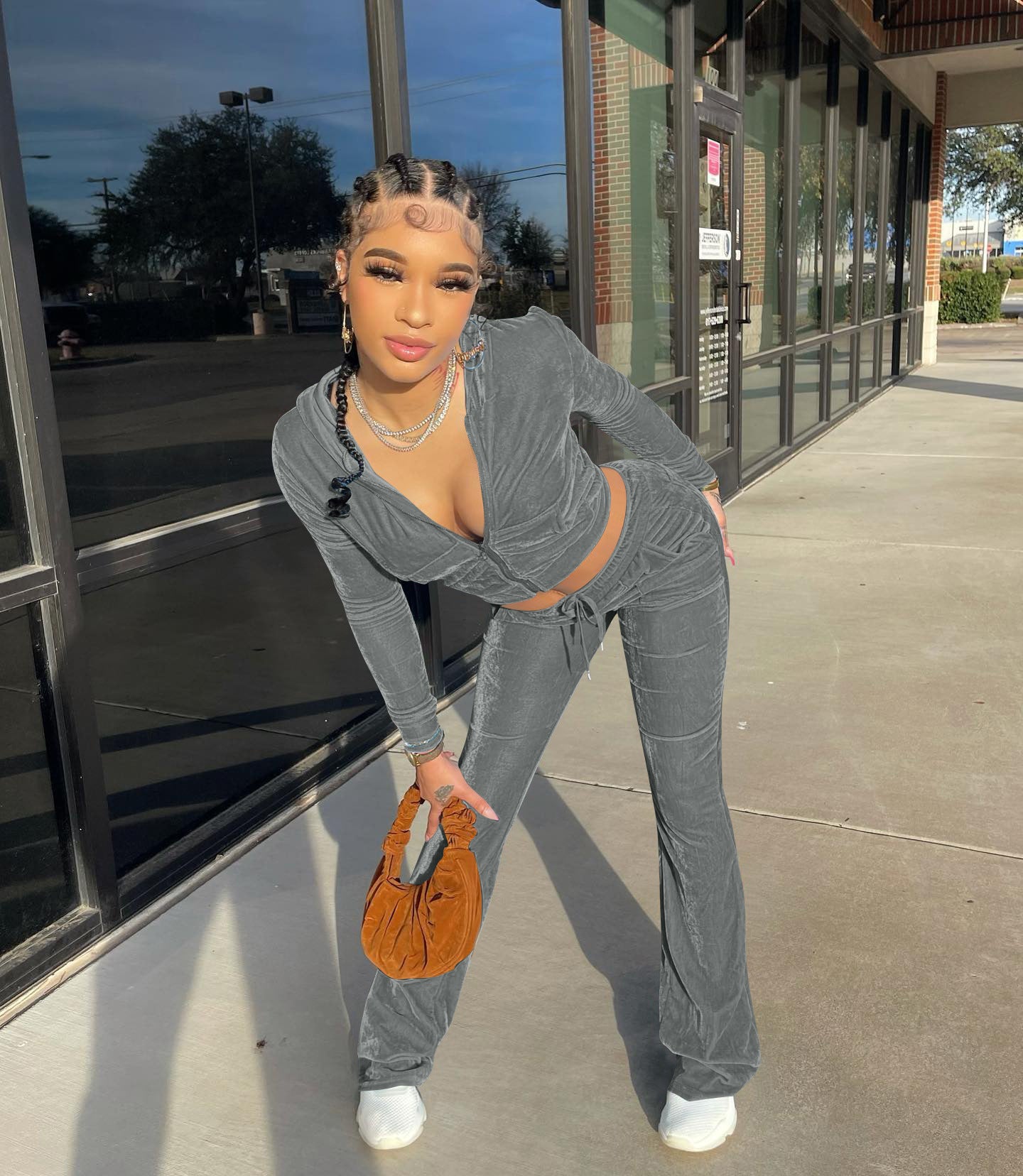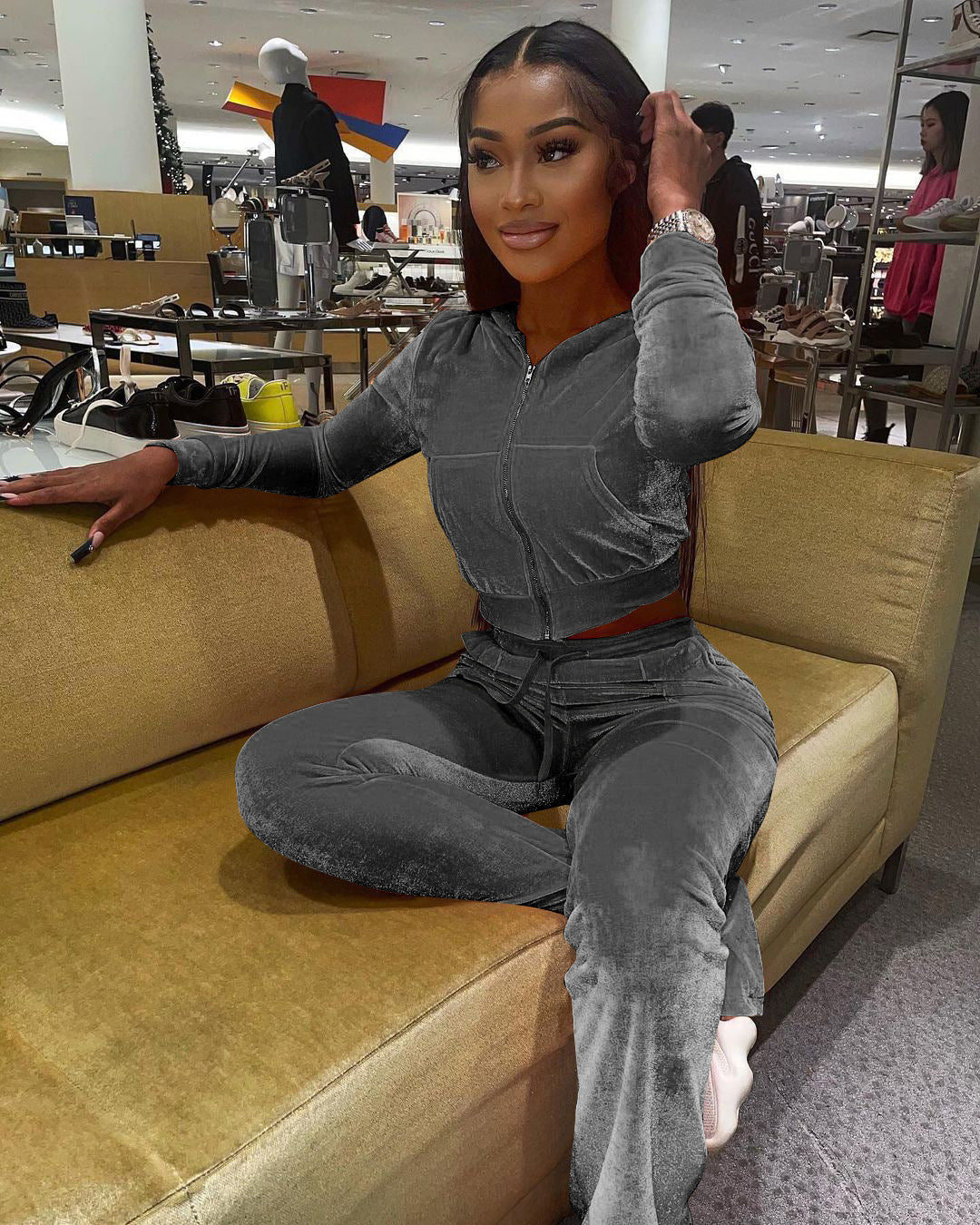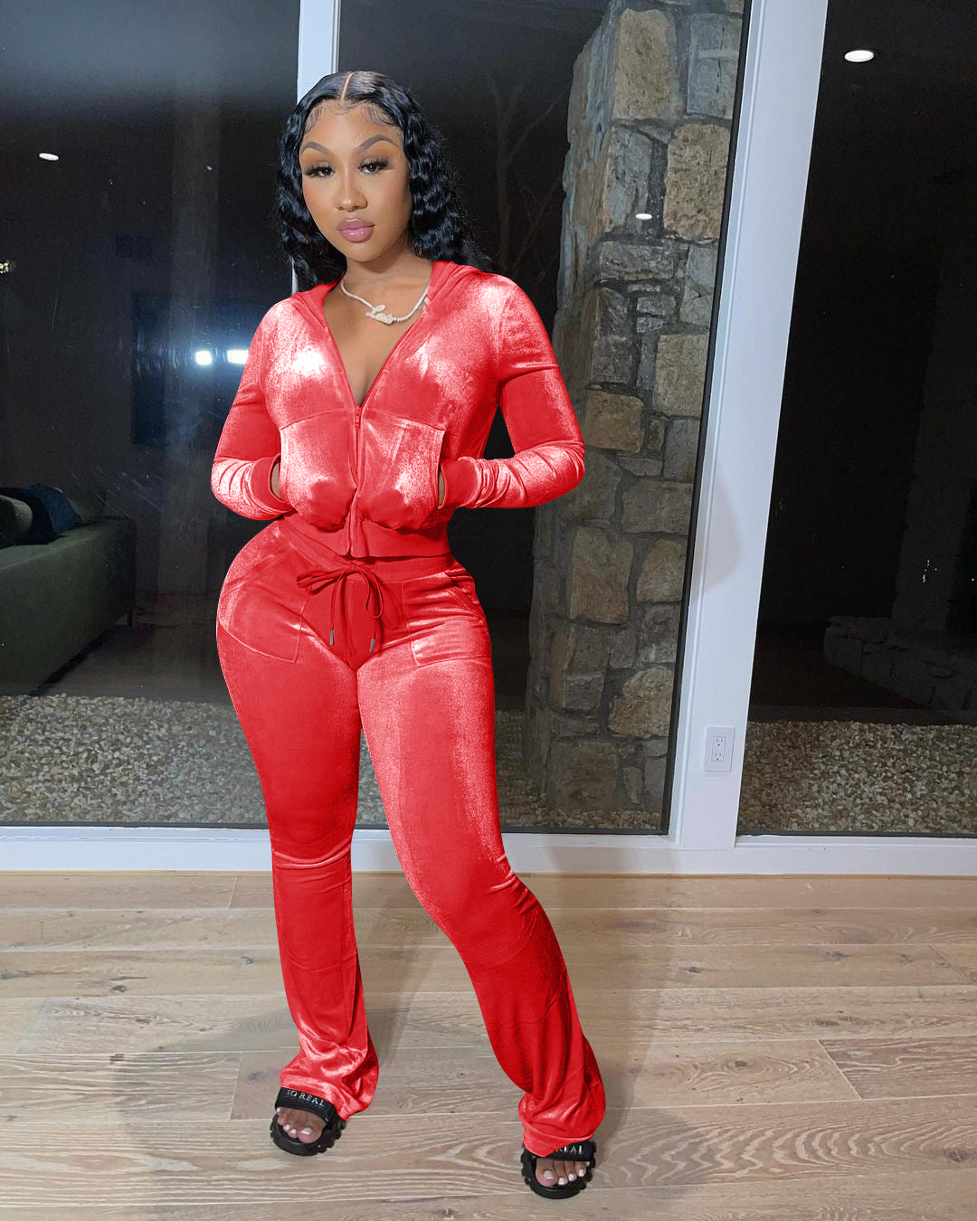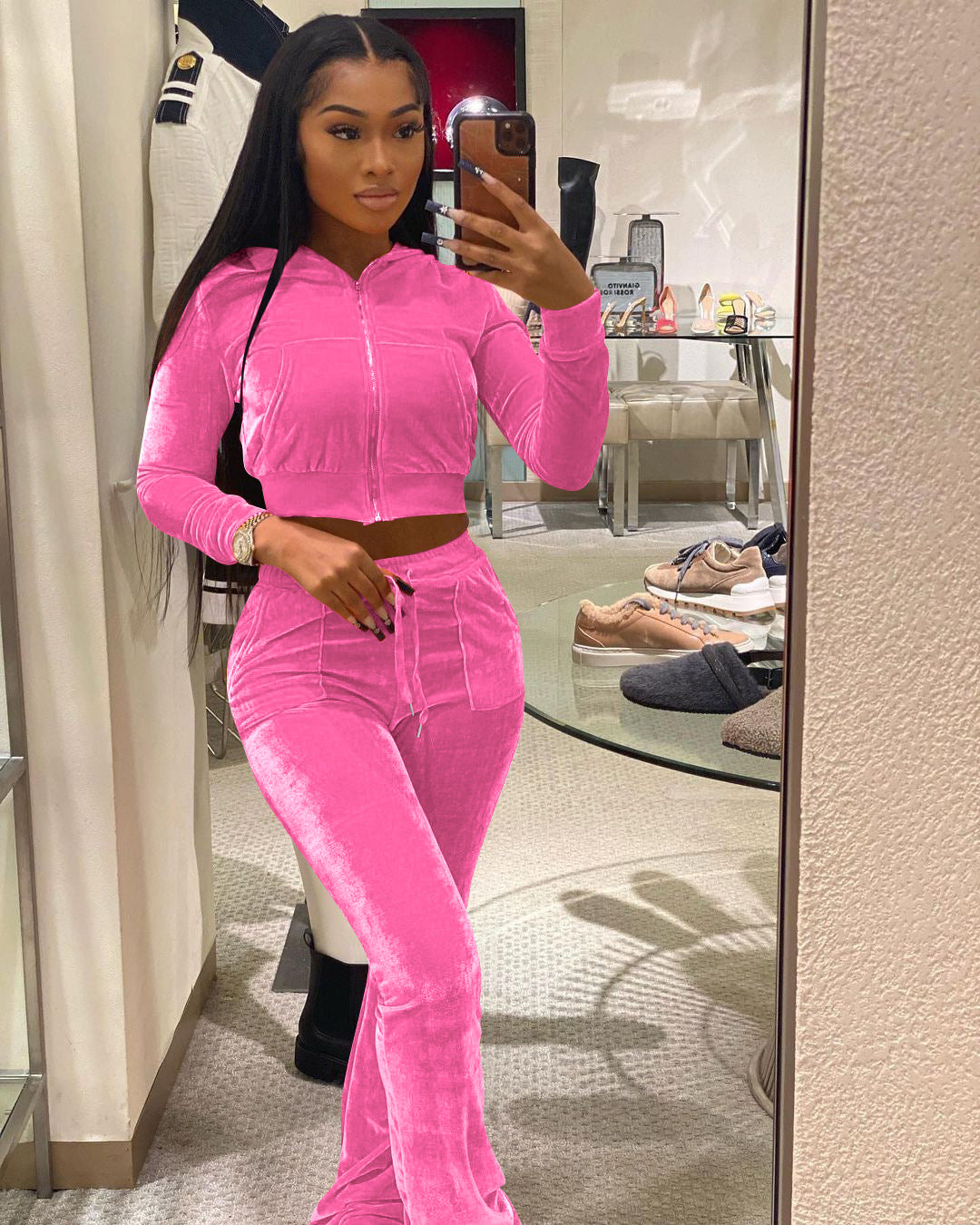 Solid Color Velvet Hat Wide Leg Pants Two-piece Set (CL10987)
