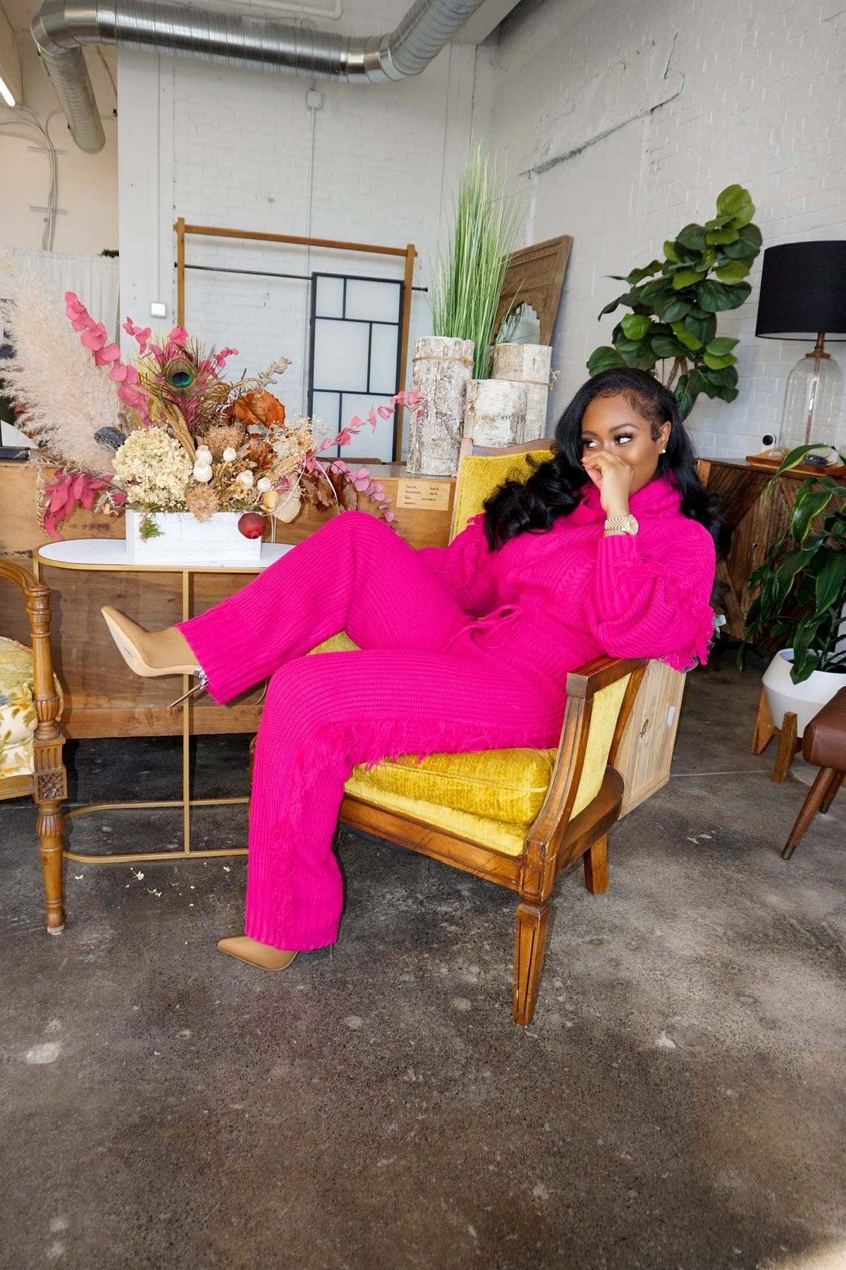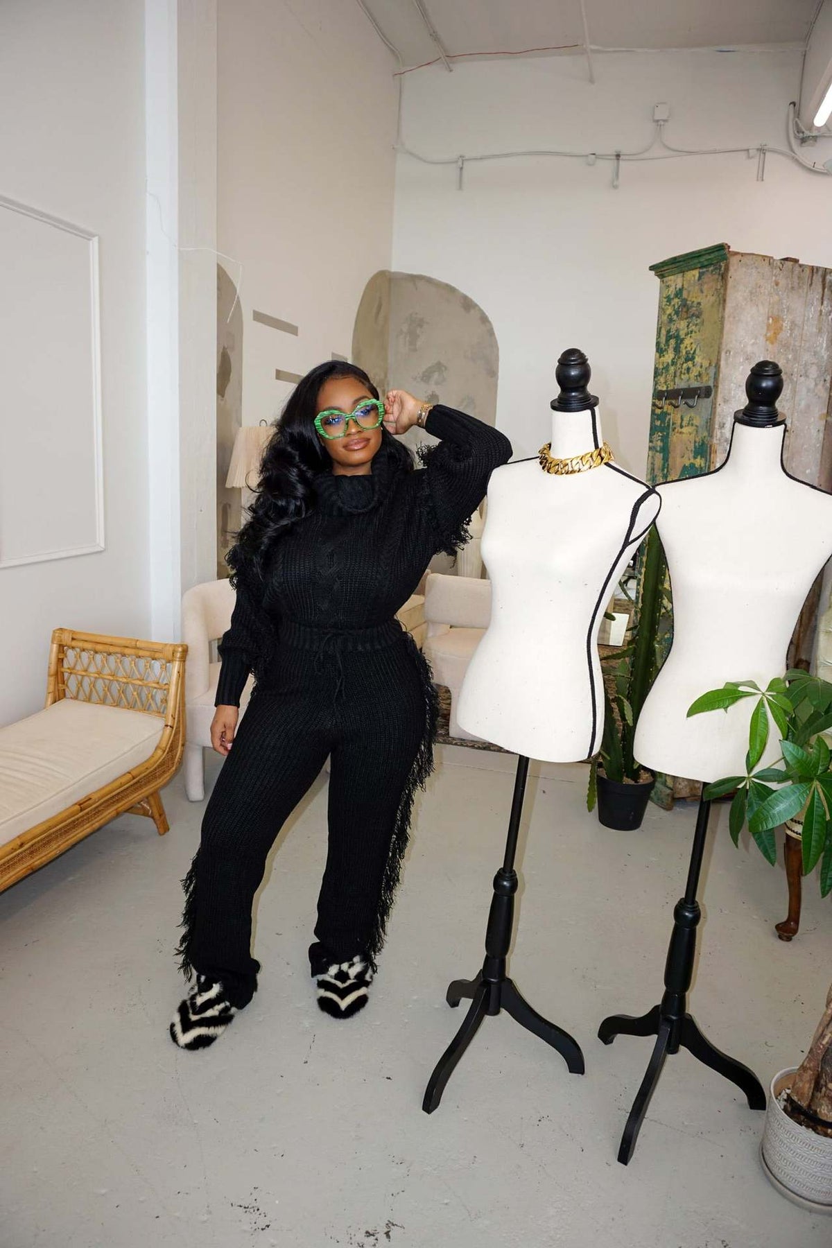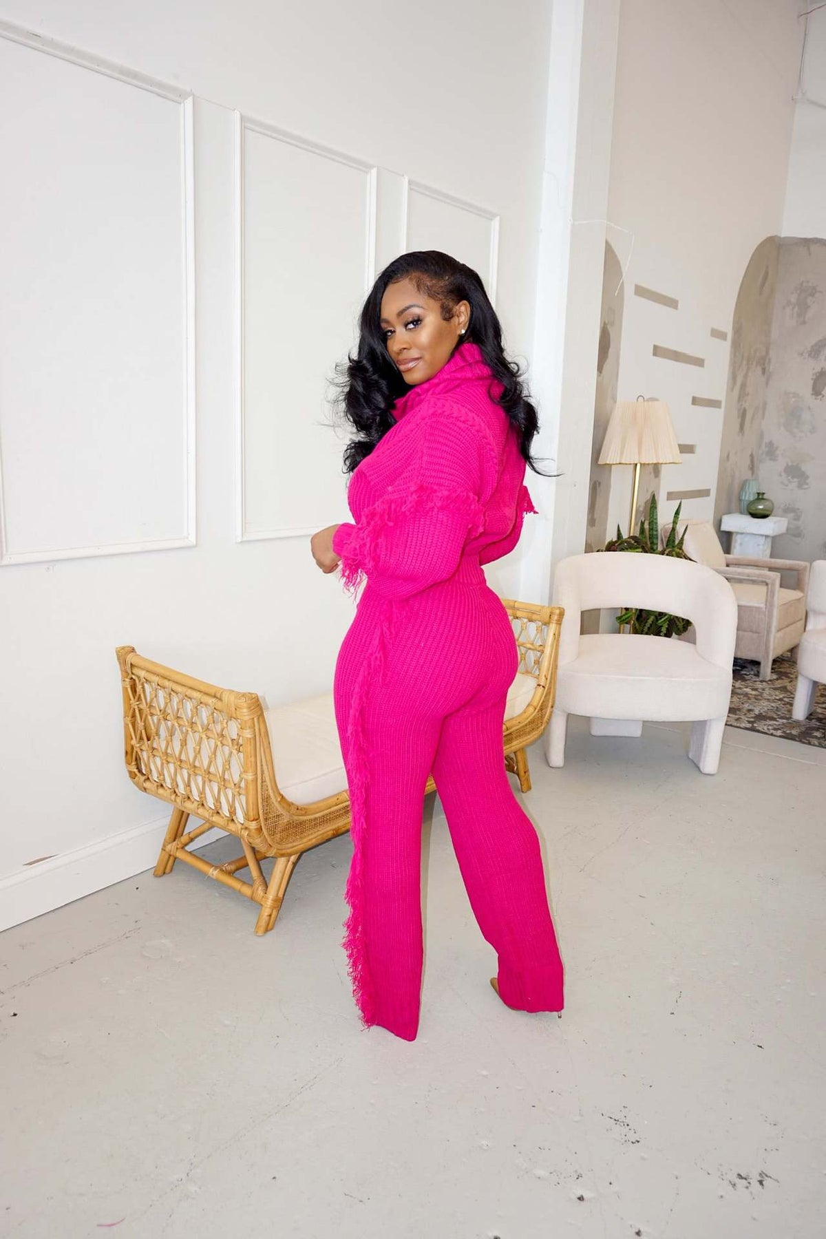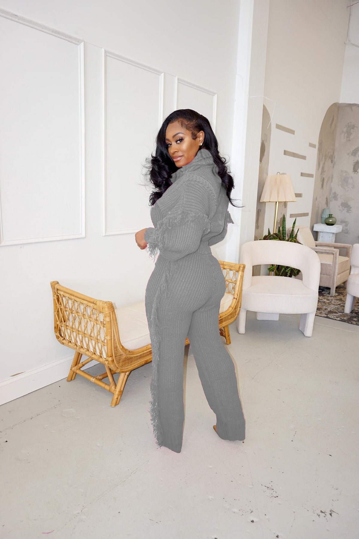 Solid Knitted Long Sleeve High Neck Tassel Set (CL11982)