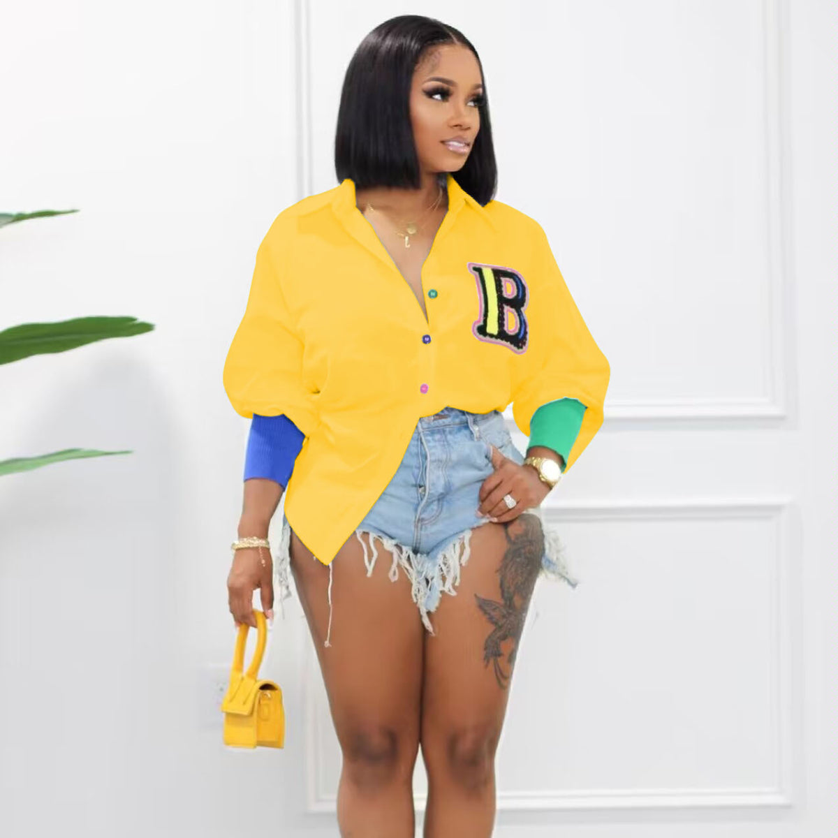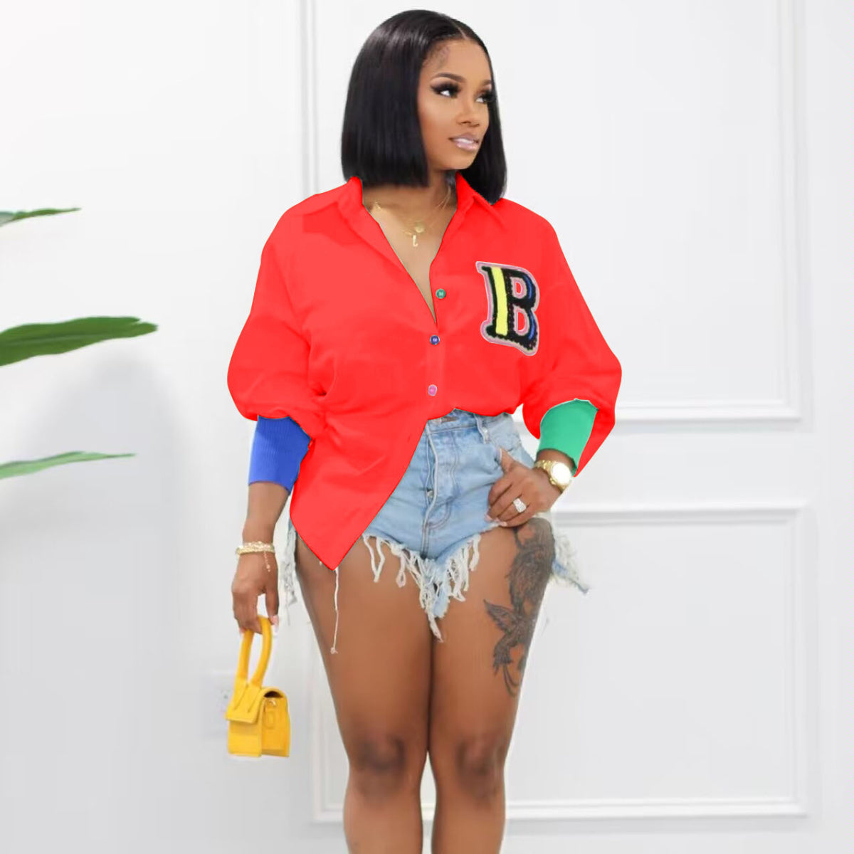 Splicing Embroidery Applique Shirt Longer in the Rear(CL10810)