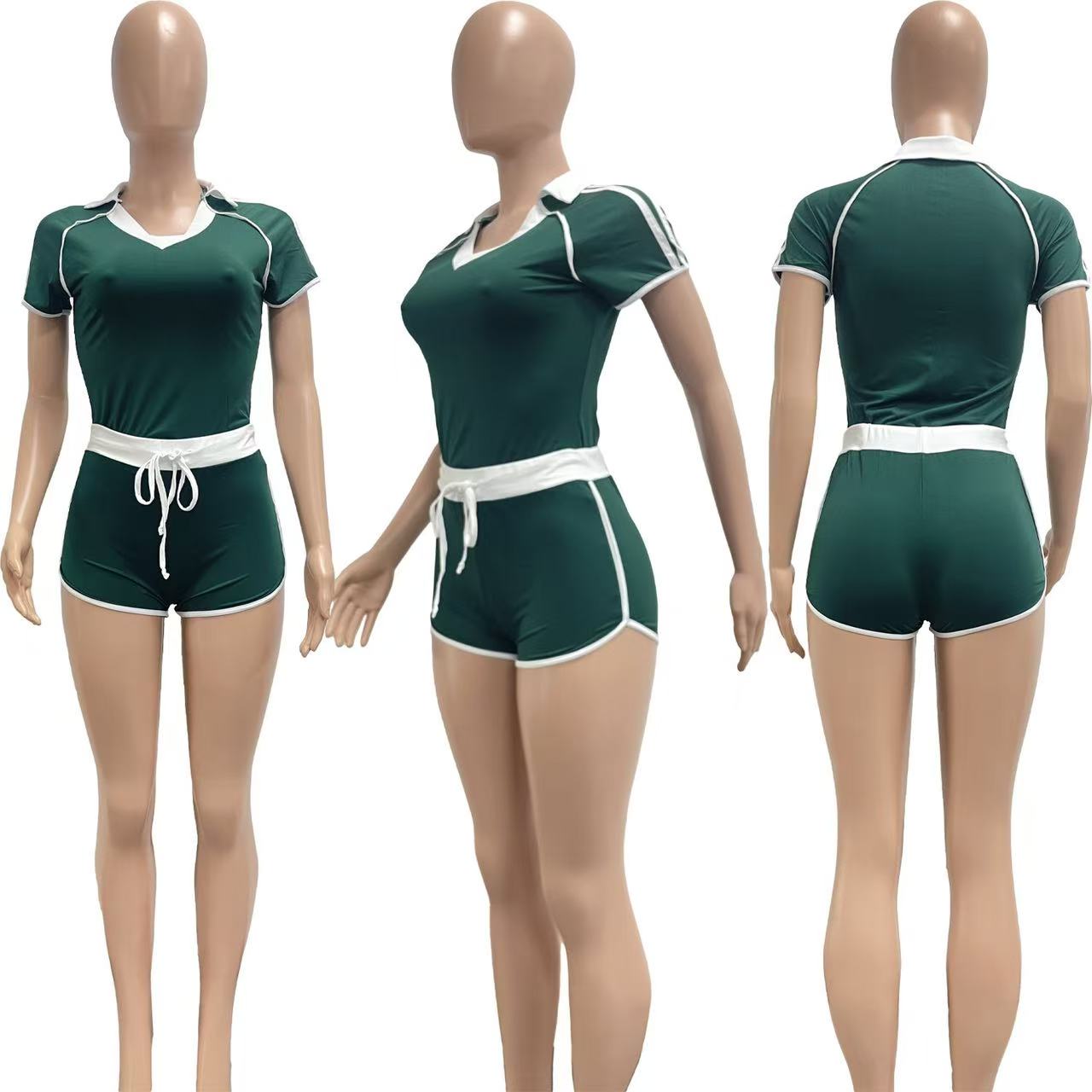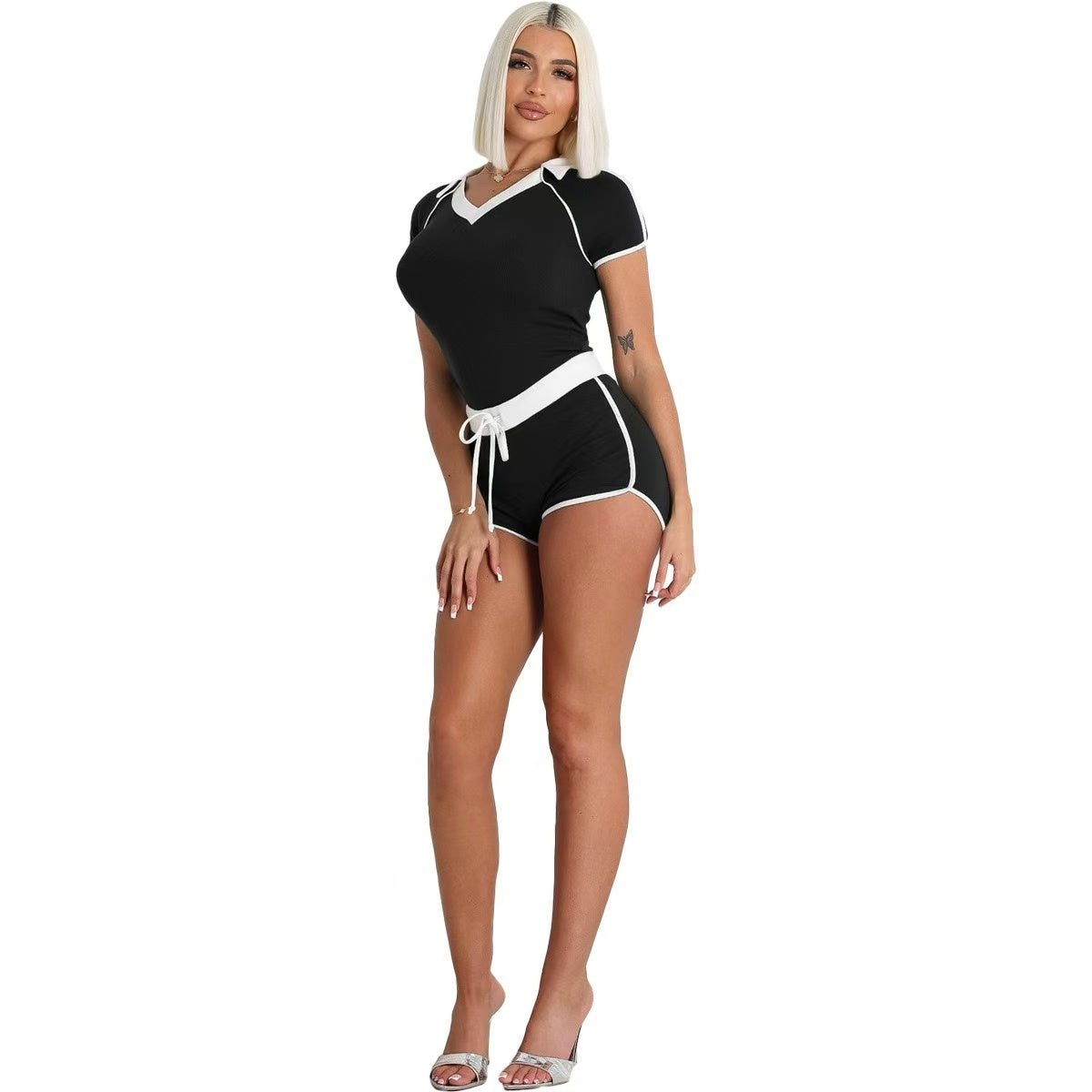 Sports high-elastic yoga fabric layering V-neck 2pc set(CL12354)