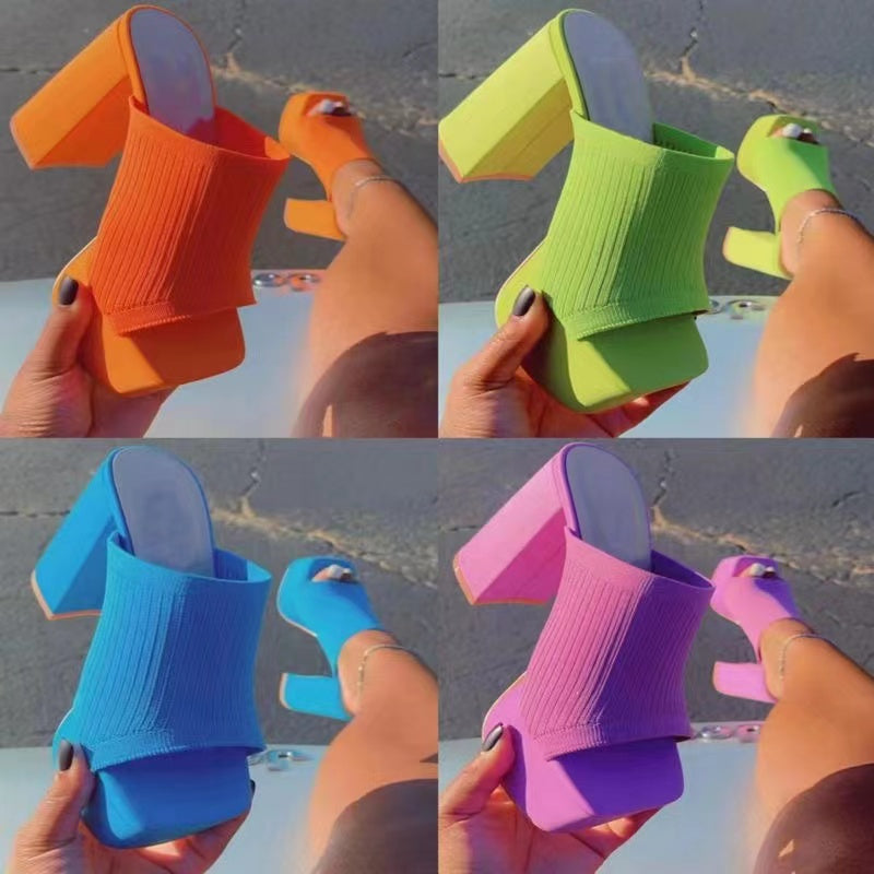 Square-headed thick high-heeled knitted elastic sandals(SL8451)