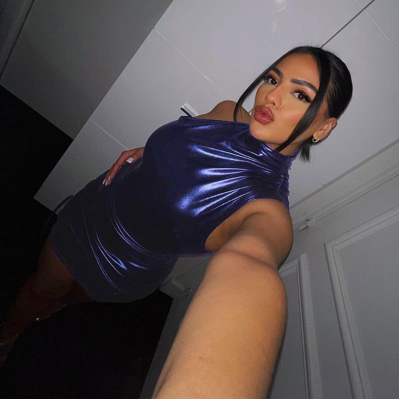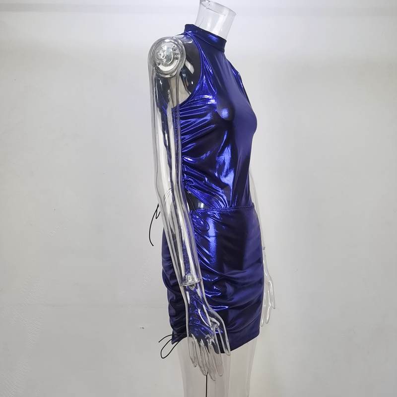 Standing Collar Sleeveless Metal Drawstring One Piece Dress Set (CL11558)