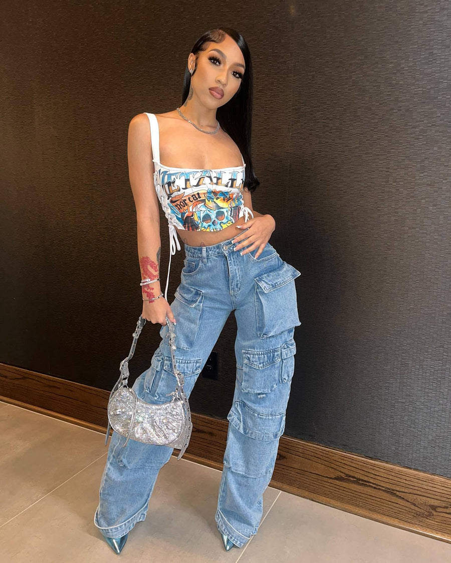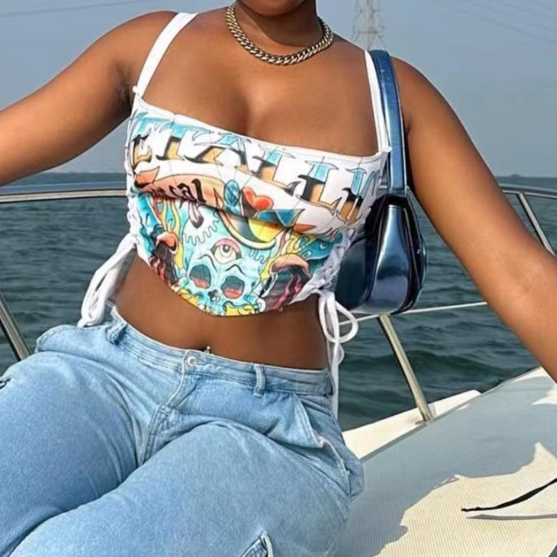 Strap Printing Spaghetti Strap Stretch Vest(CL11697)