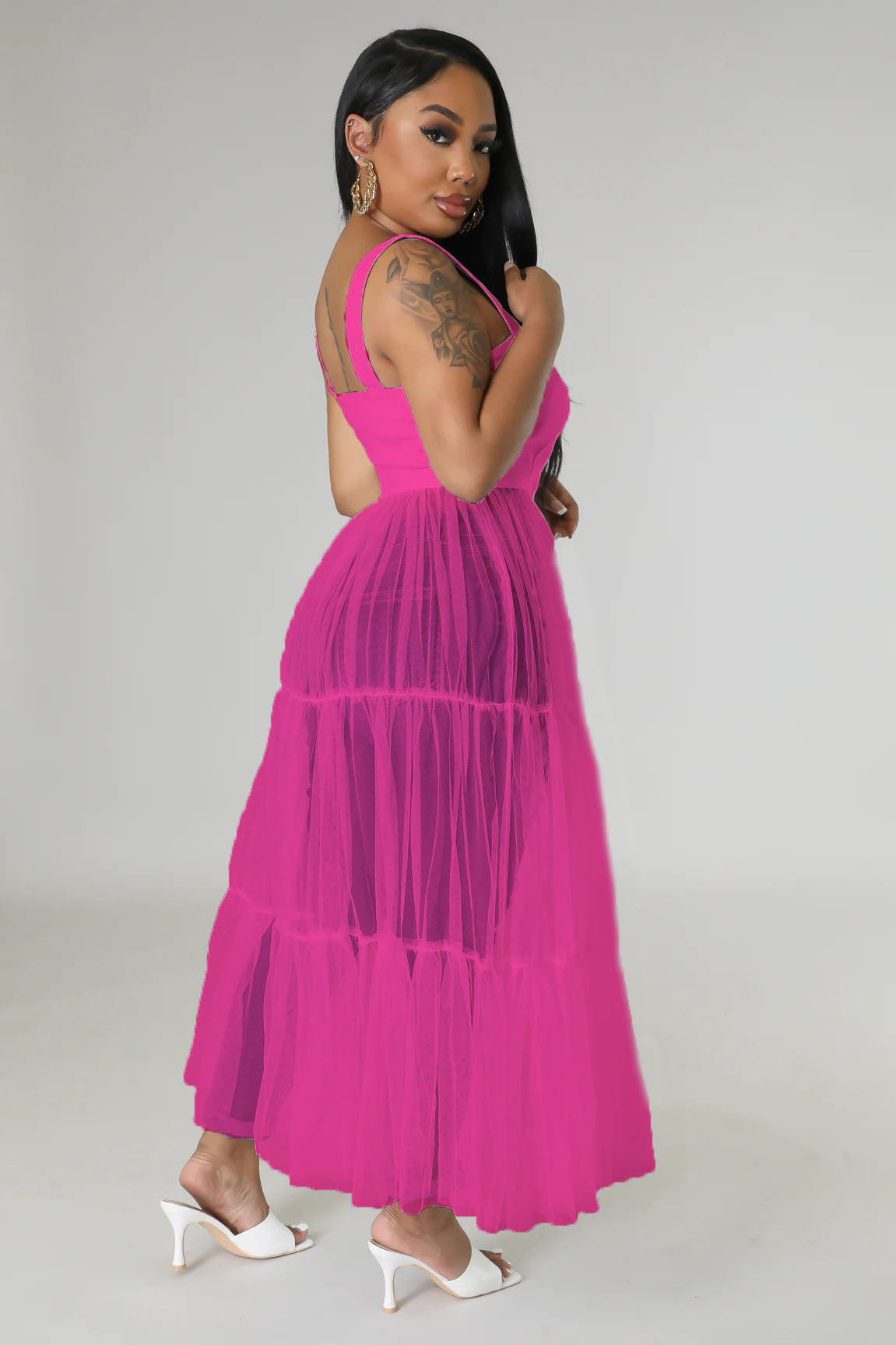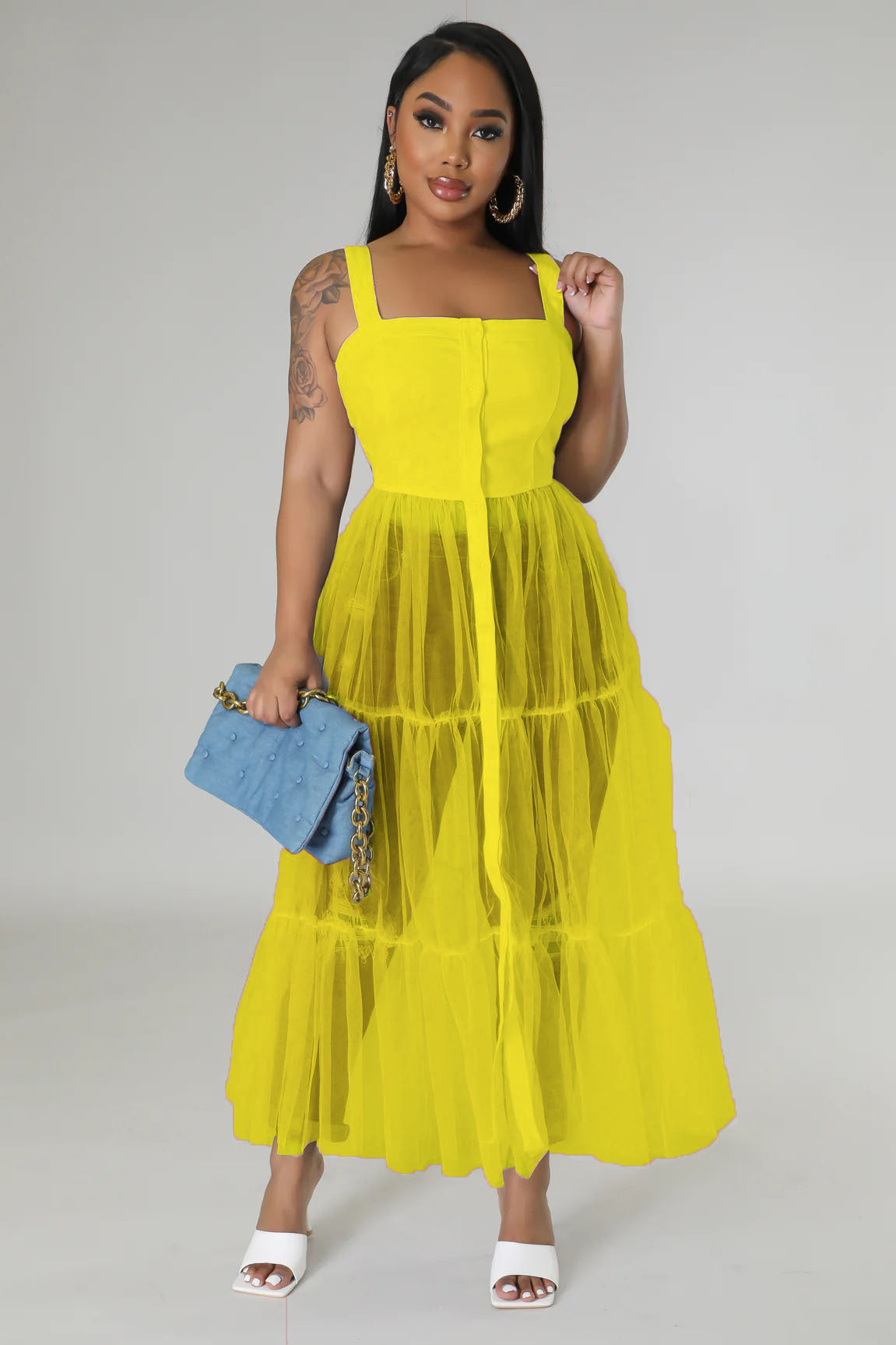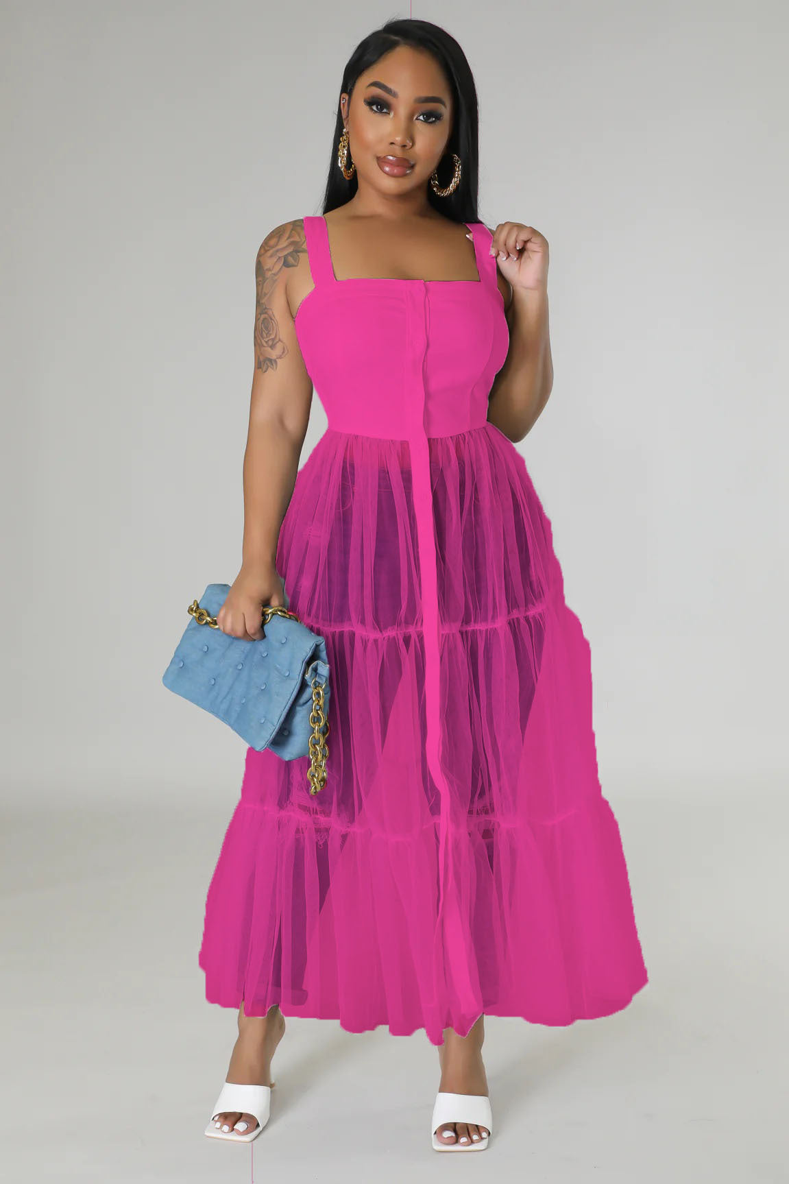 Straps Tulle Stitching Large Swing Dress(CL11500)