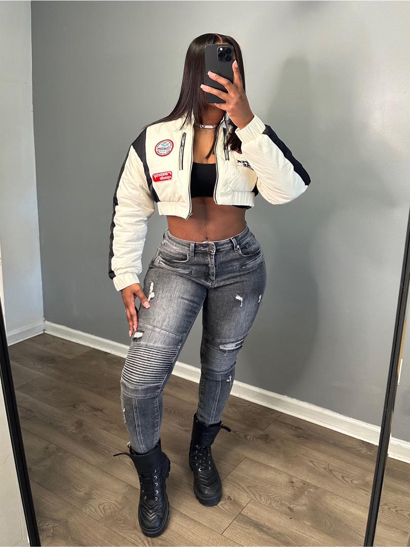 Stretch denim fabric hole motorcycle wind tight feet jeans(CL12091)