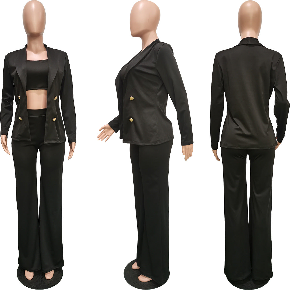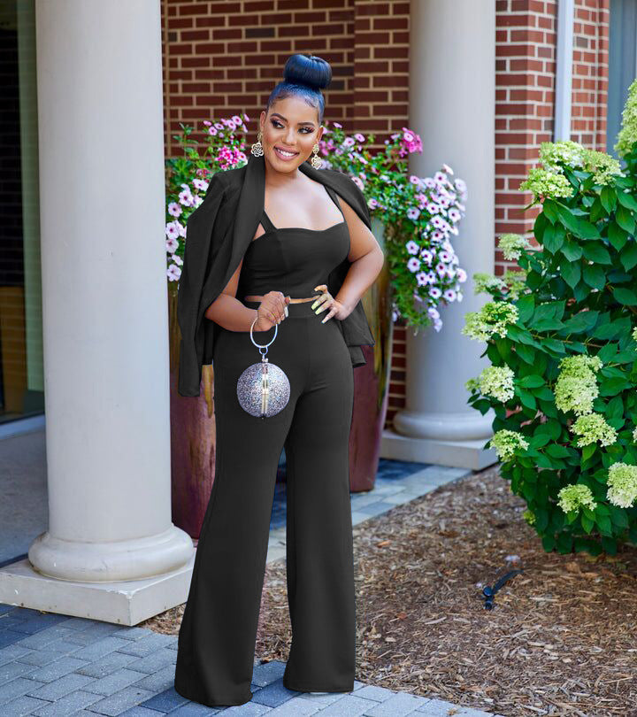 Suit Coat Vest Wide Leg Pants Three Piece Set (CL12019)