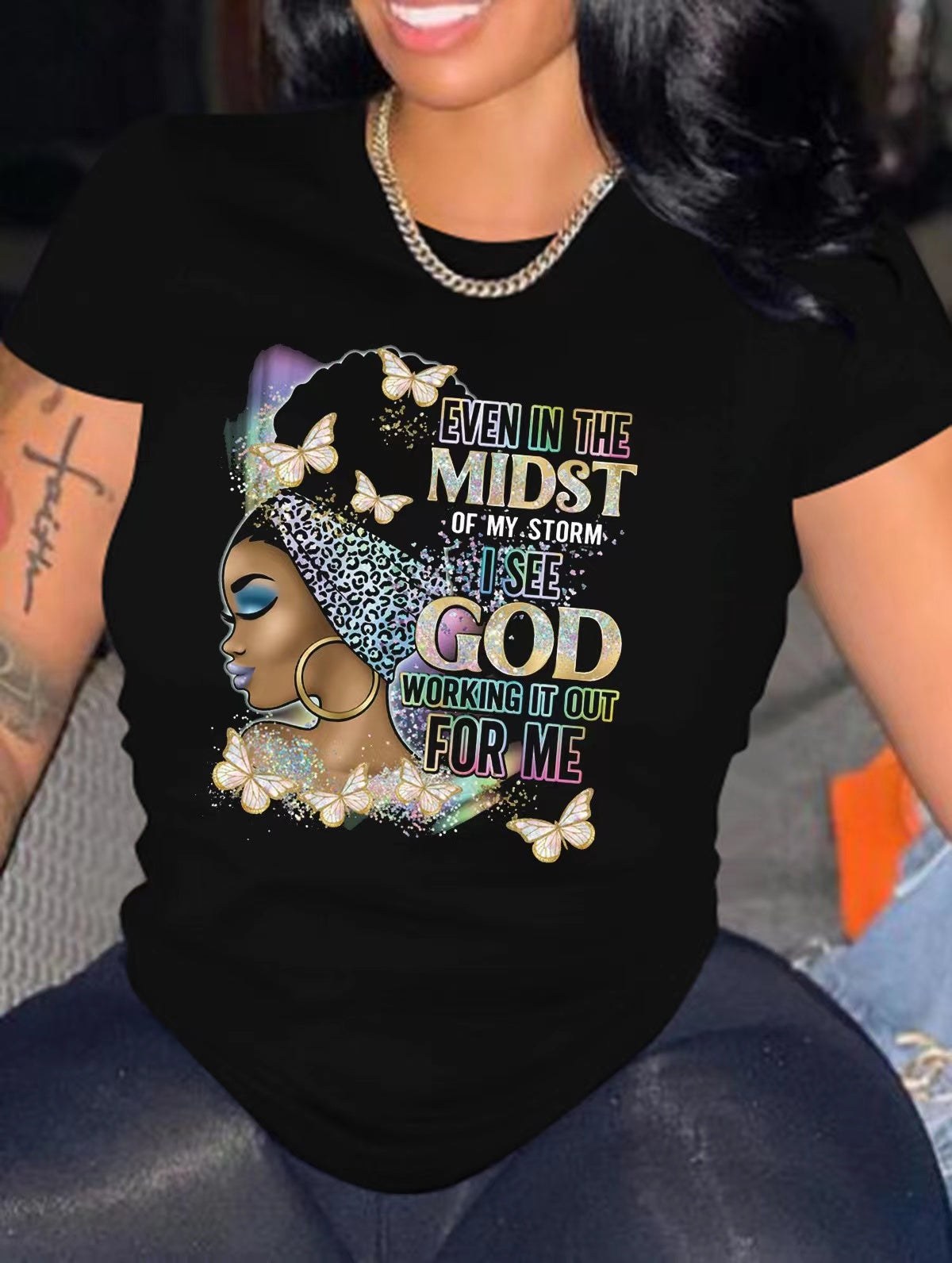 Summer Fashion Printed Short-Sleeved T-shirt Women's Clothing (Cl10515)